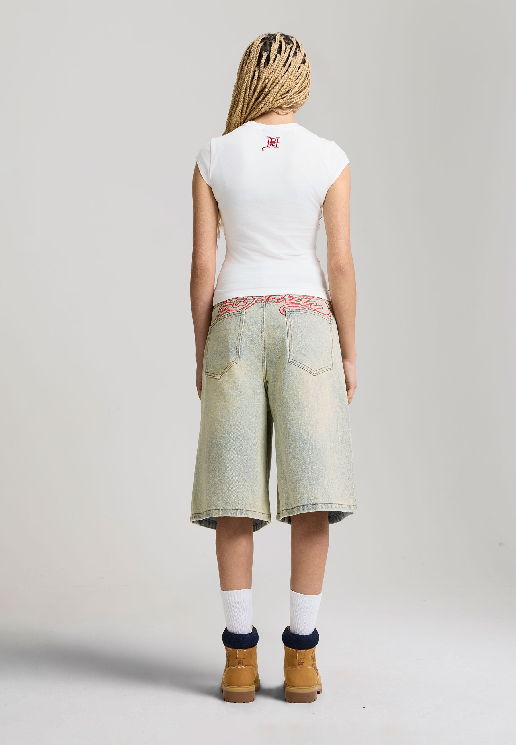 Womens Rising Phoenix Embroidered Relaxed Jorts - Bleach