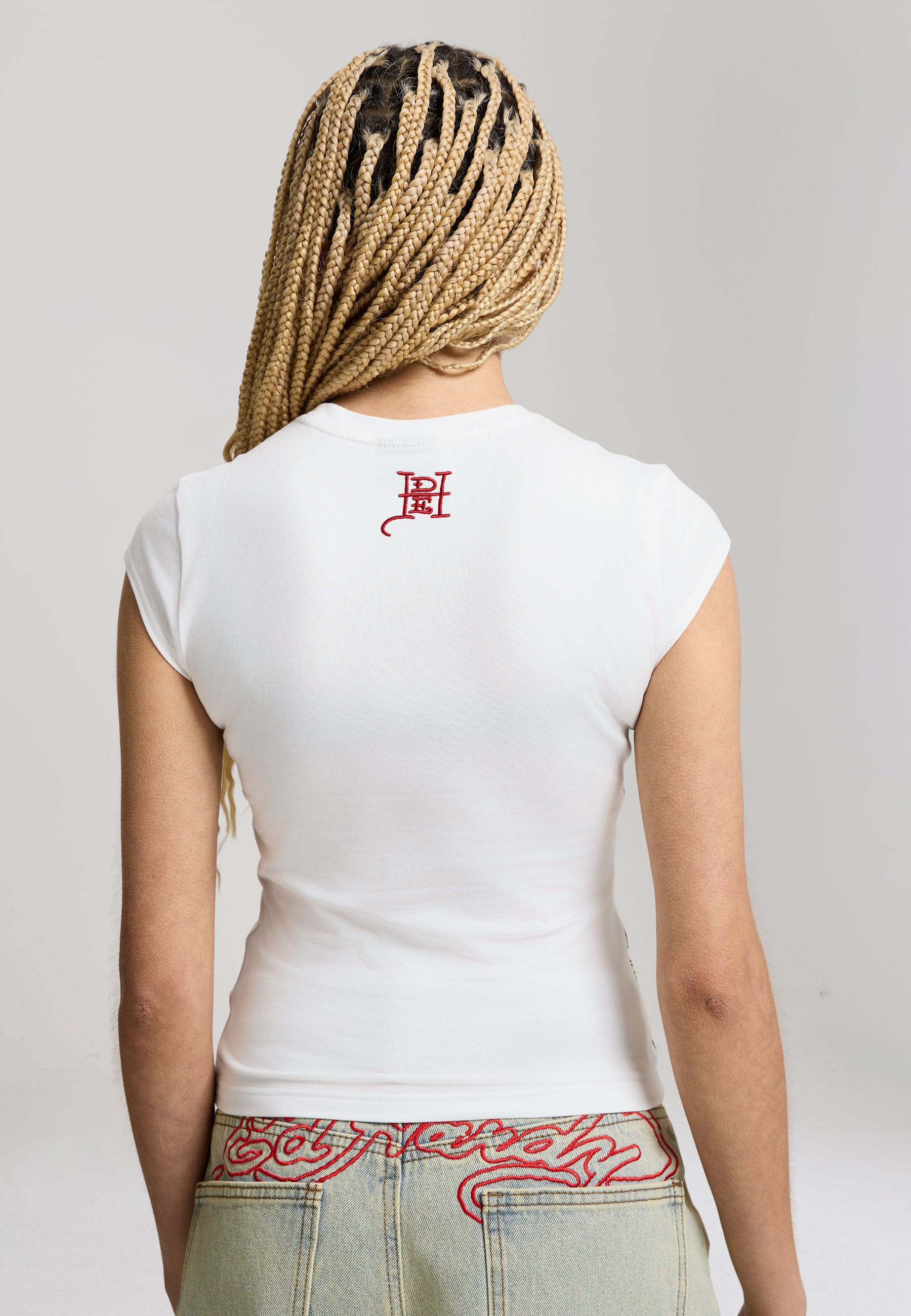 Womens Varsity Dragon Cap Sleeve Tee - Ecru