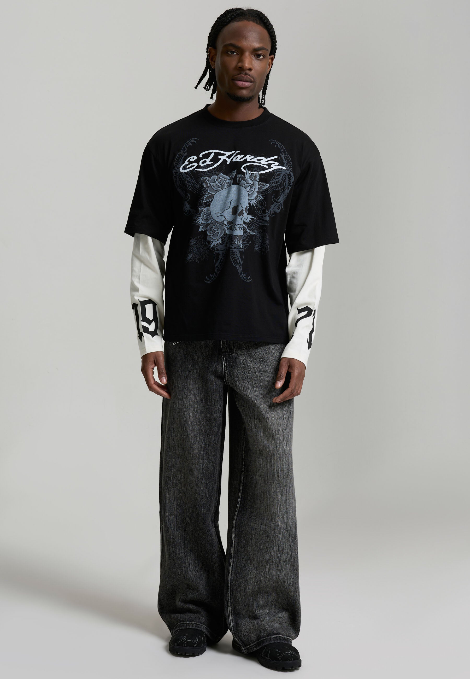 Mens 1971 Skull Double Layer Relaxed T-Shirt - Black