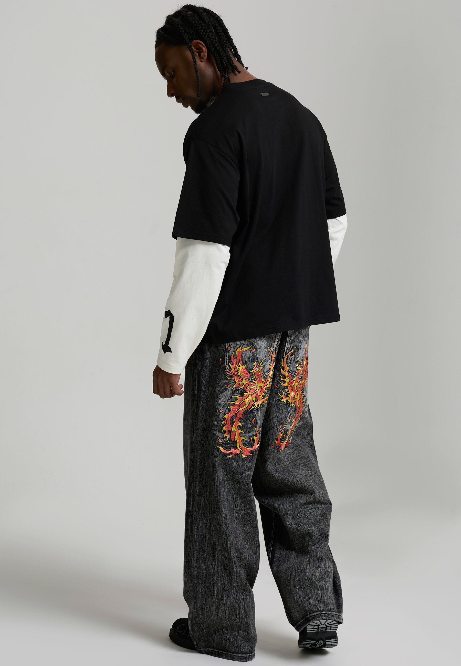 Mens Embroidered Angel Xxtra Fit Jeans - Distressed Black Wash