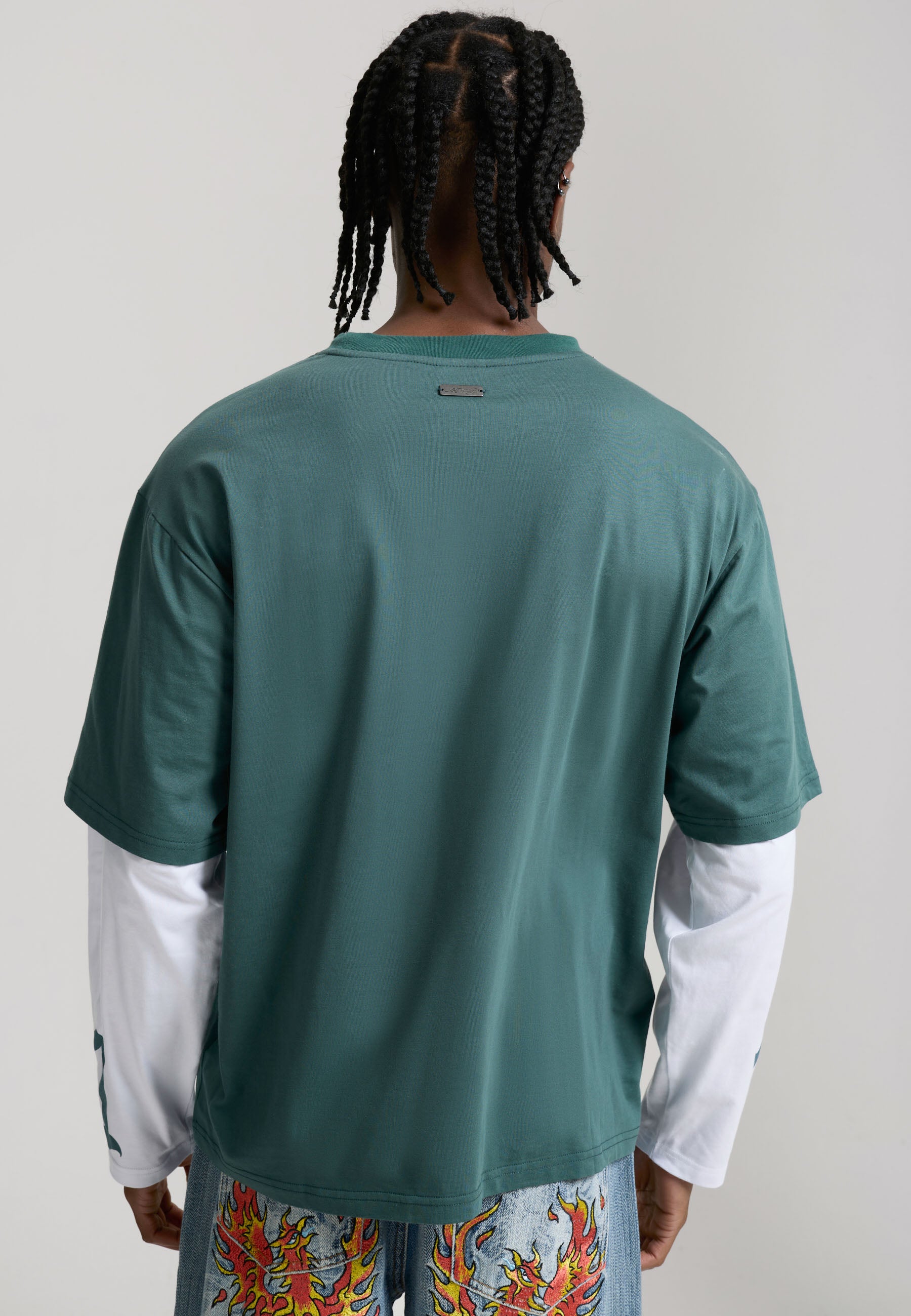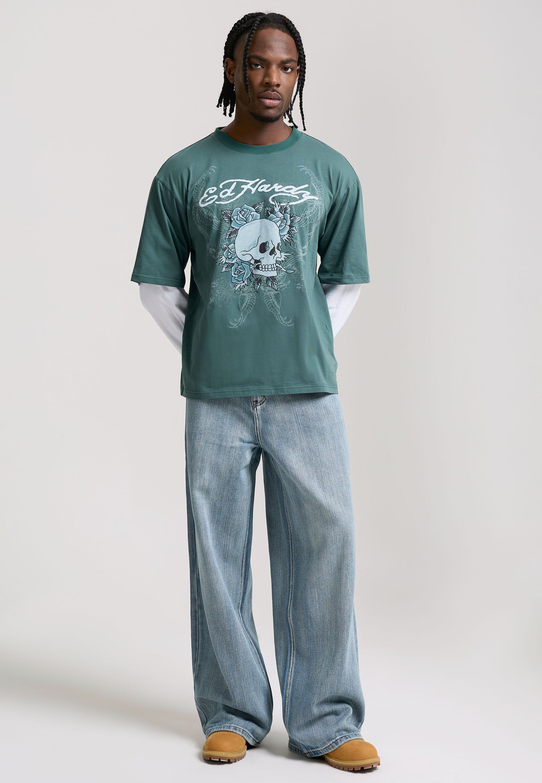 Mens 1971 Skull Double Layer Relaxed T-Shirt - Green