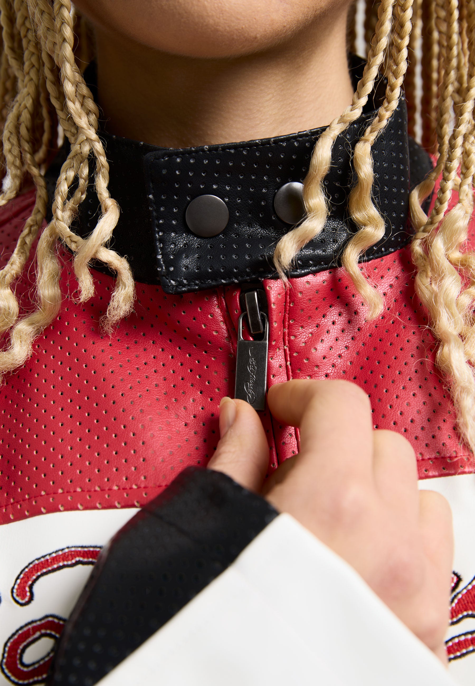Womens Art For Life Regular Perforated Moto Jacket - Red / Black