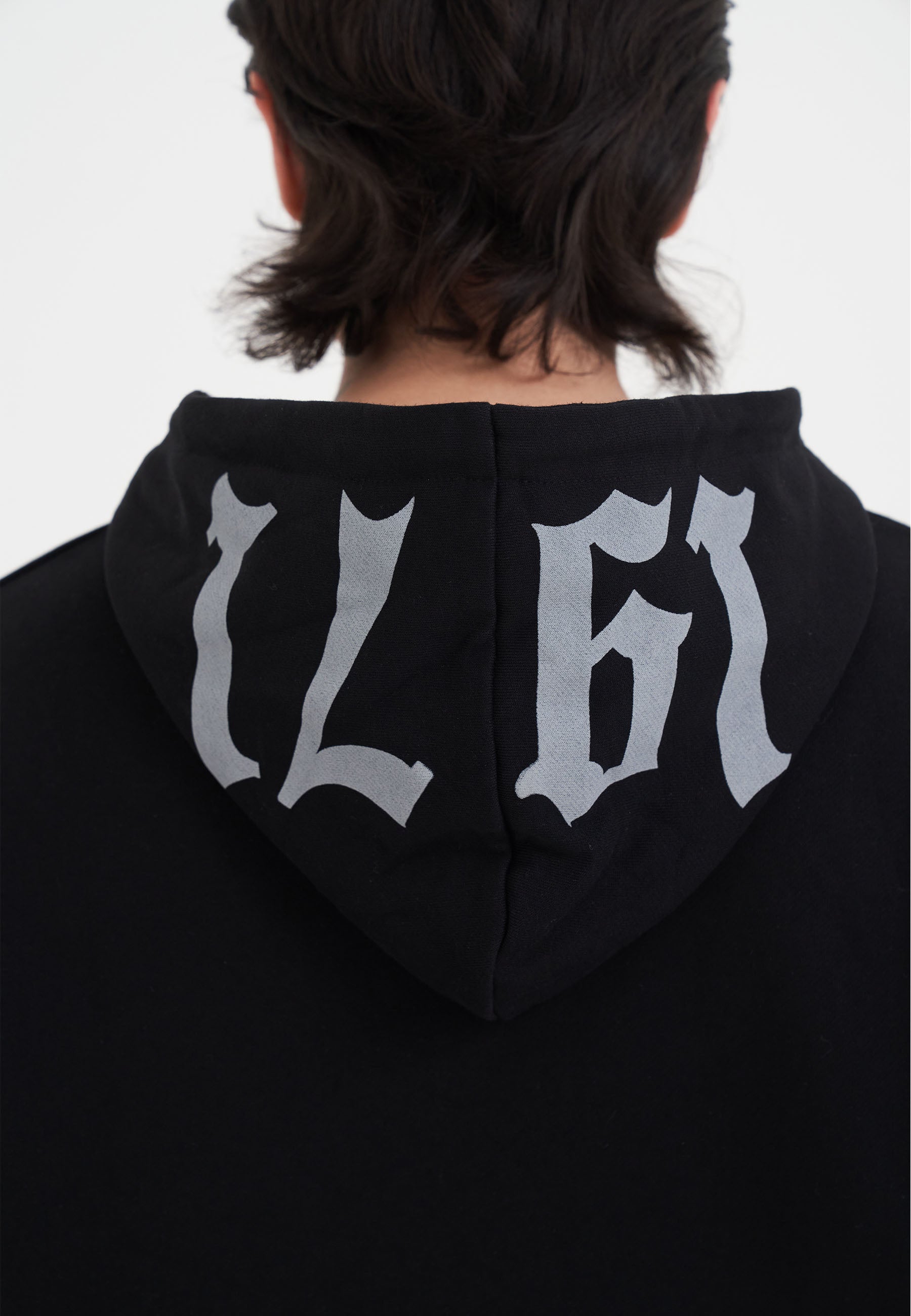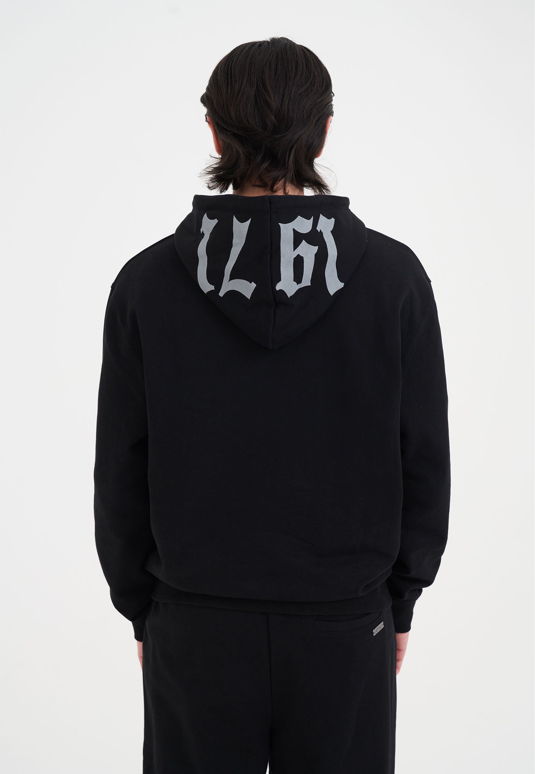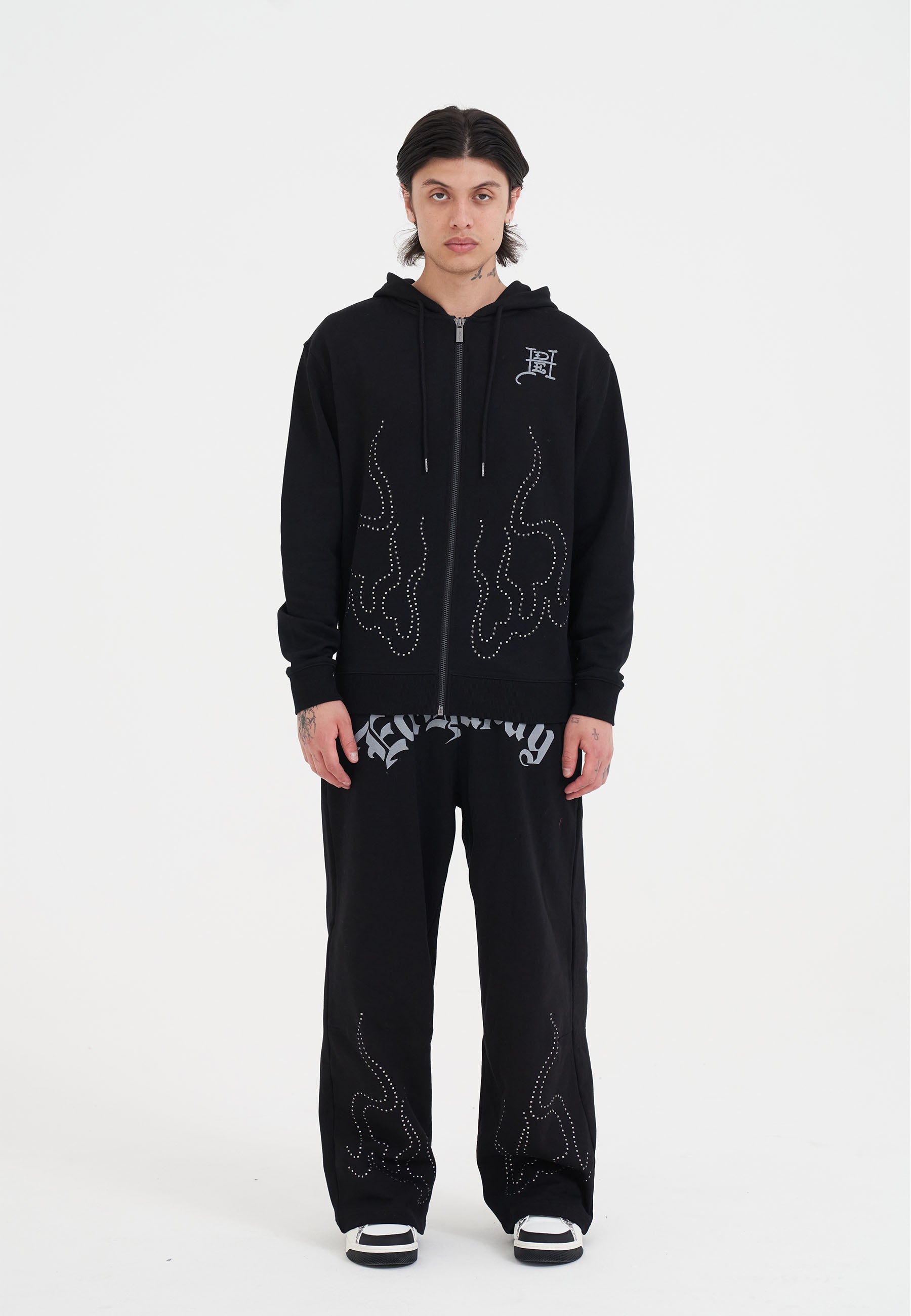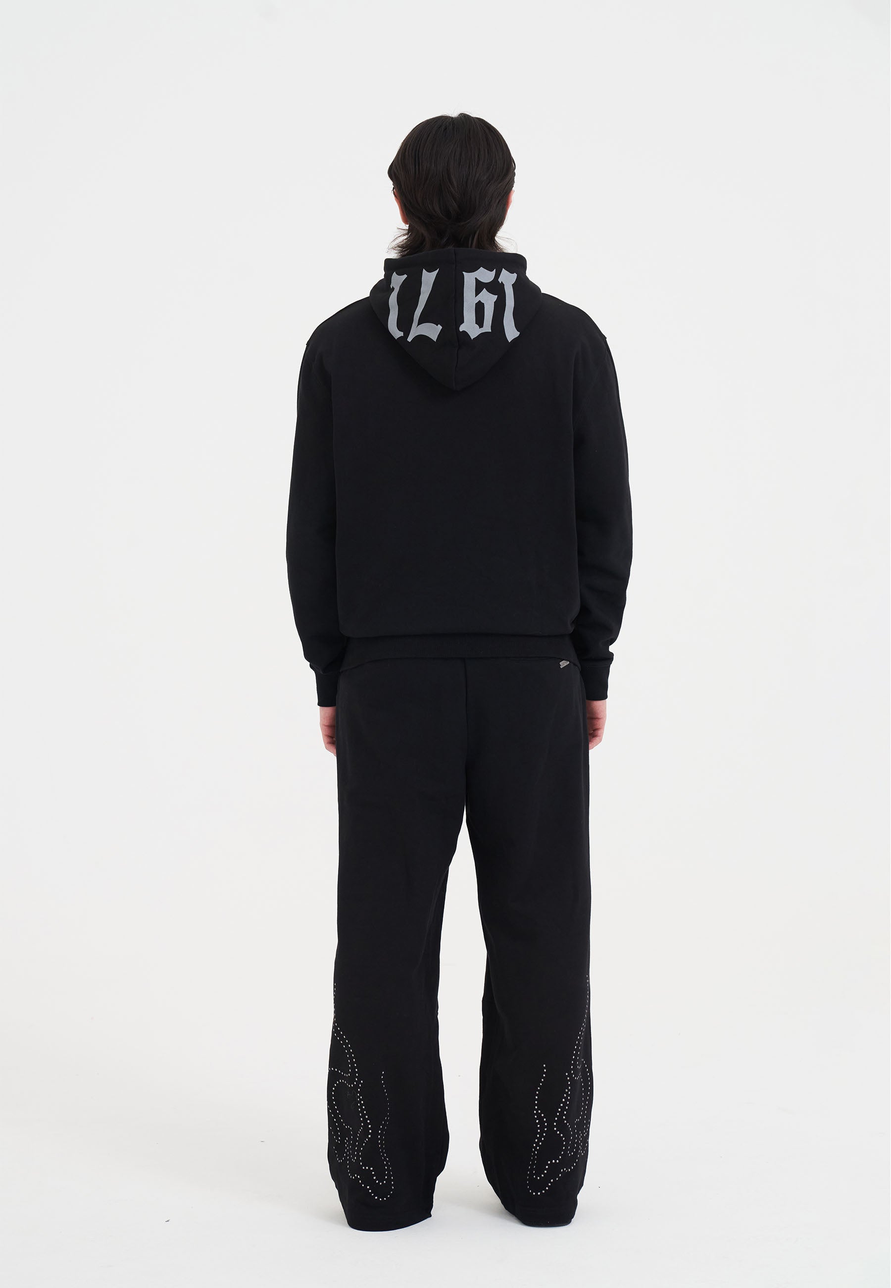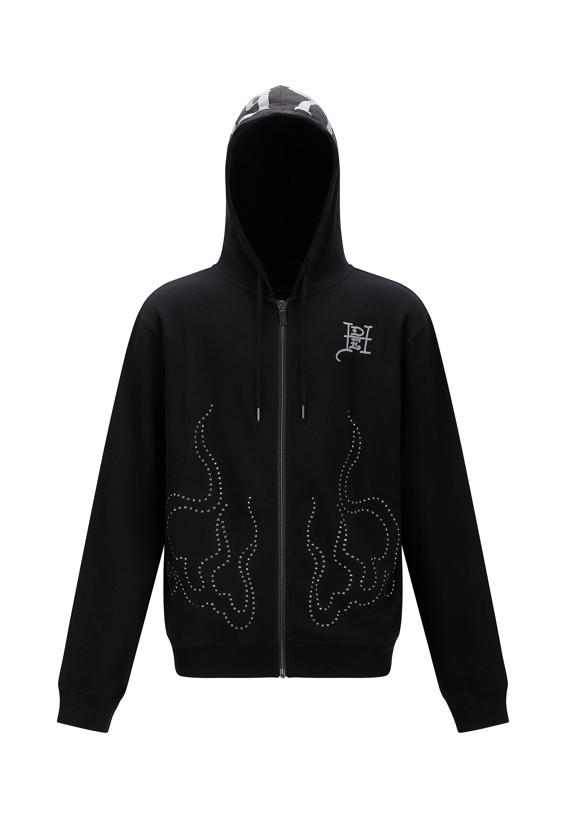 Mens Metal Stud Detail Zip Thru Hoodie - Black