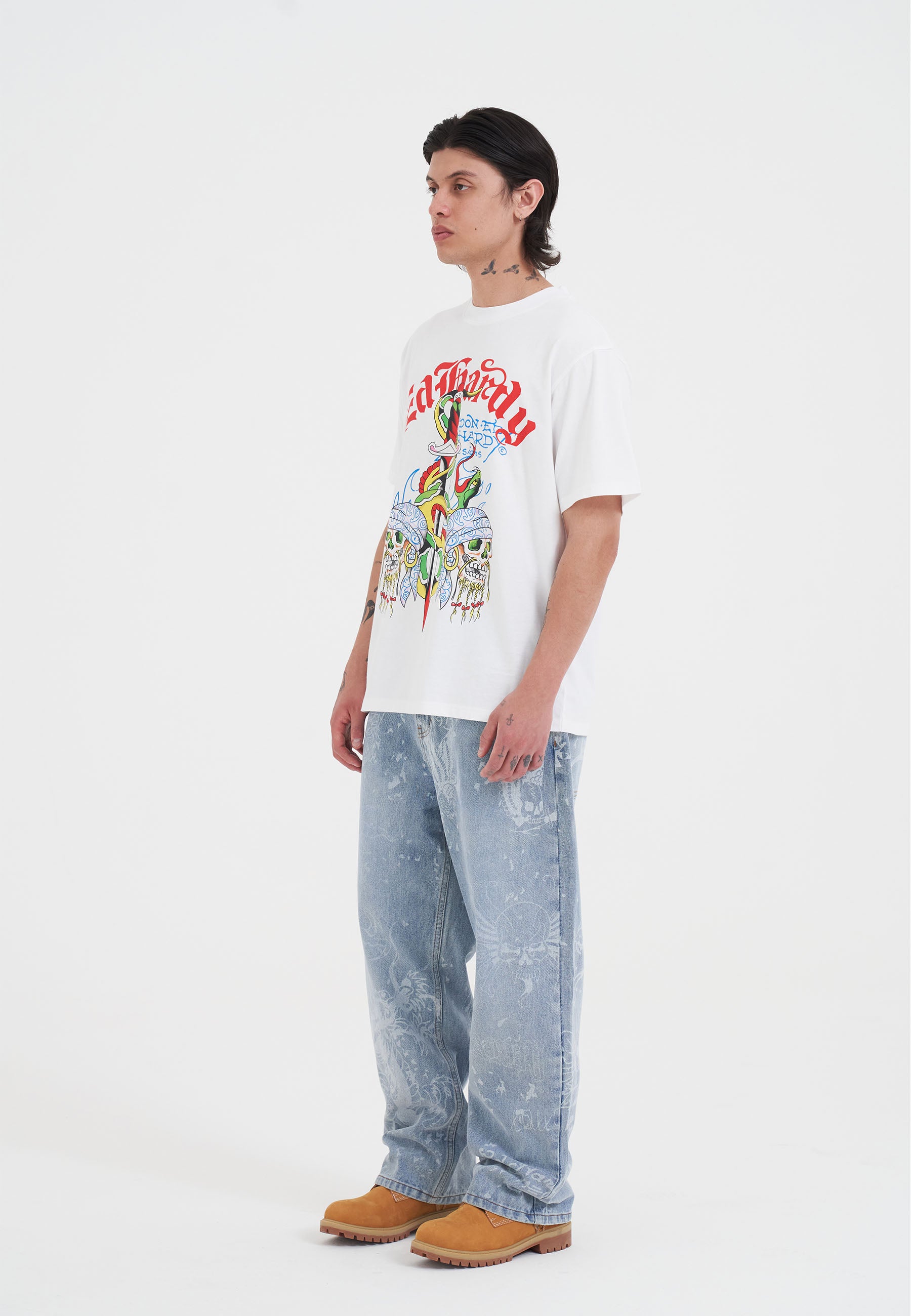 Womens Snake Skull Backprint T-Shirt - Ecru