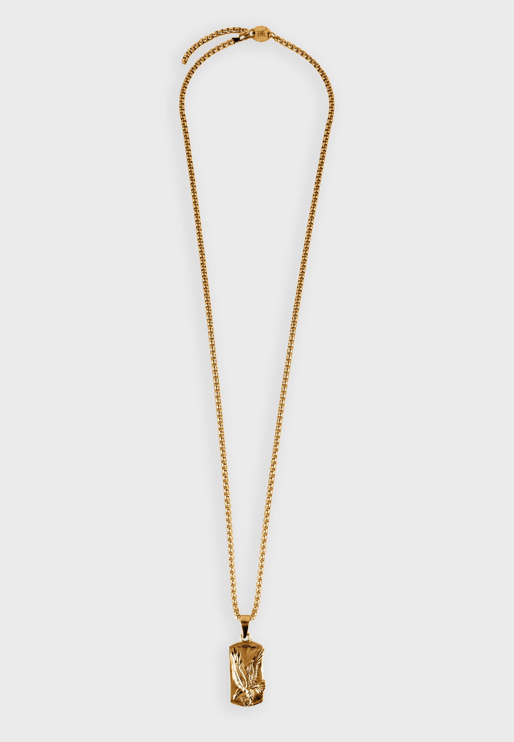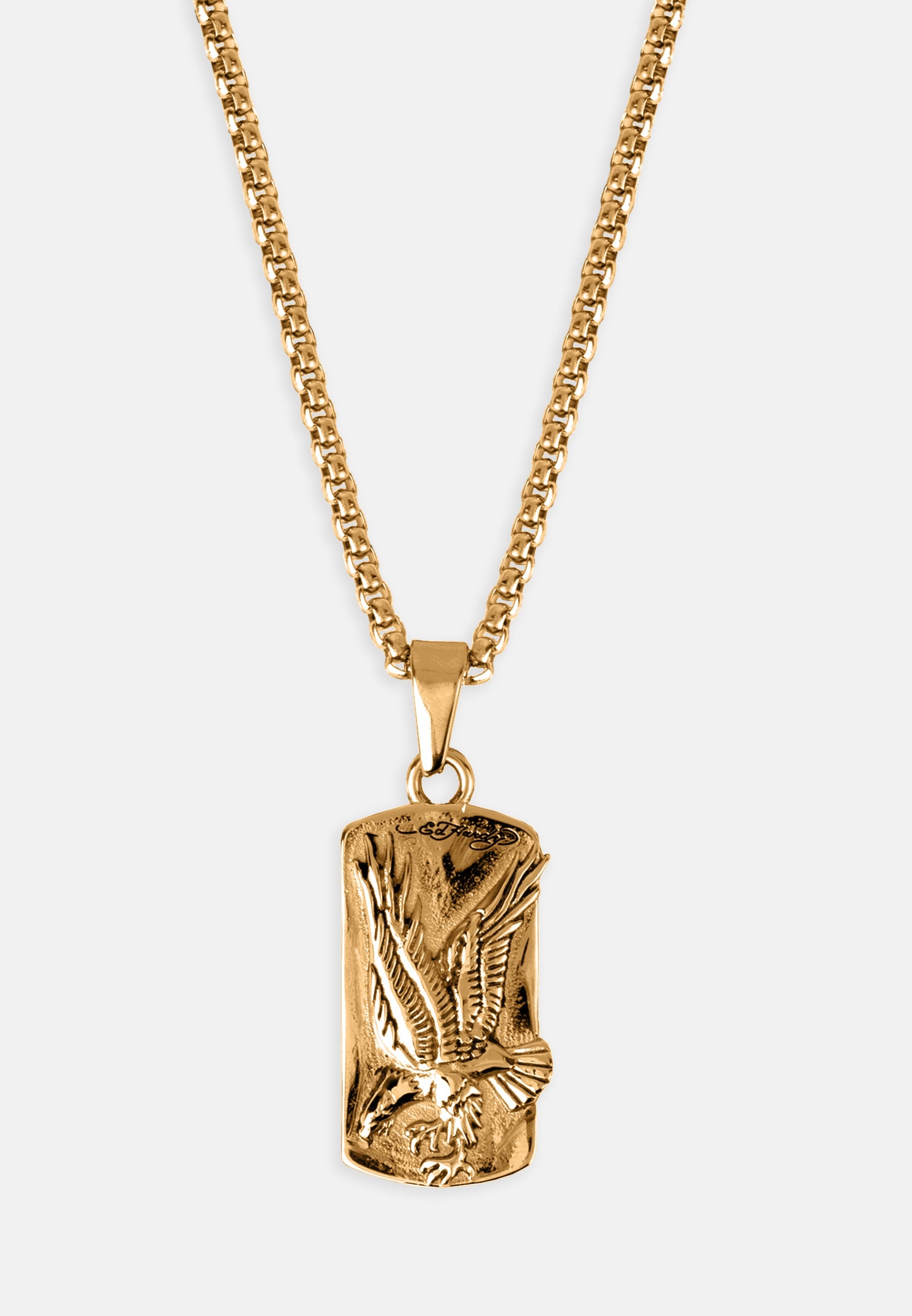 Stainless Steel Eagle Dog Tag Necklace - Gold