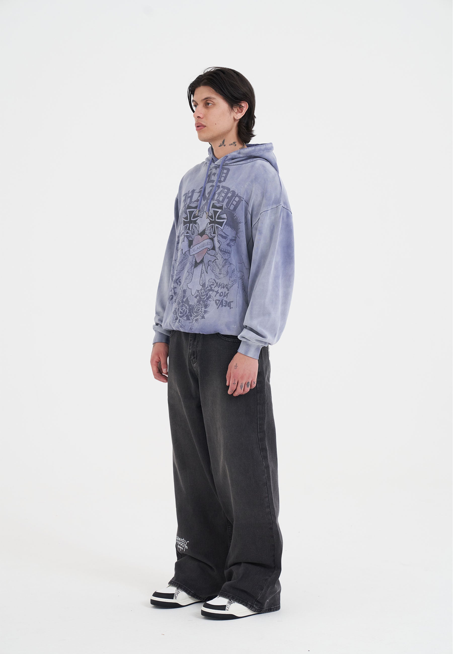 Mens Ed Hardy Gothic Cross Hoodie - Indigo