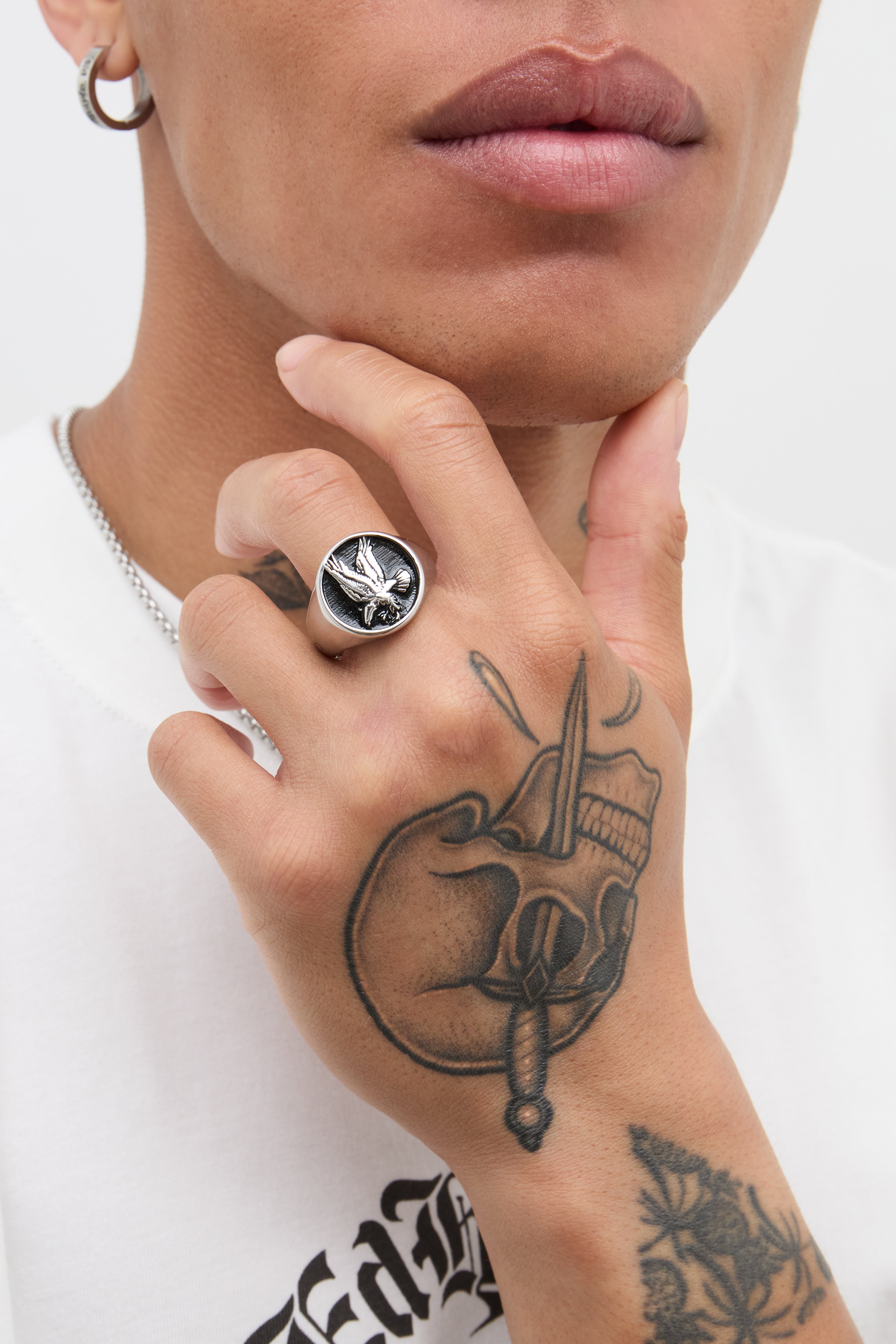 Stainless Steel Eagle Signet Ring - Silver