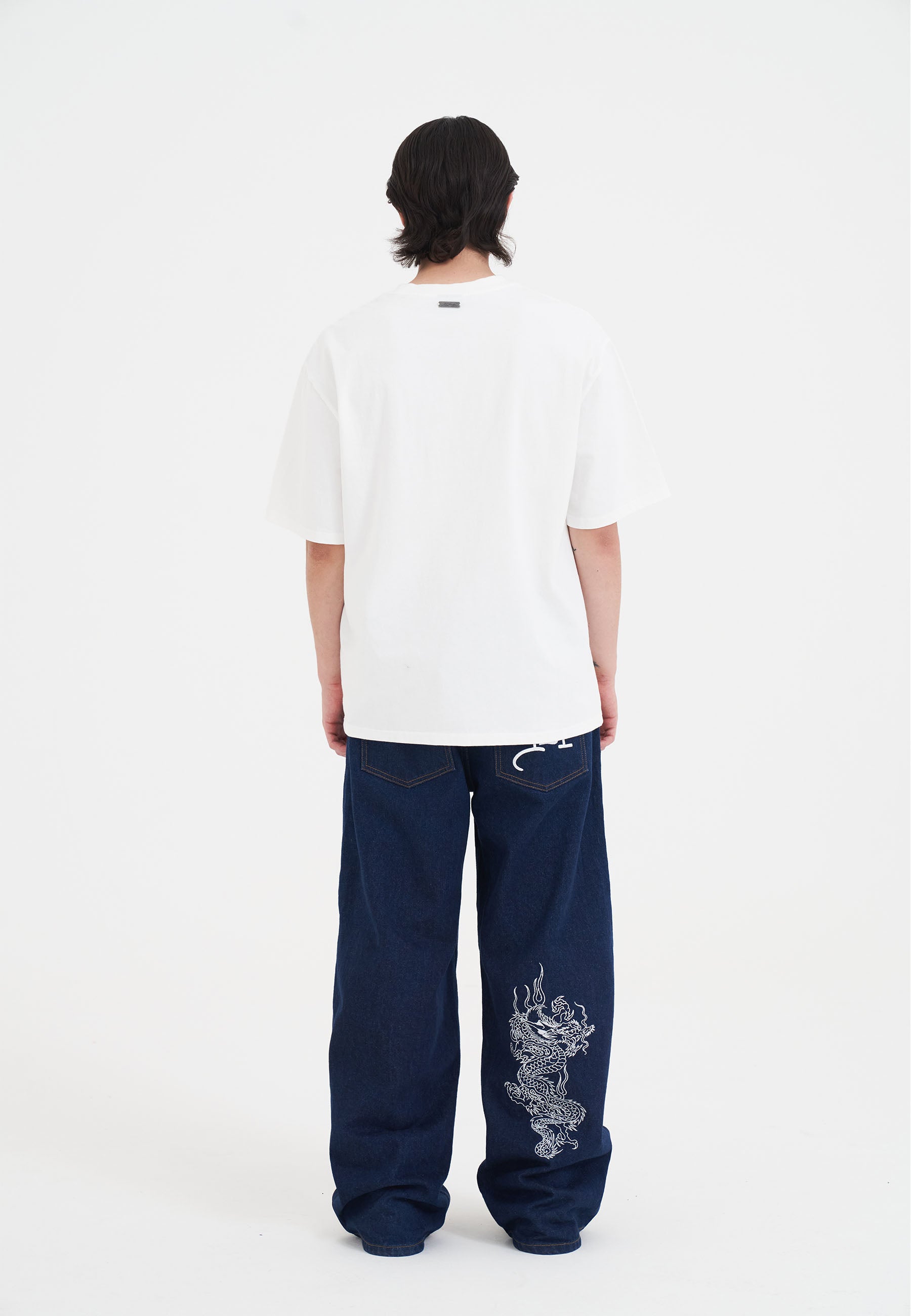 Mens Applique Cross Stripe Jeans - Mid Blue
