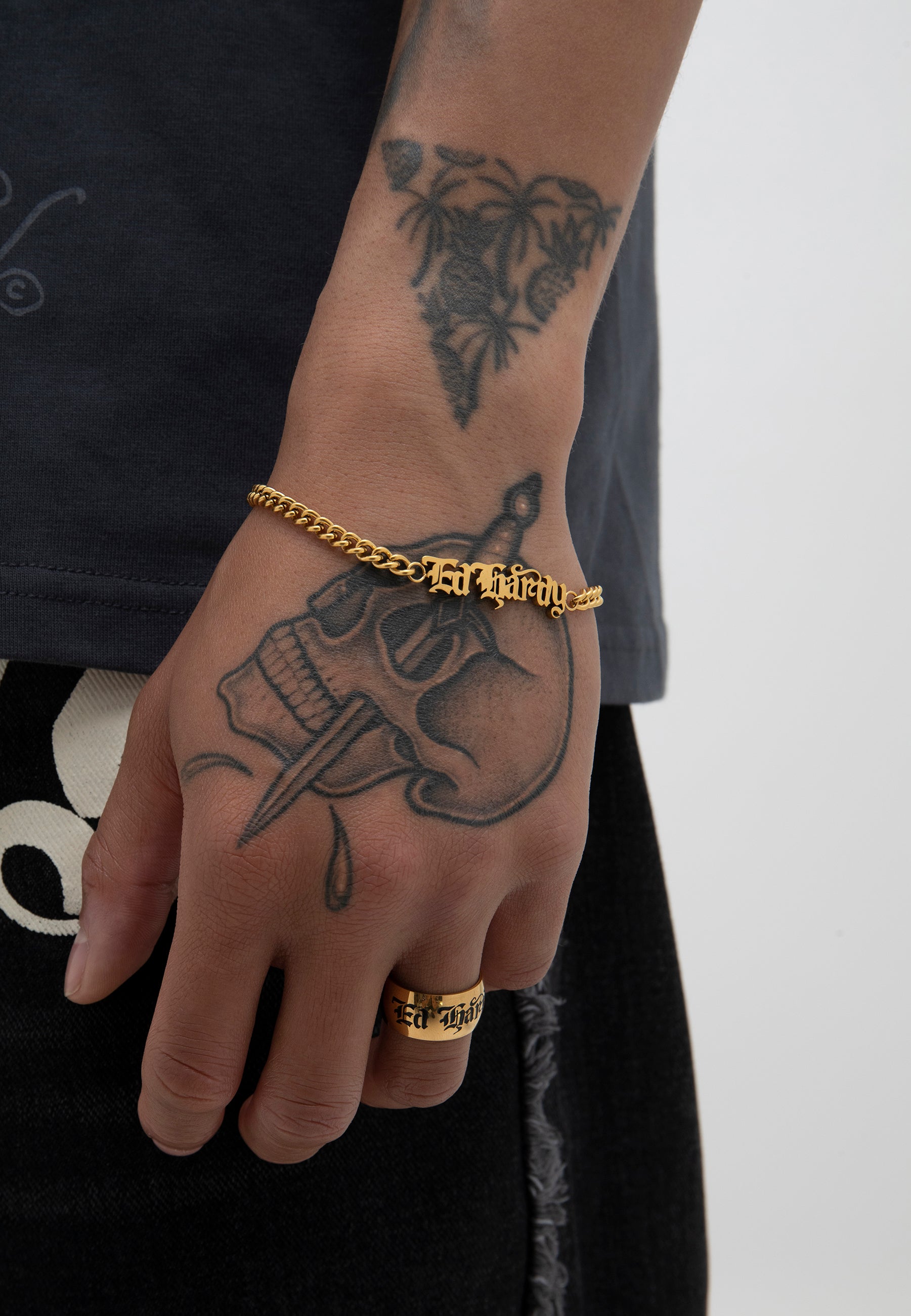 Ed Hardy Multirow Flaming Charms Bracelet - Gold