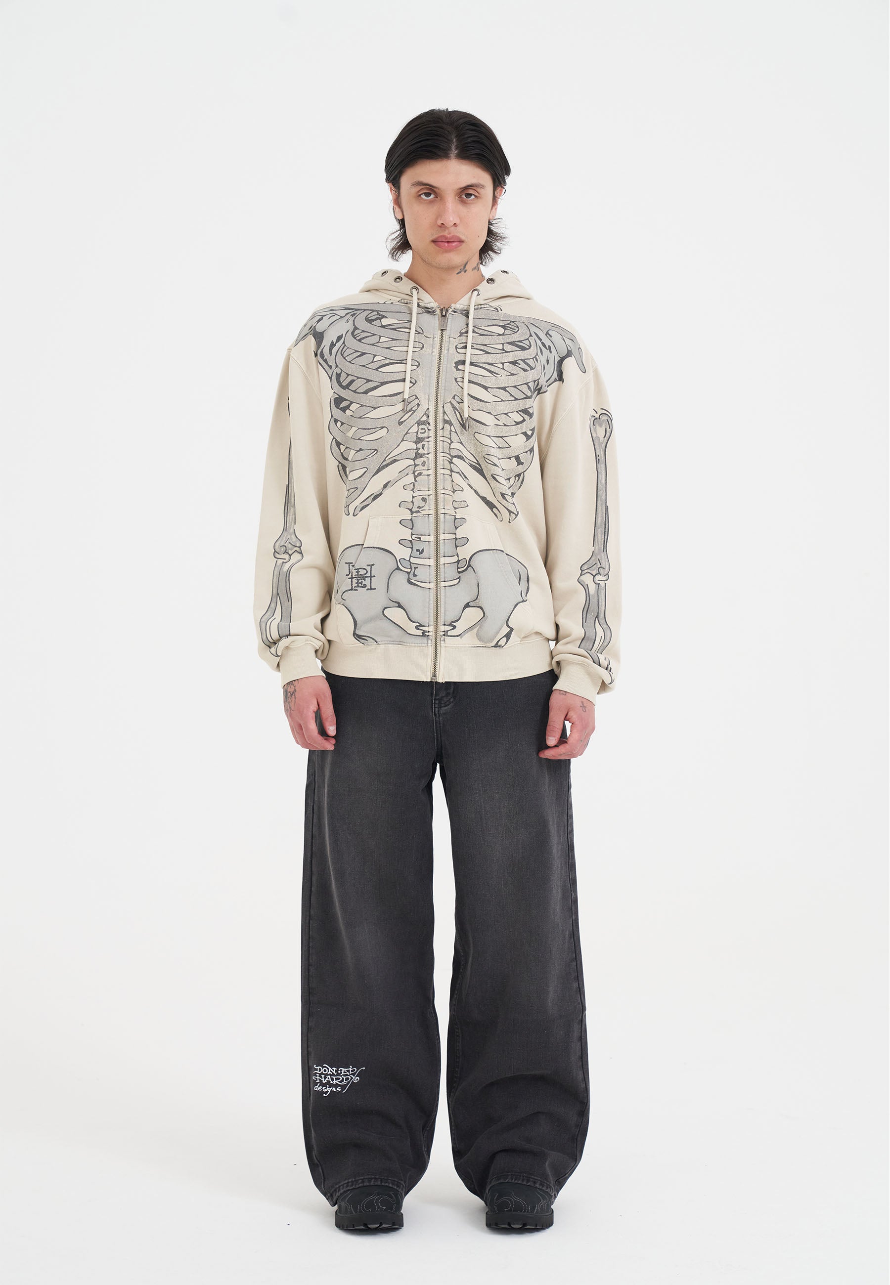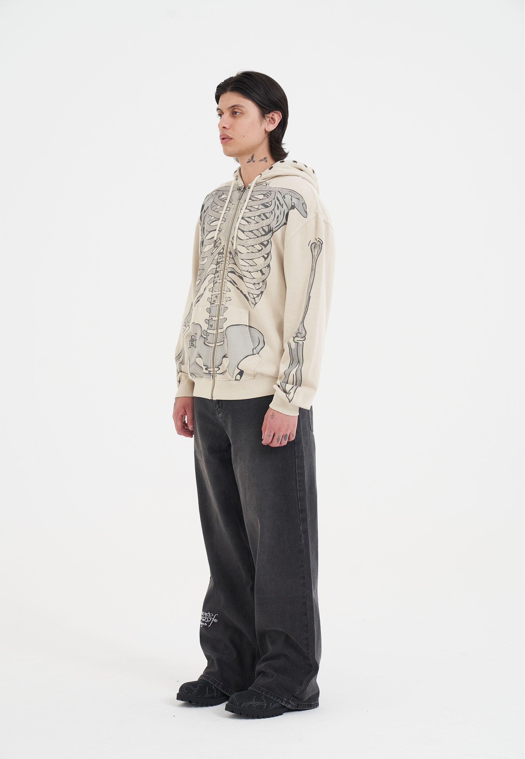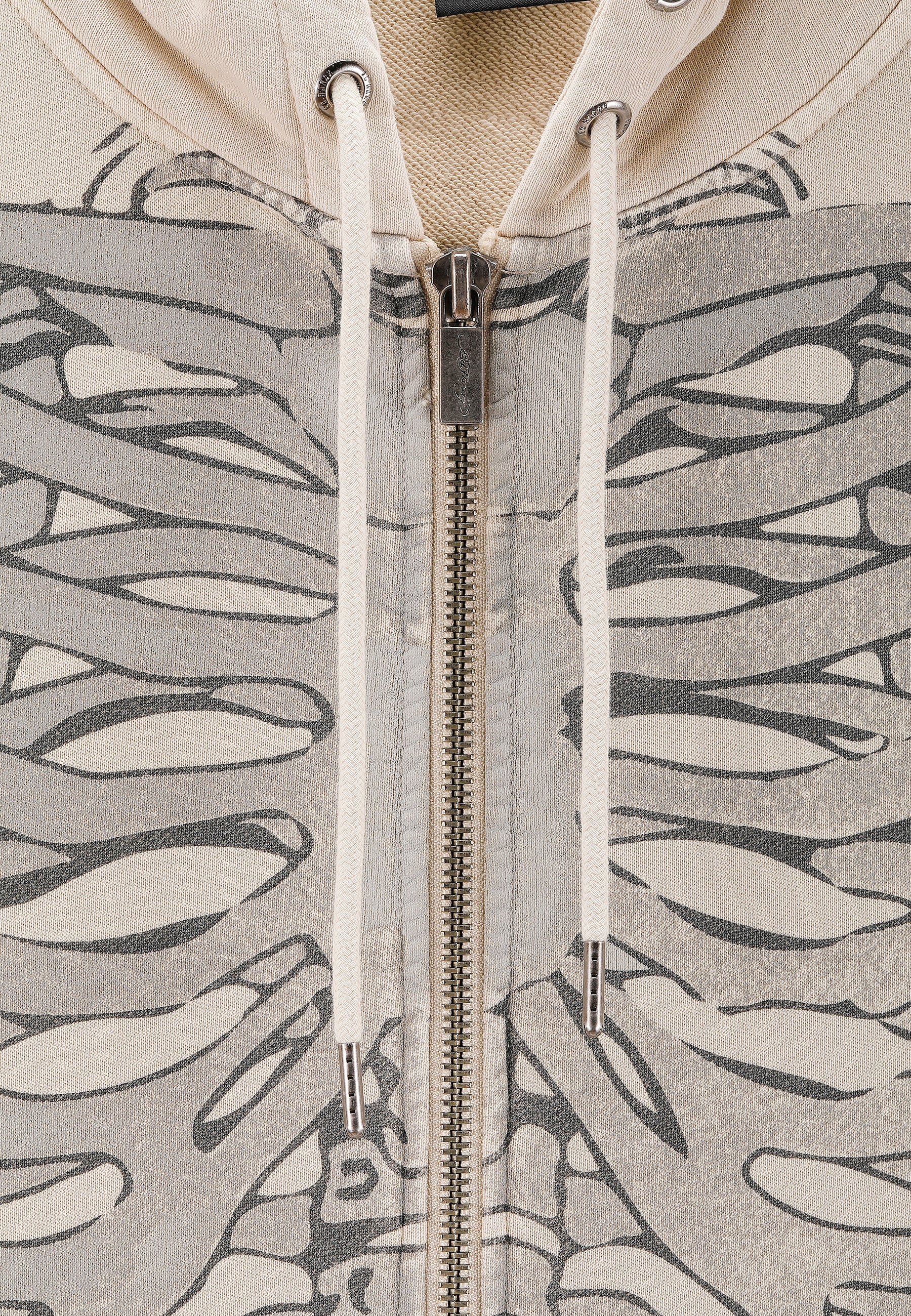 Mens Skeleton In Acid Zip Thru Hoodie - Ecru