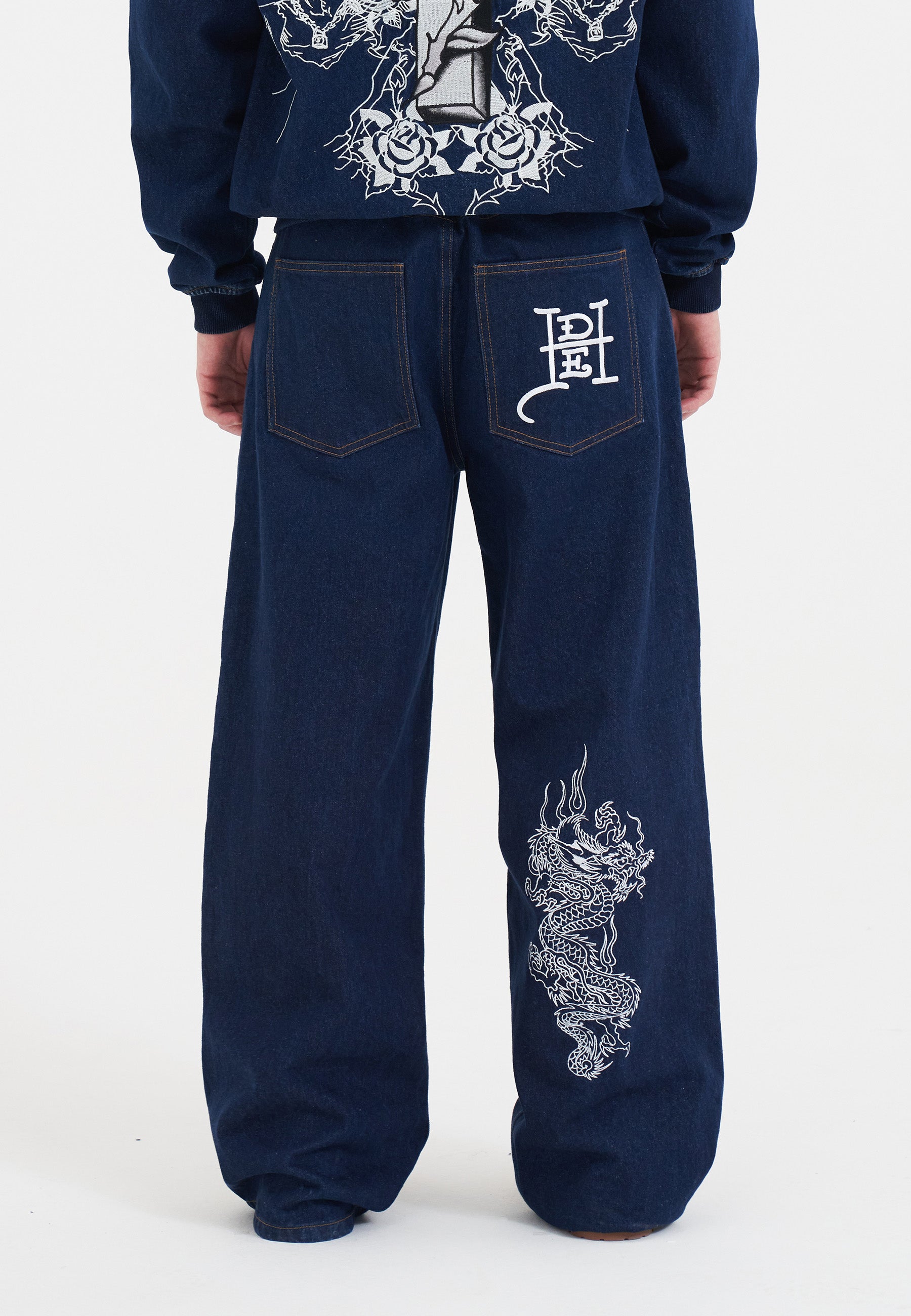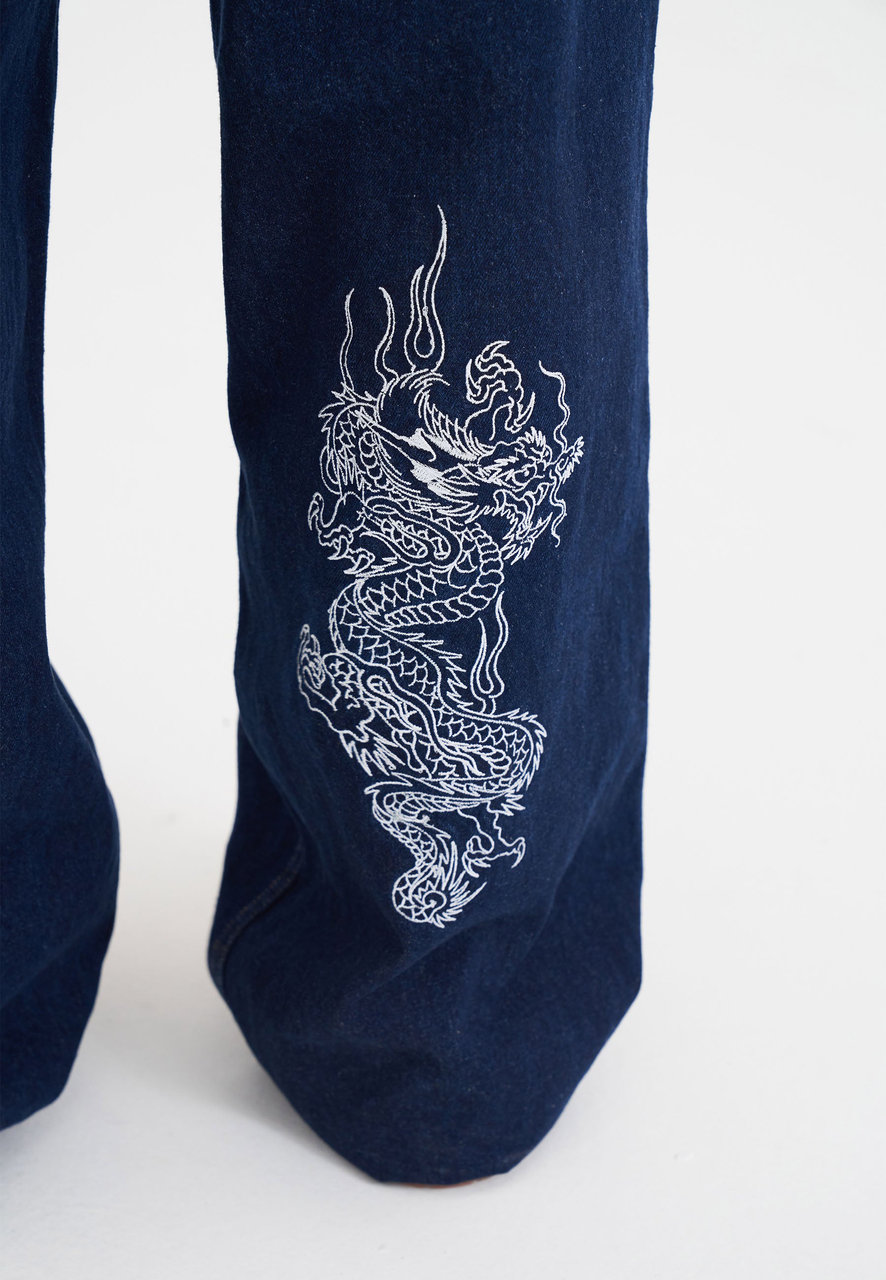 Mens Dragon Embroidered Jeans - Indigo