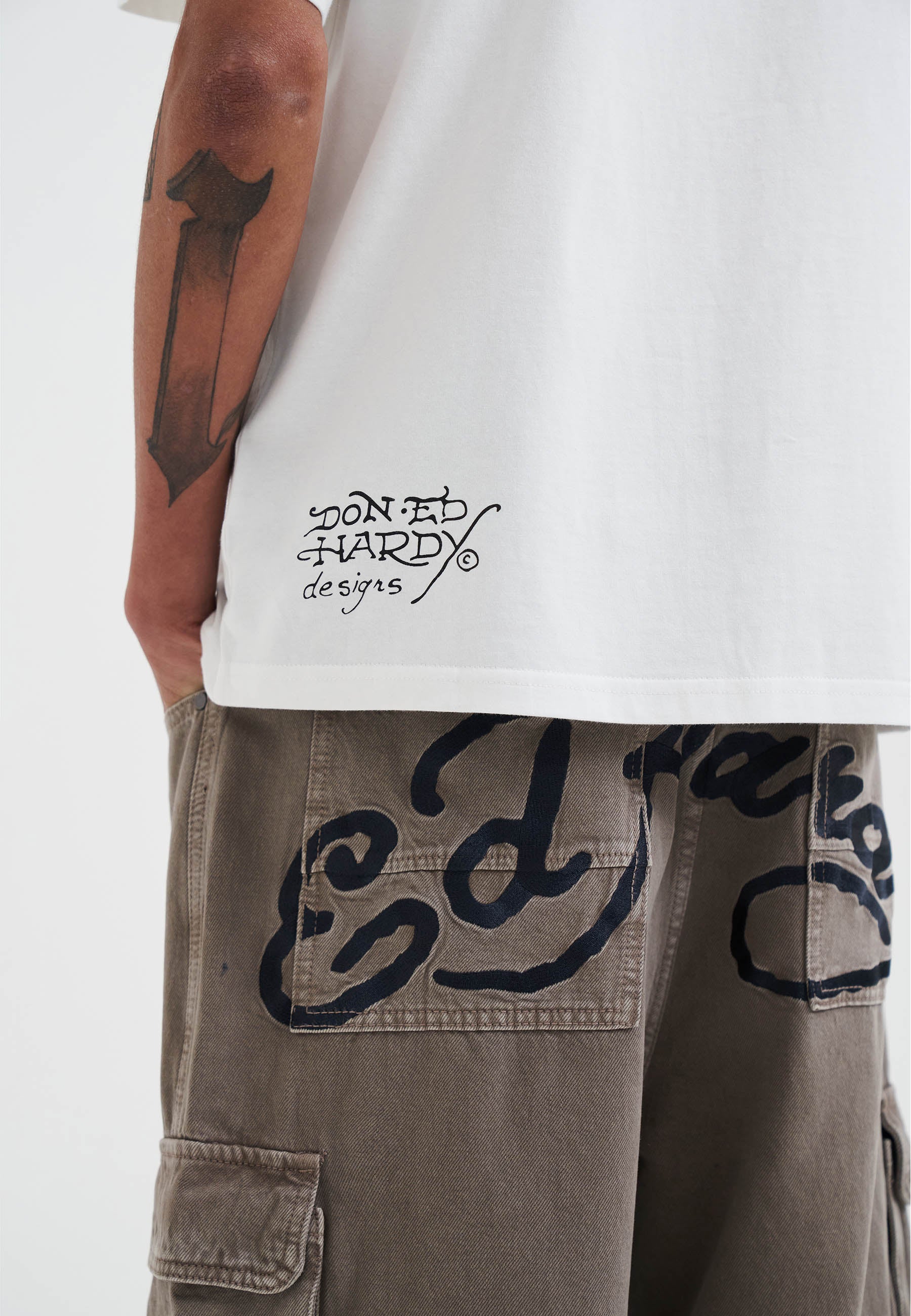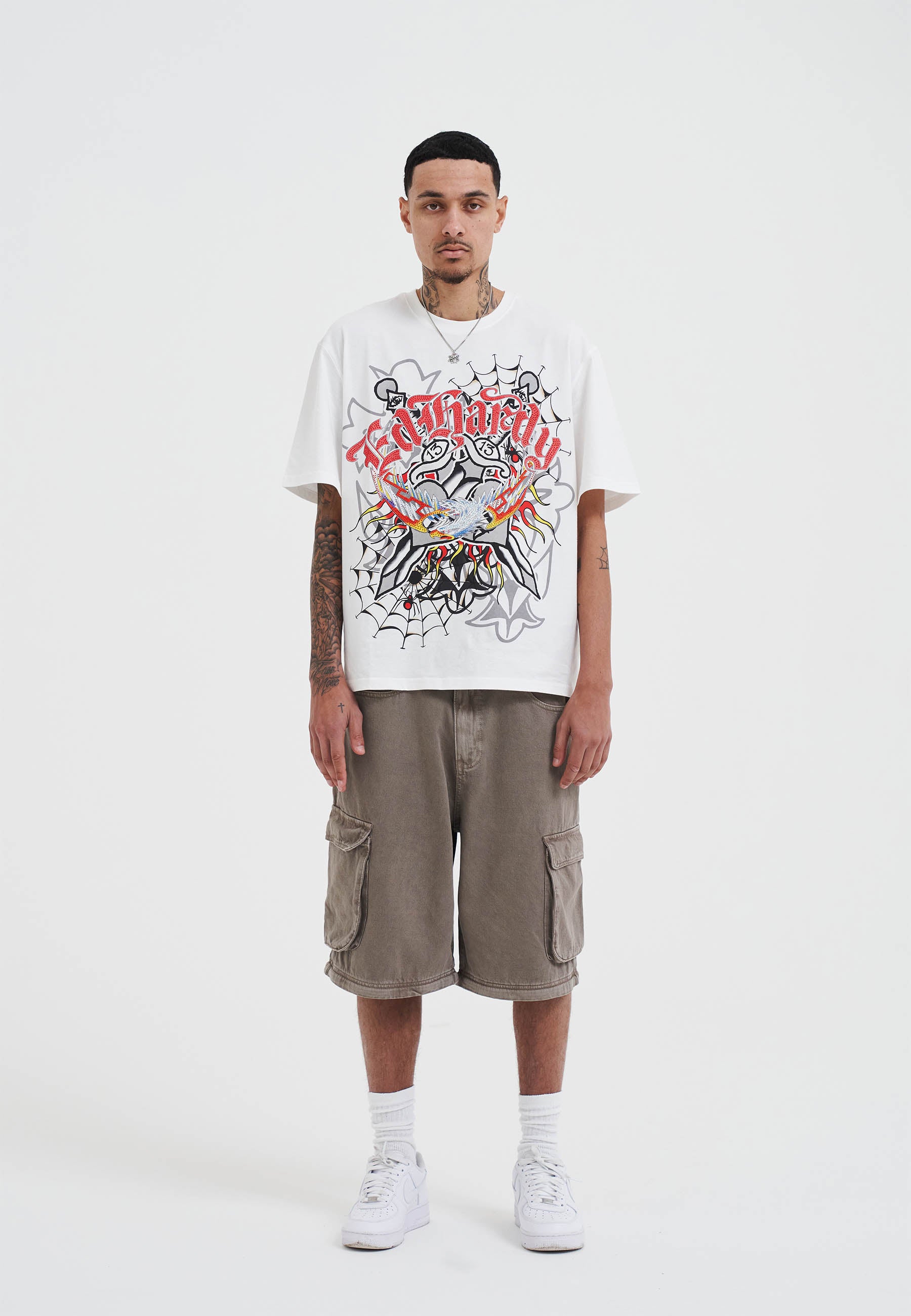 Mens Battle-Dragon Diamante Denim Jorts Shorts - Bleach