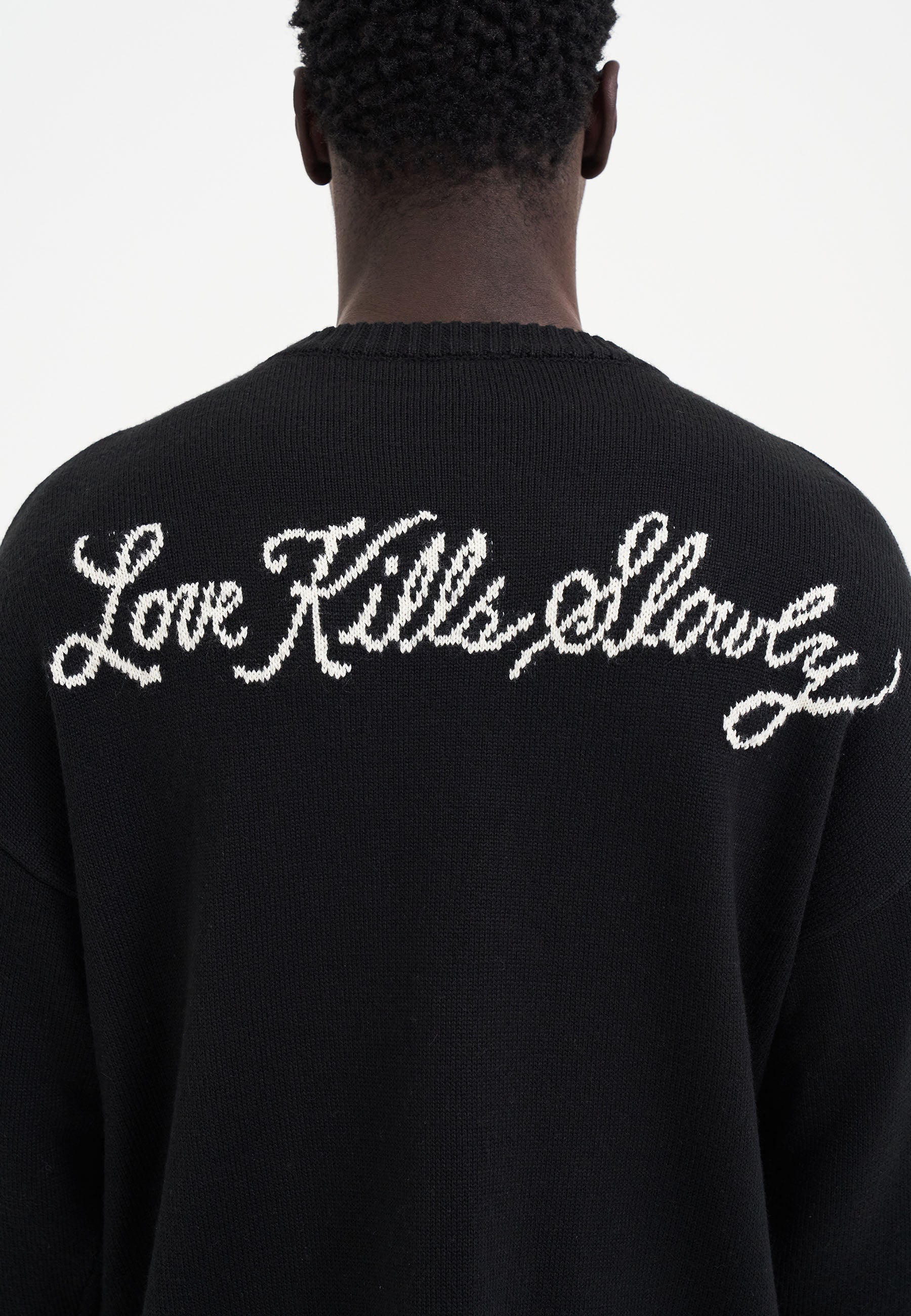 Mens Knitted Love Kills Knitted Zip Thru Hoodie - Black