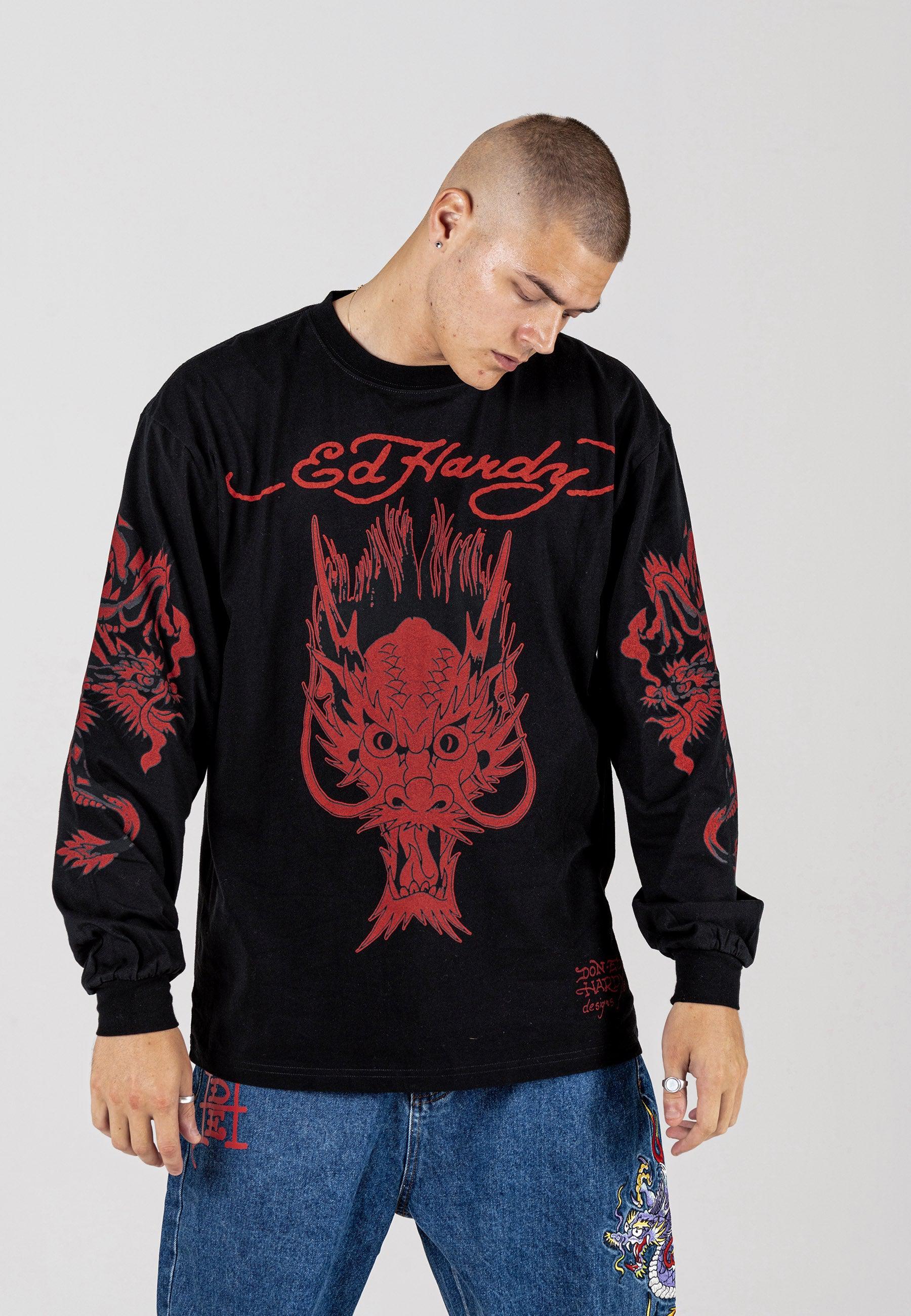 Mens Red-Dragon Long Sleeve T-Shirt - Black