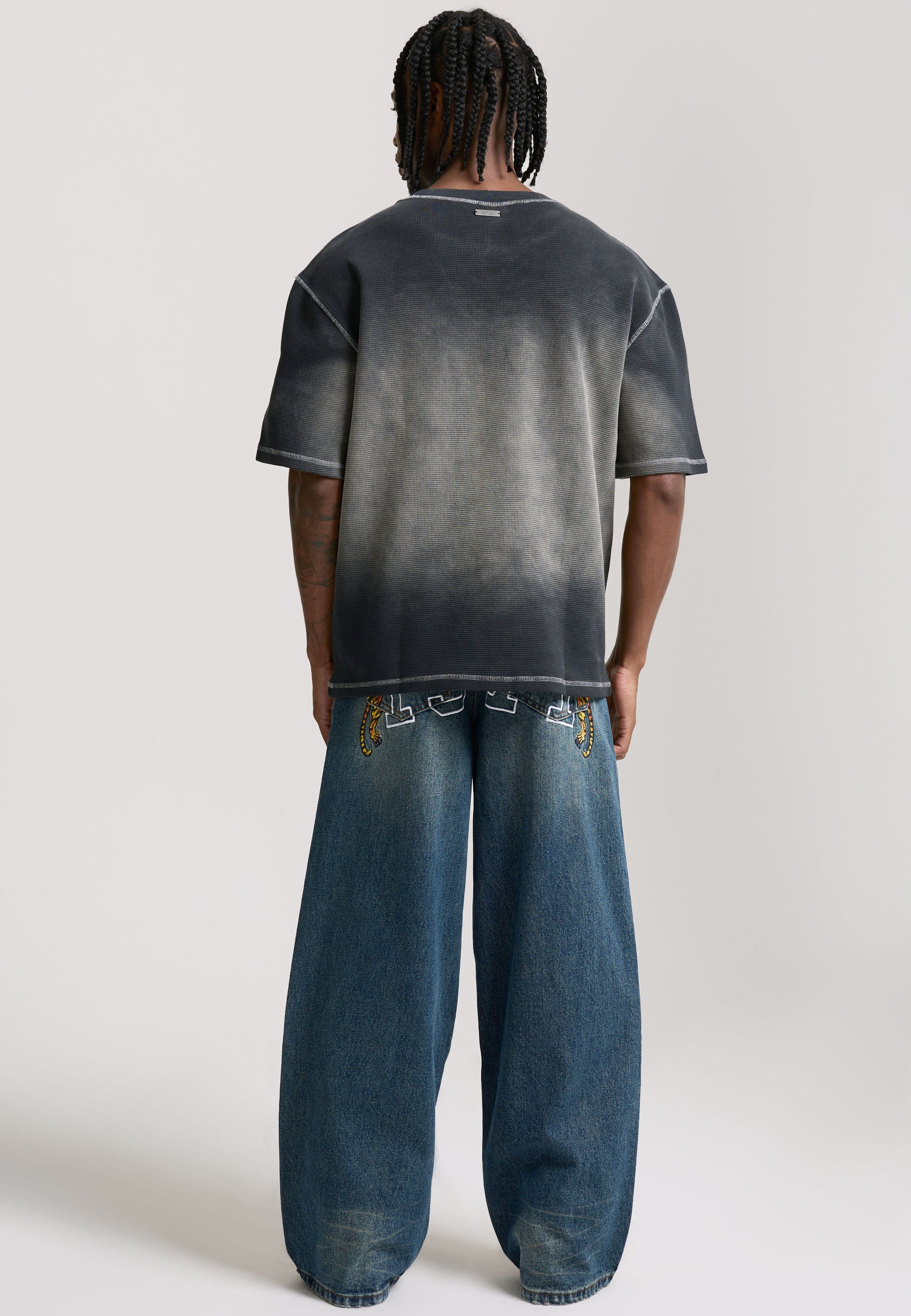 Mens Eagles In Attack Dyed Seams Relaxed T-Shirt - Mid Grey/Black
