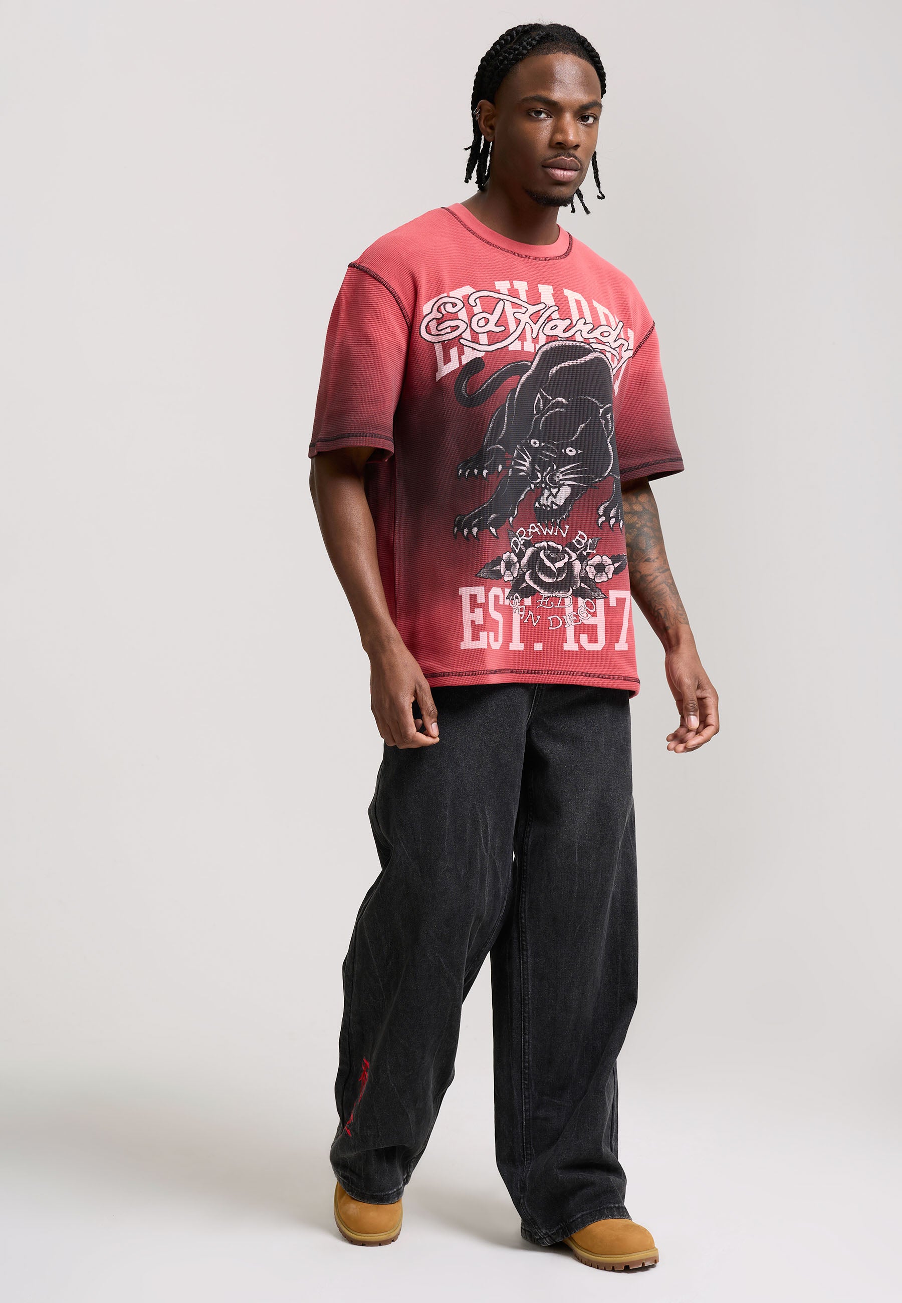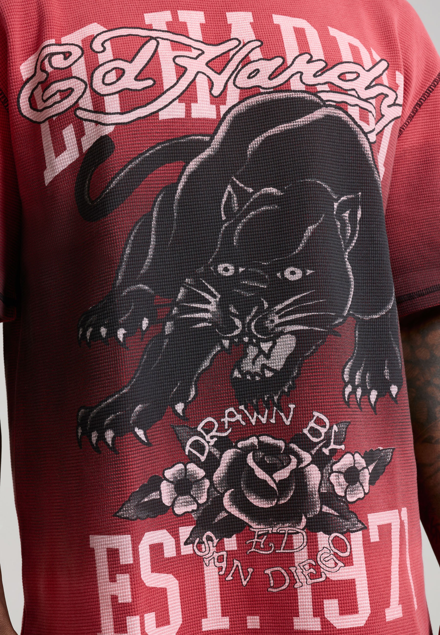 Mens Washed Waffle Panther Graphic Relaxed T-Shirt - Red