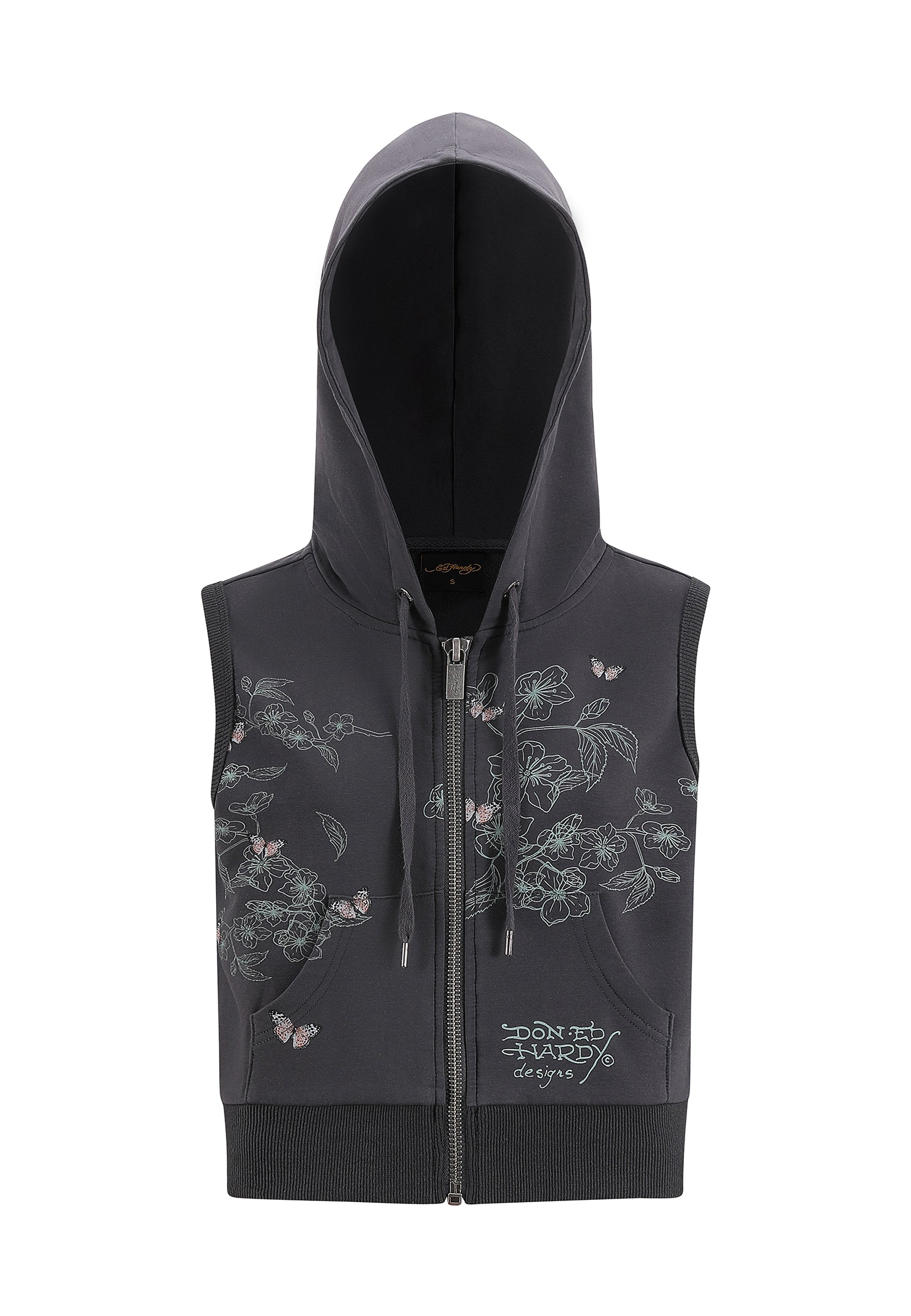 Womens Love Eternal Sleeveless Zip Thru Cropped Hoodie - Black