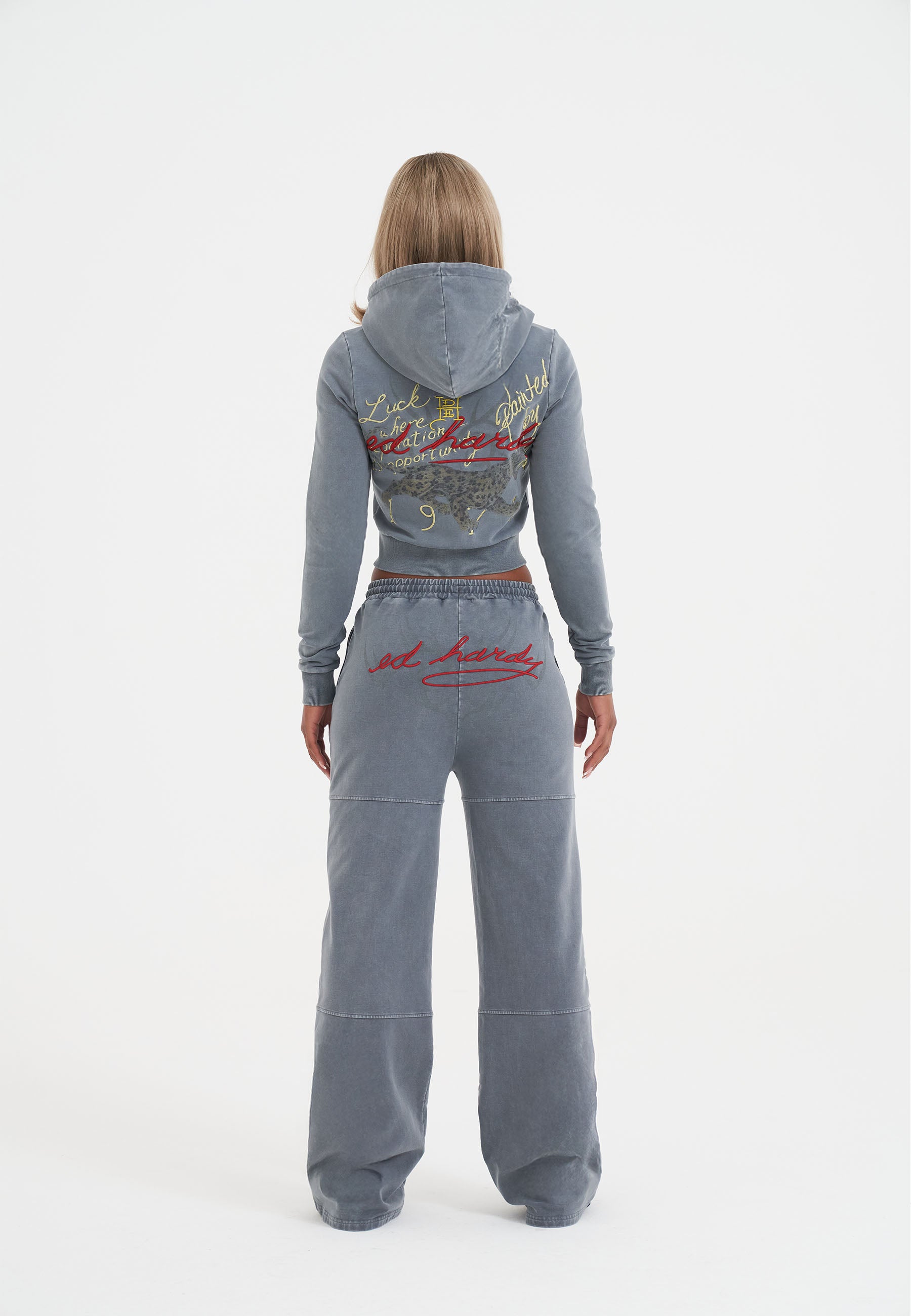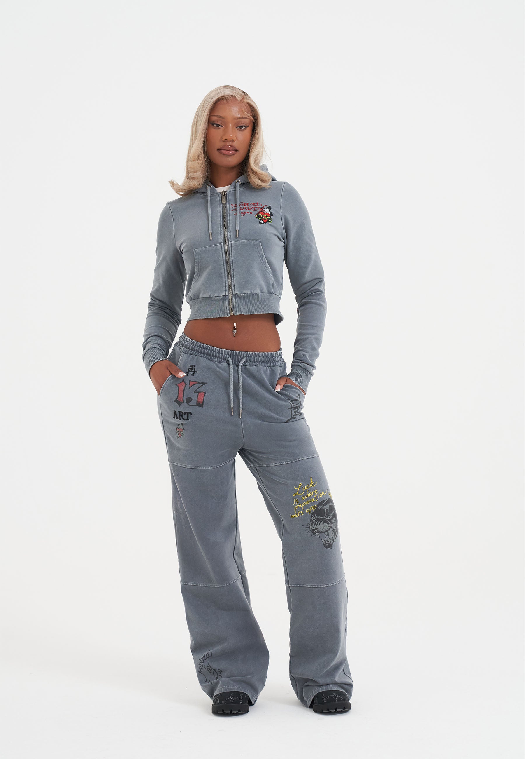 Womens Lks Graphic Cropped Zip Thru Hoodie - Grey