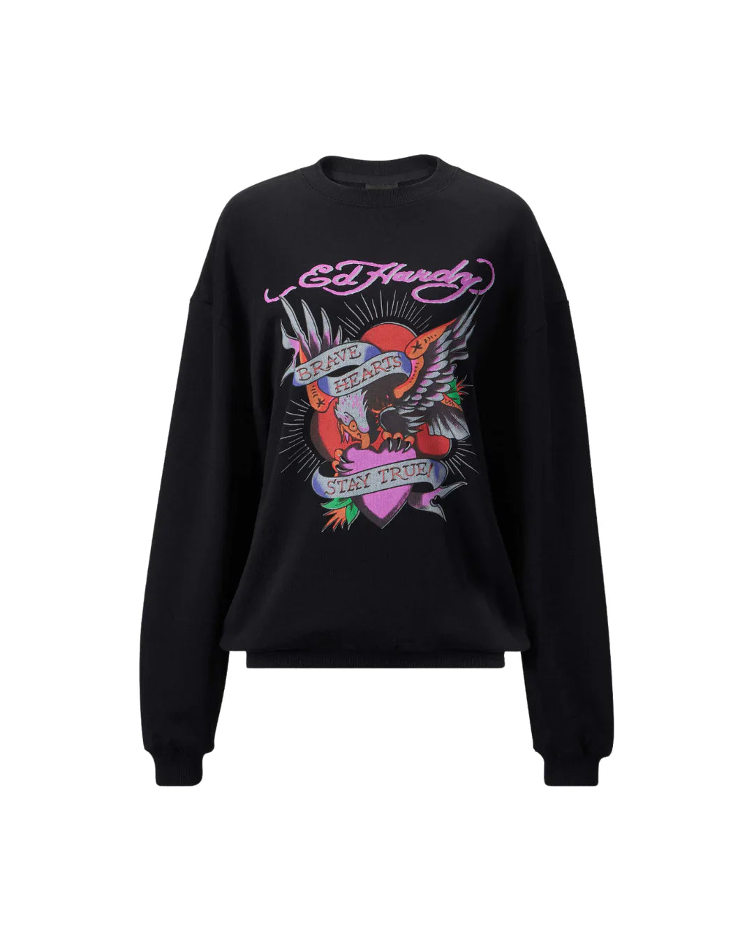 Womens Brave Heart Graphic Relaxed Crew Neck Sweatshirt - Black