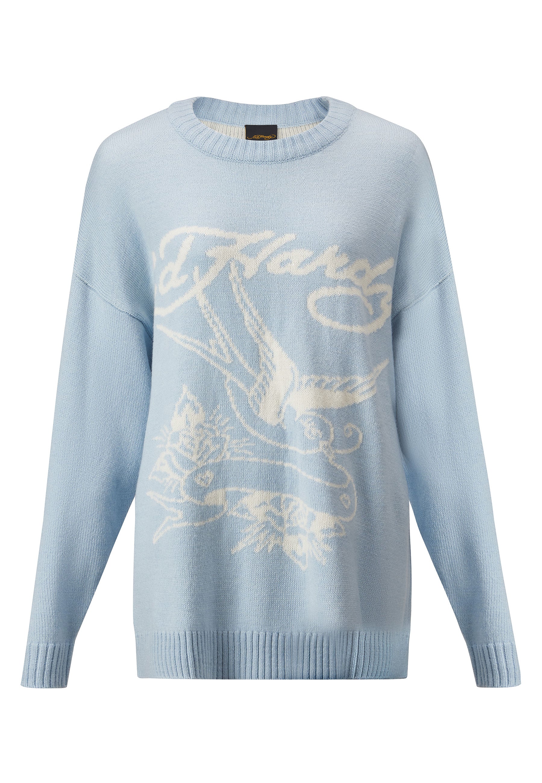 Womens Love Bird Jaquard Knitted Jumper - Blue