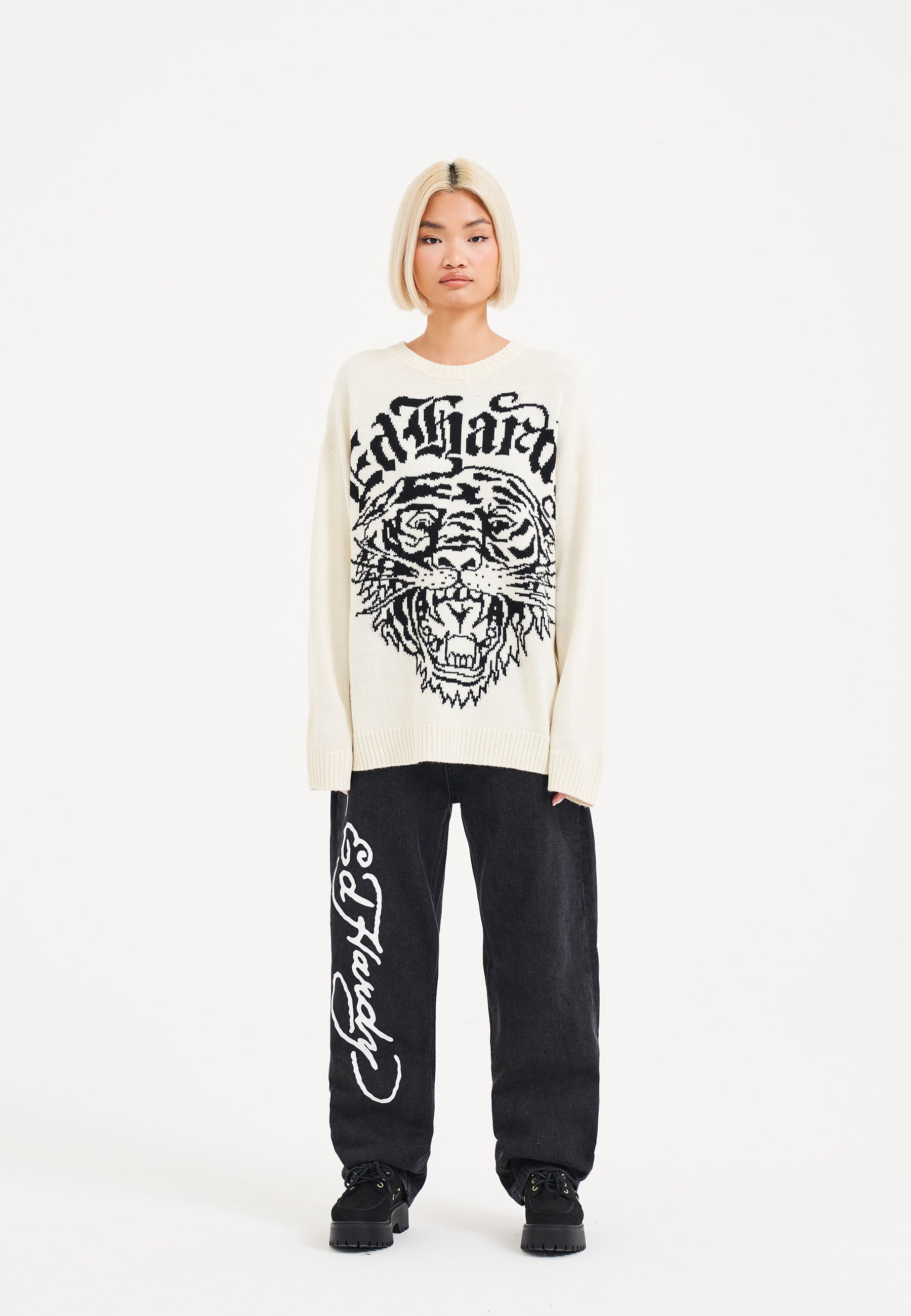 Womens Tiger-Roar Jaquard Knitted Jumper - Off White/Black