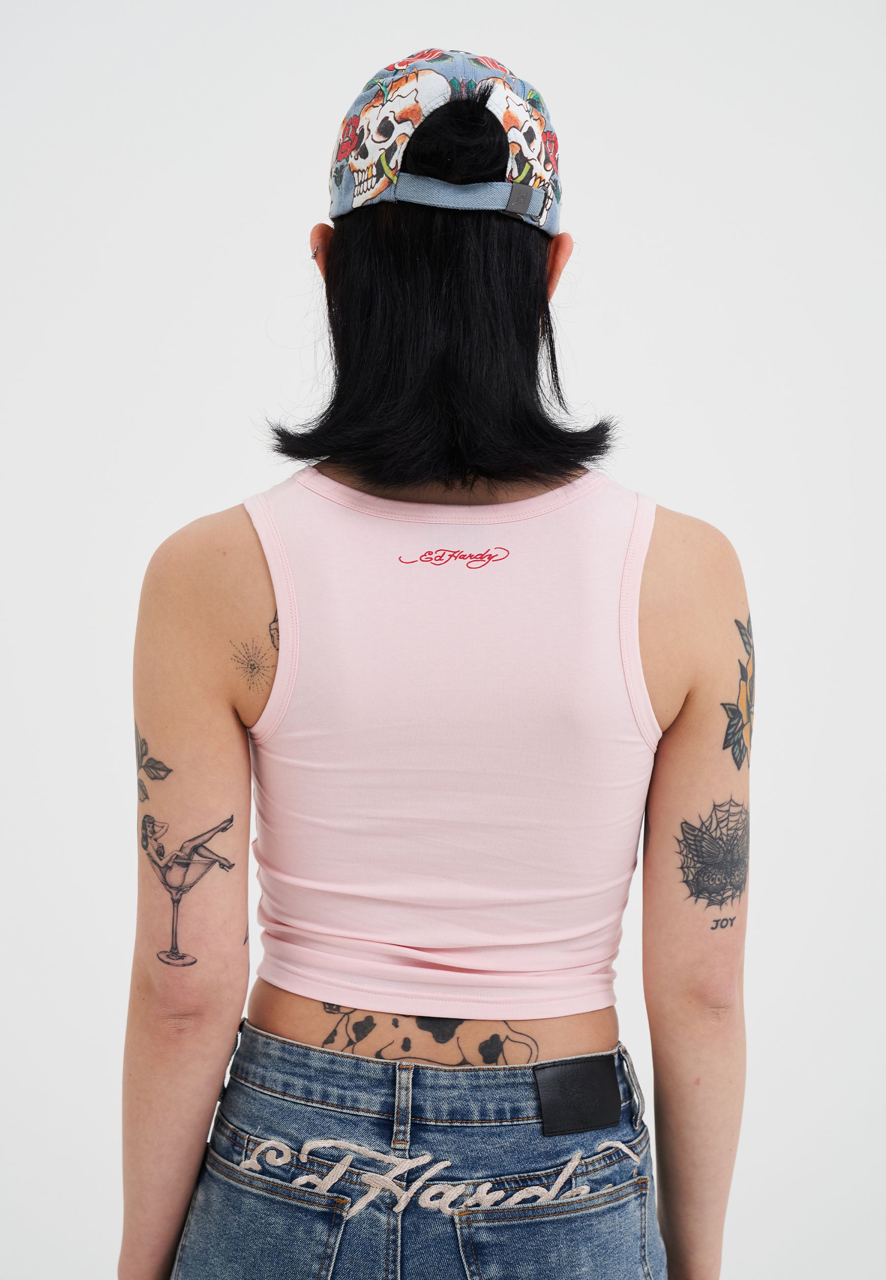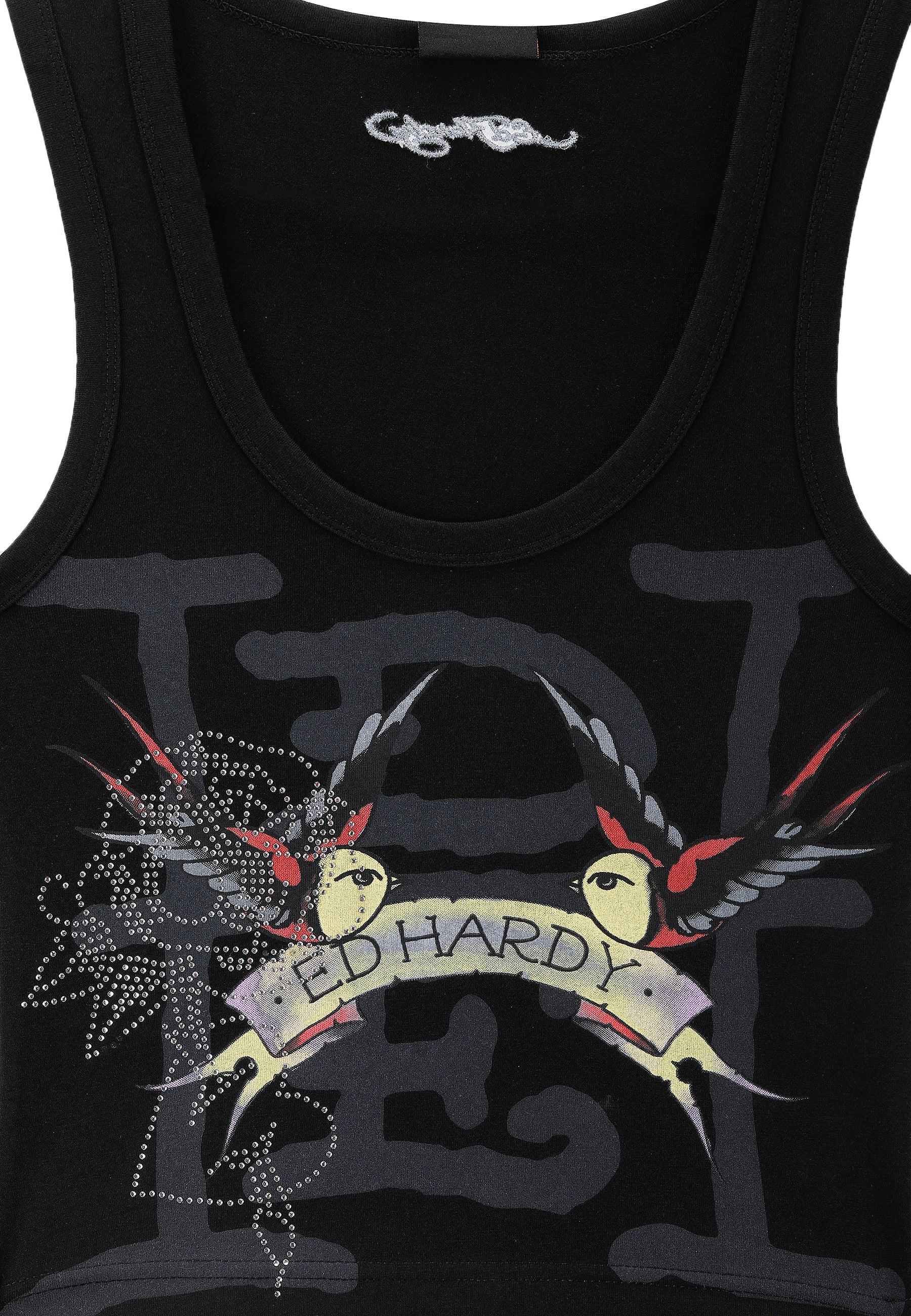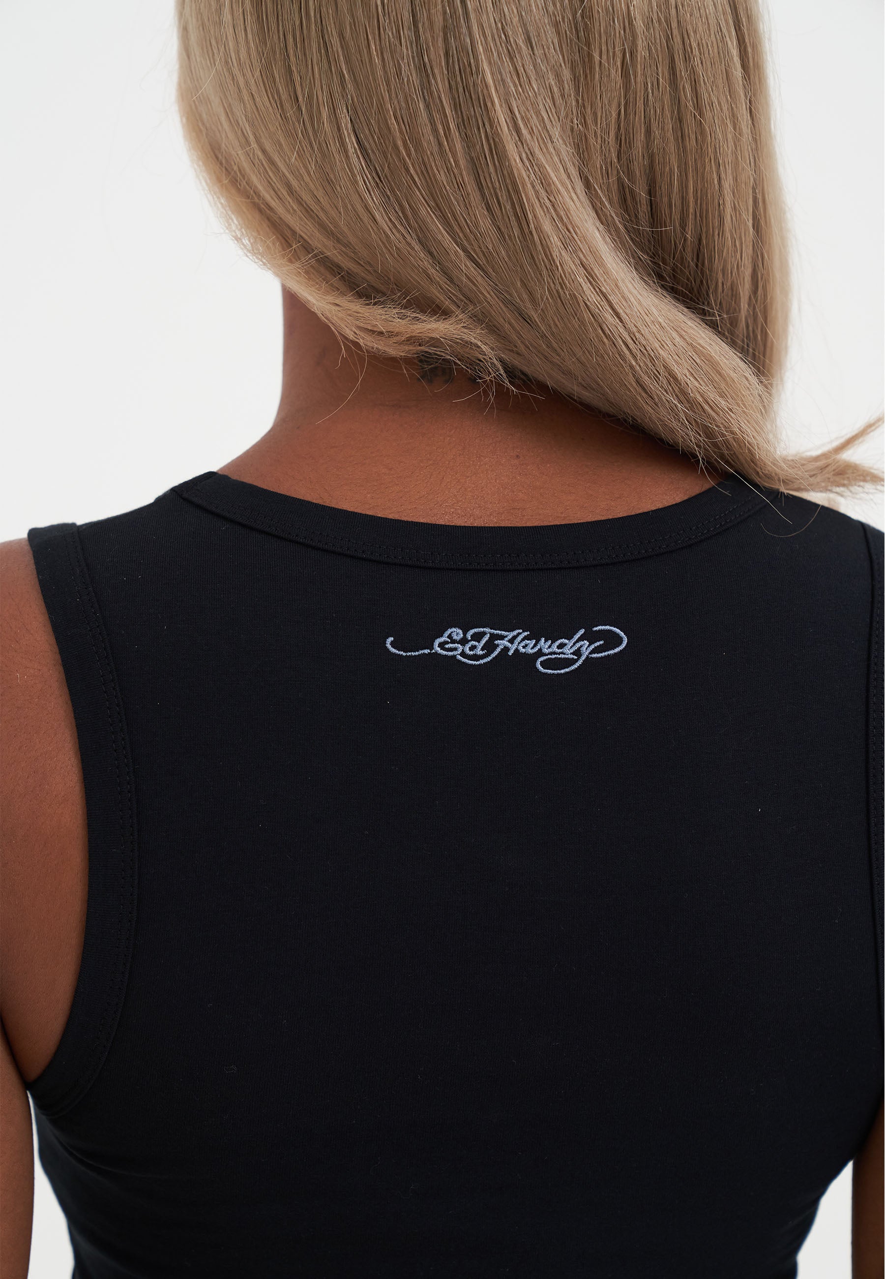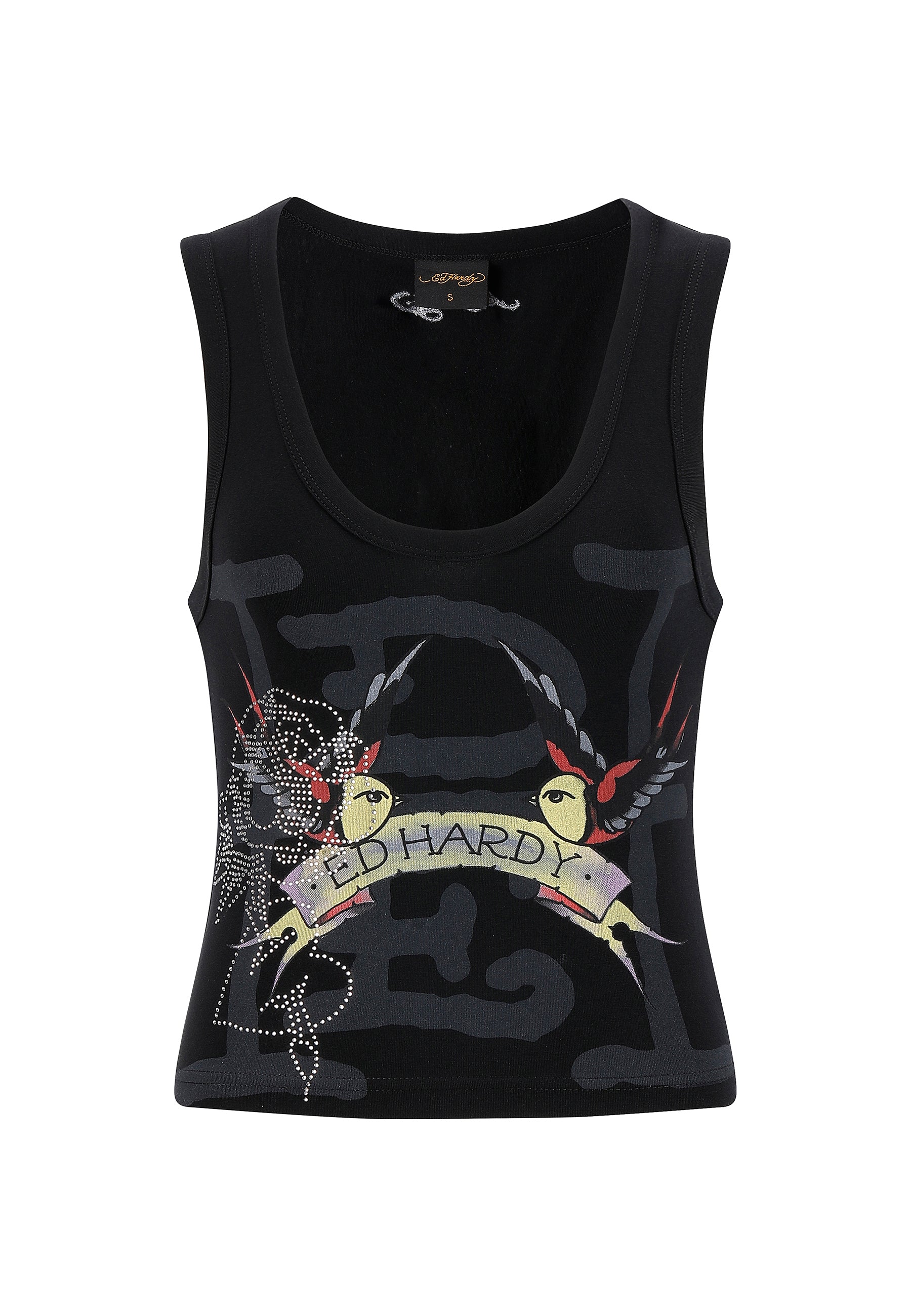 Womens Script Ed Hardy Diamante Vest Top - Black