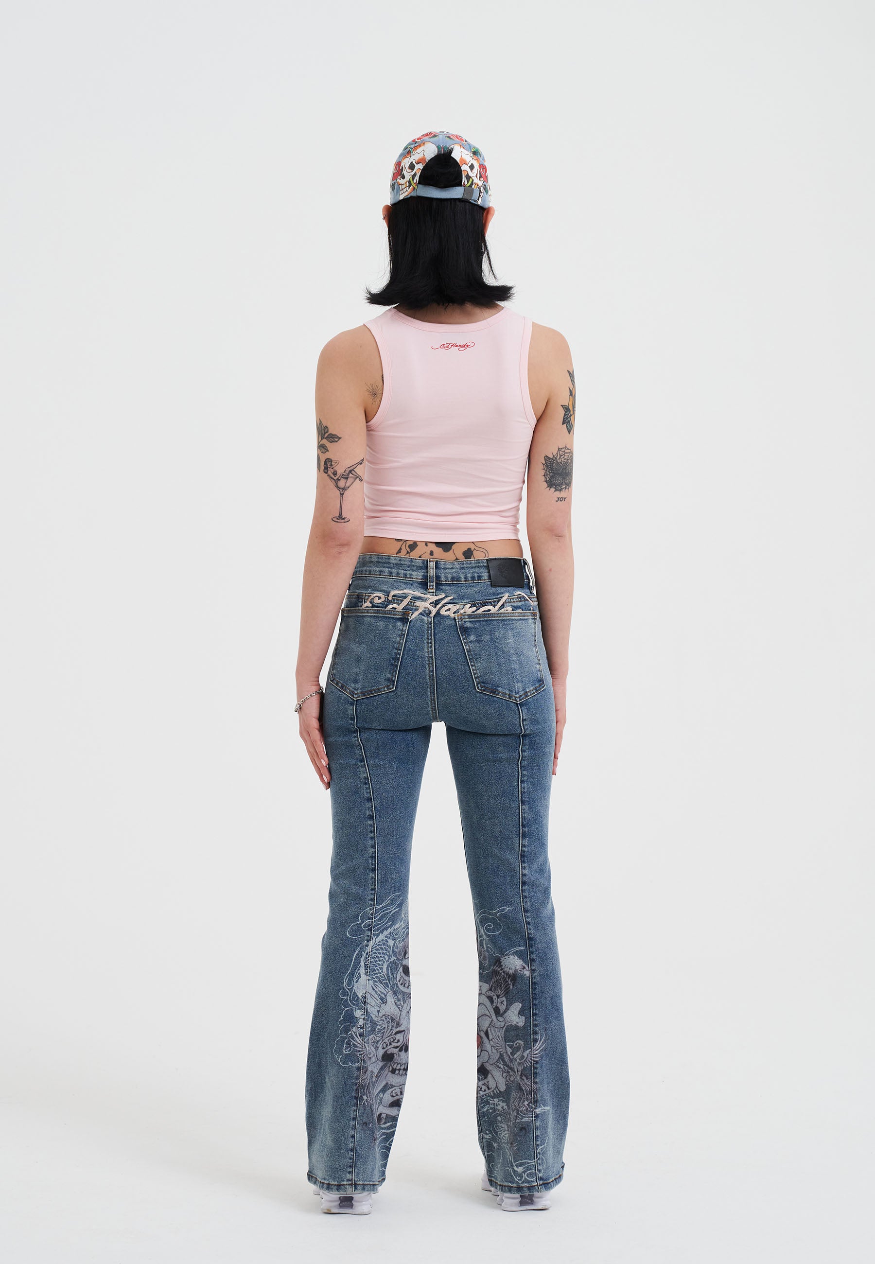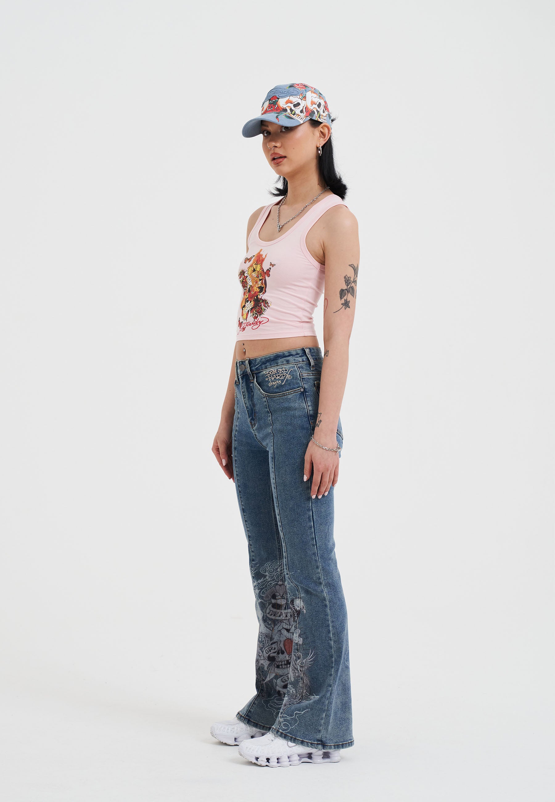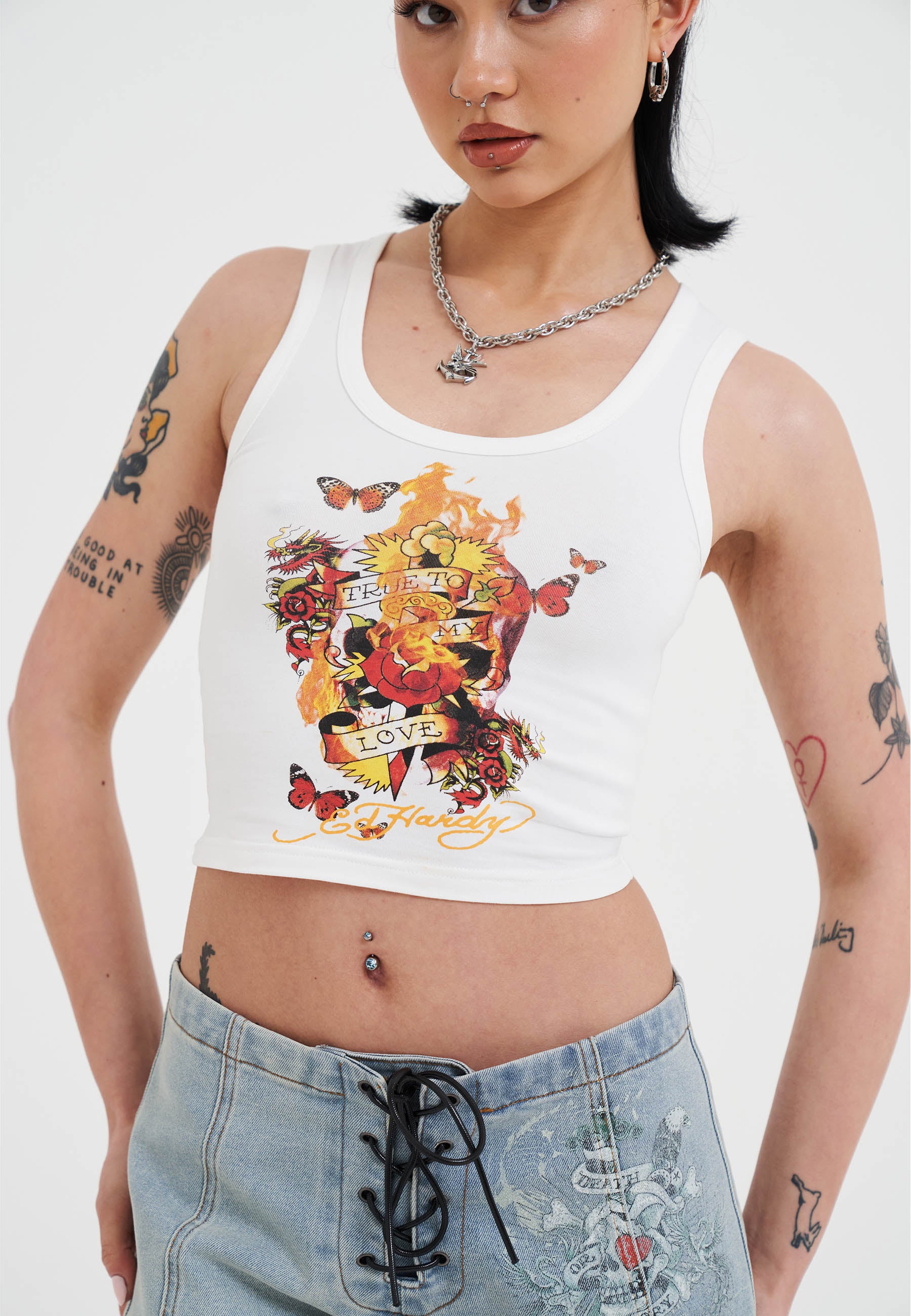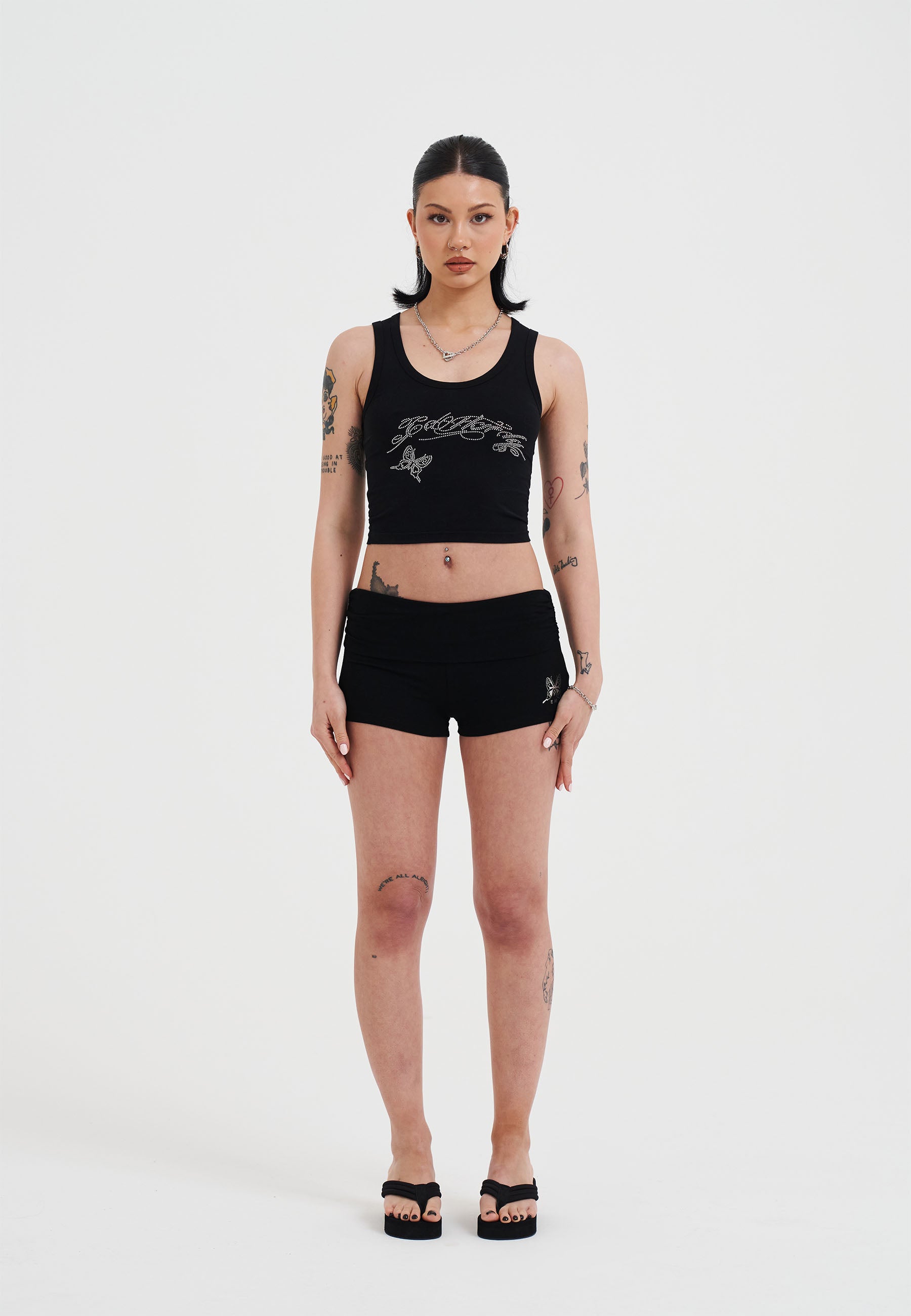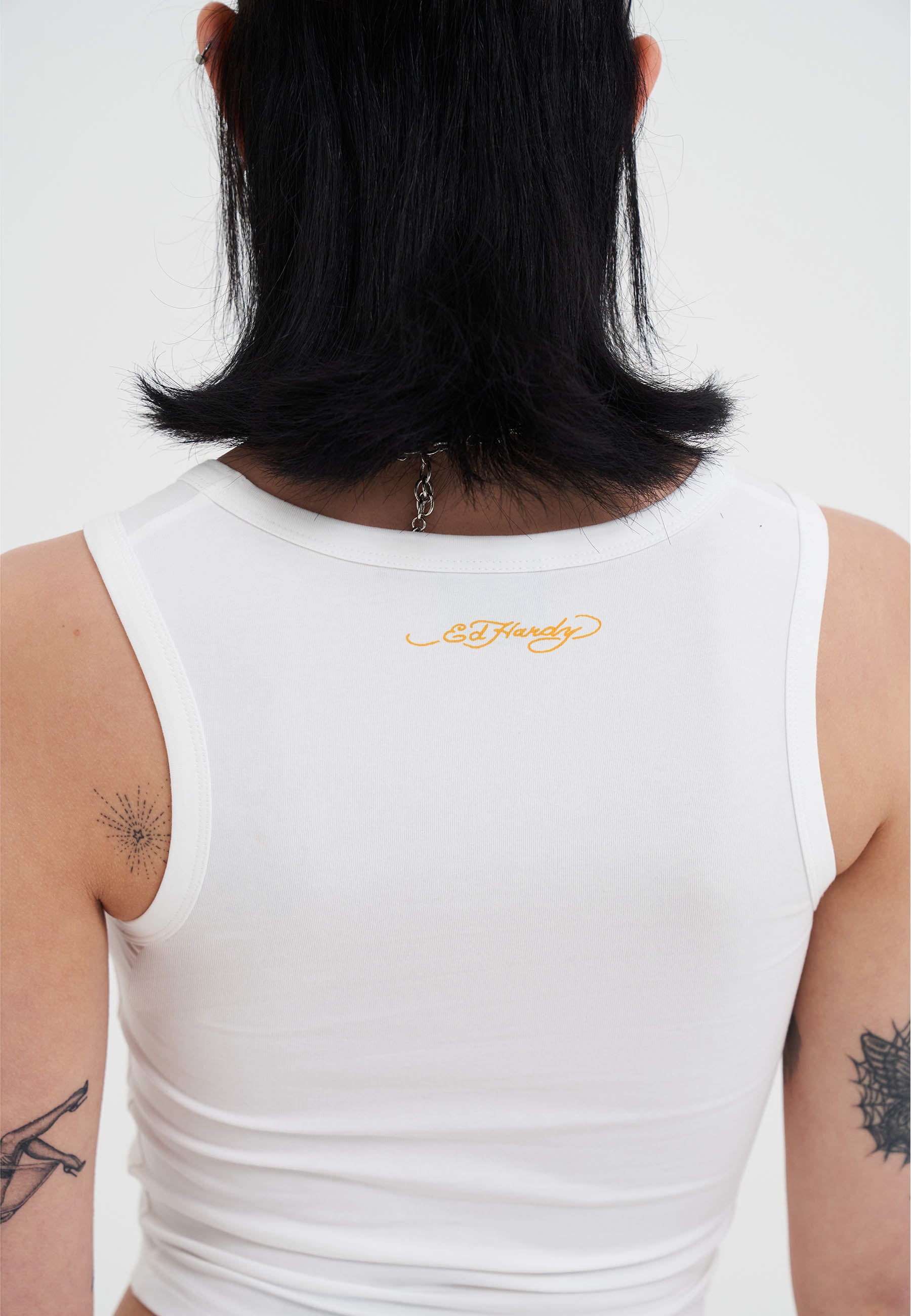 Womens Script Ed Hardy Diamante Vest Top - Black