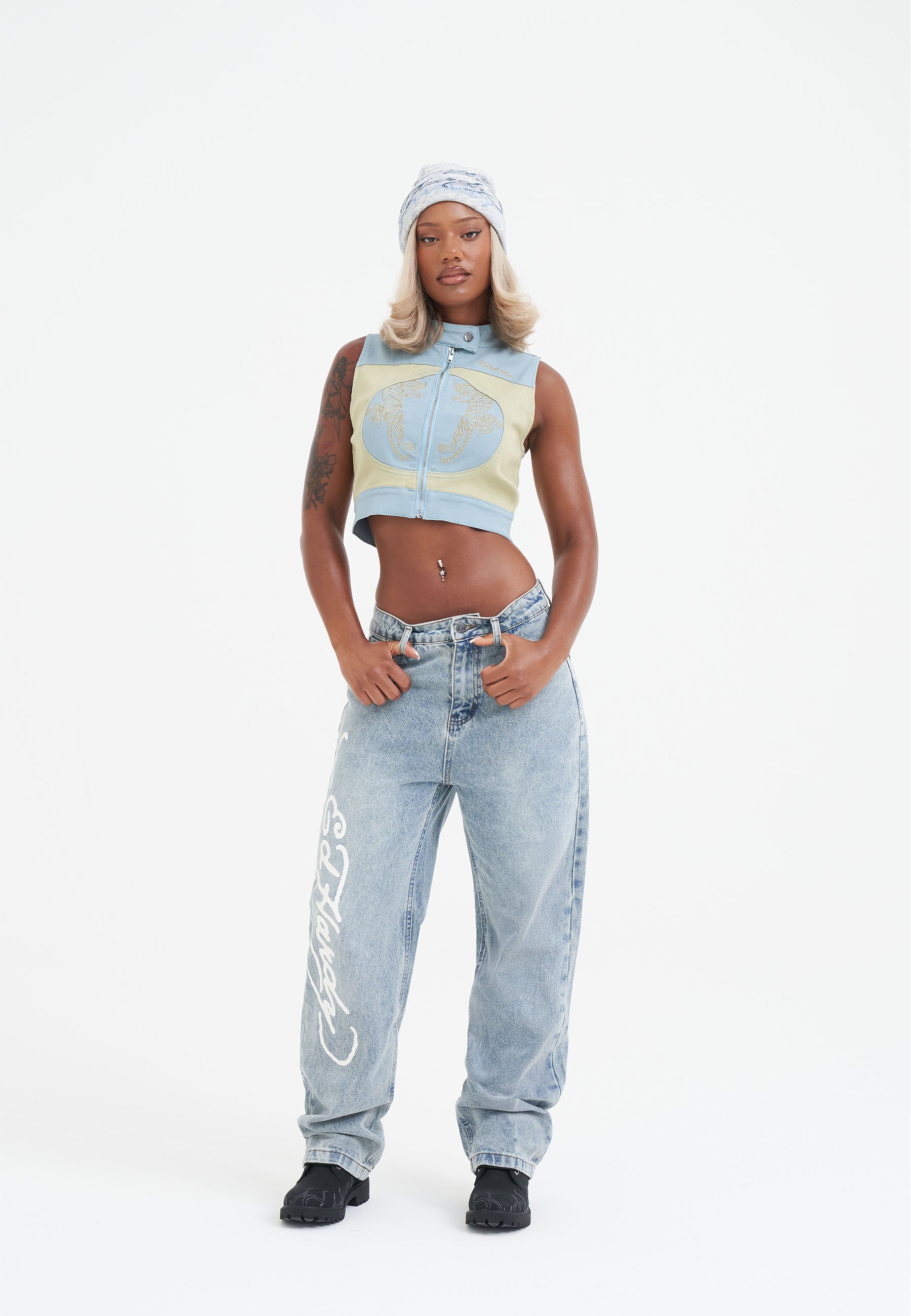 Womens Antique Butterfly Denim Corset Top - Indigo