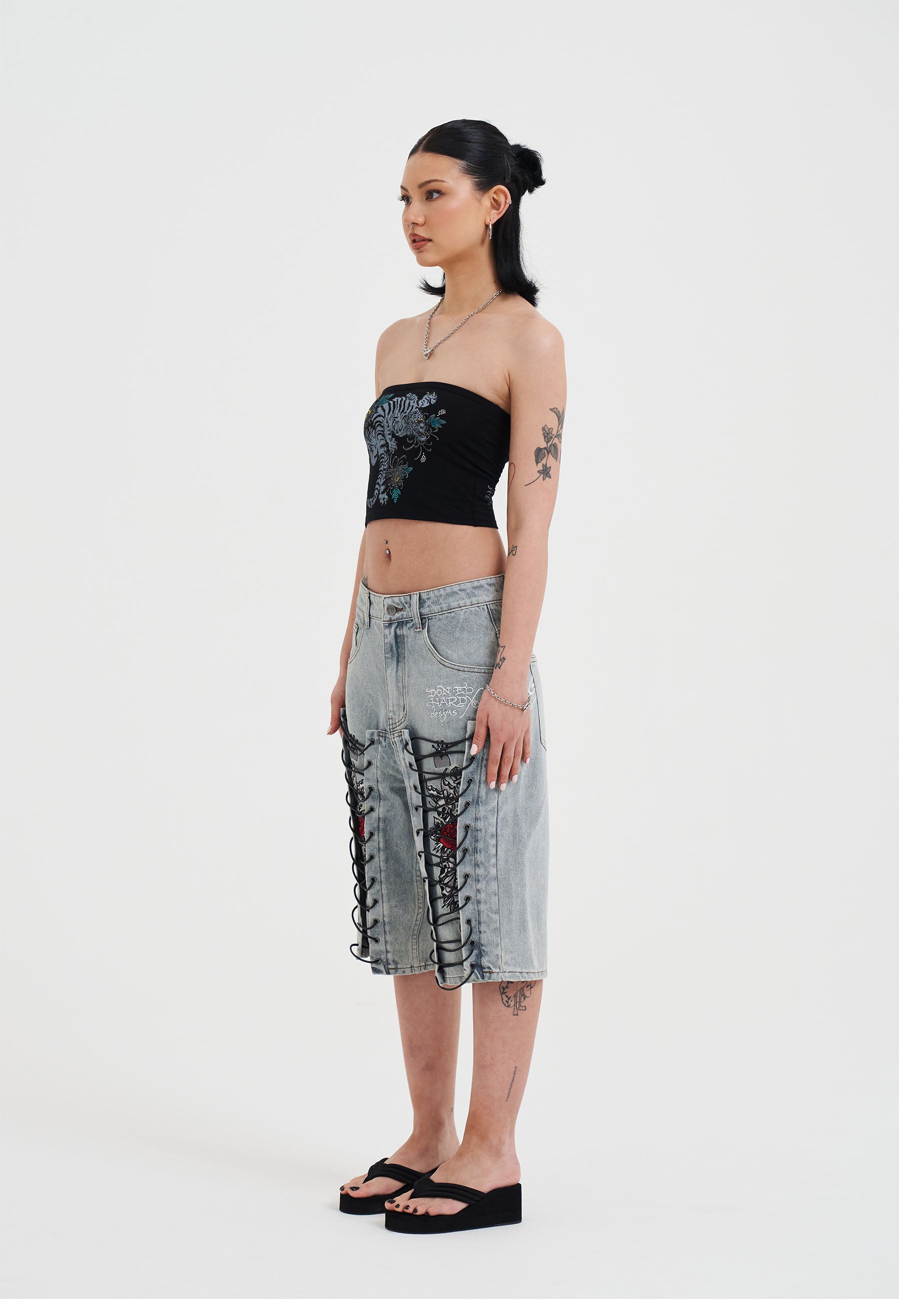 Womens Rouge Hearts Denim Corset Top - Indigo