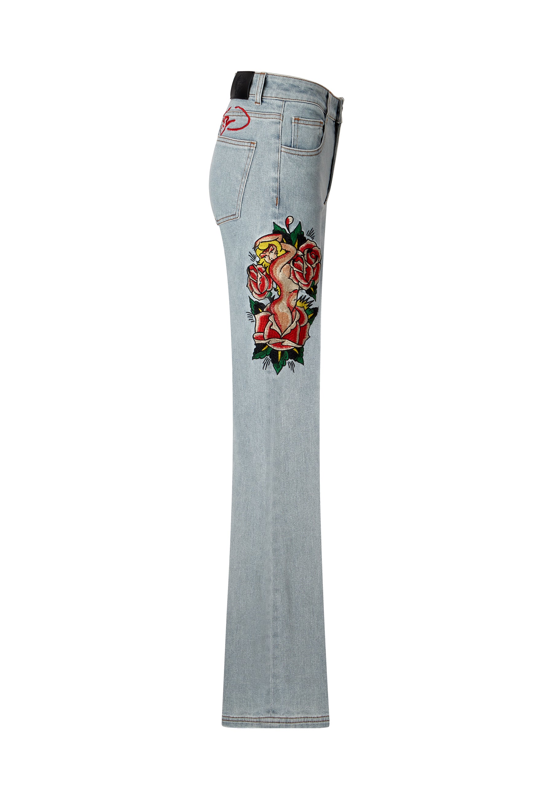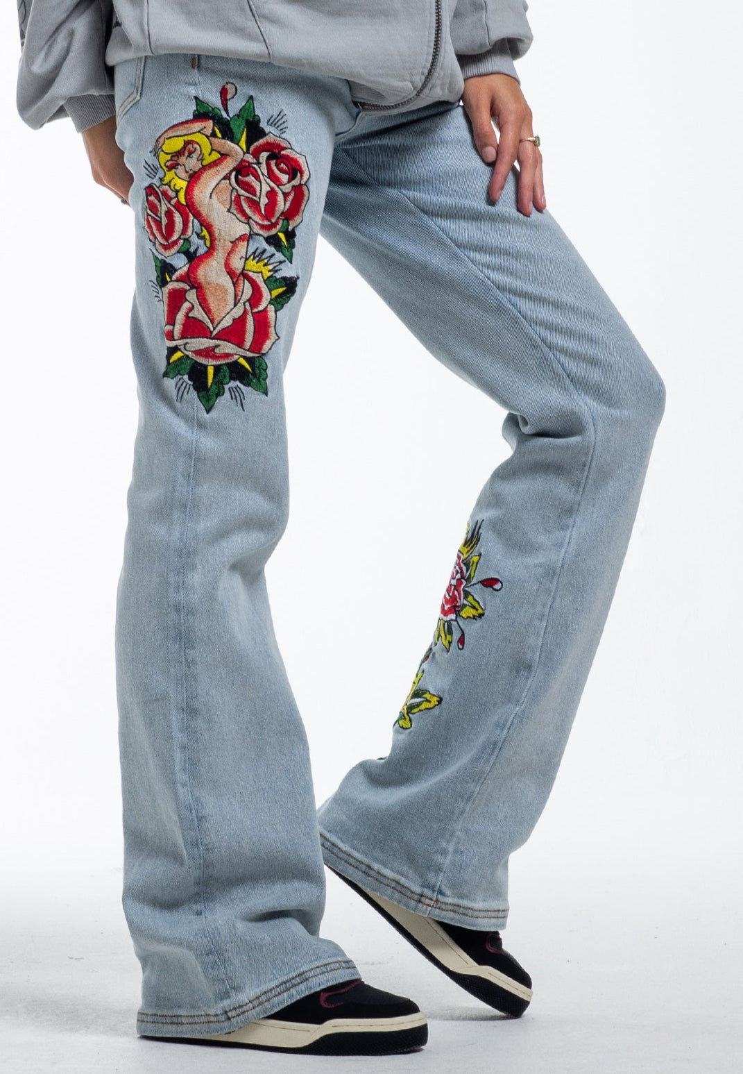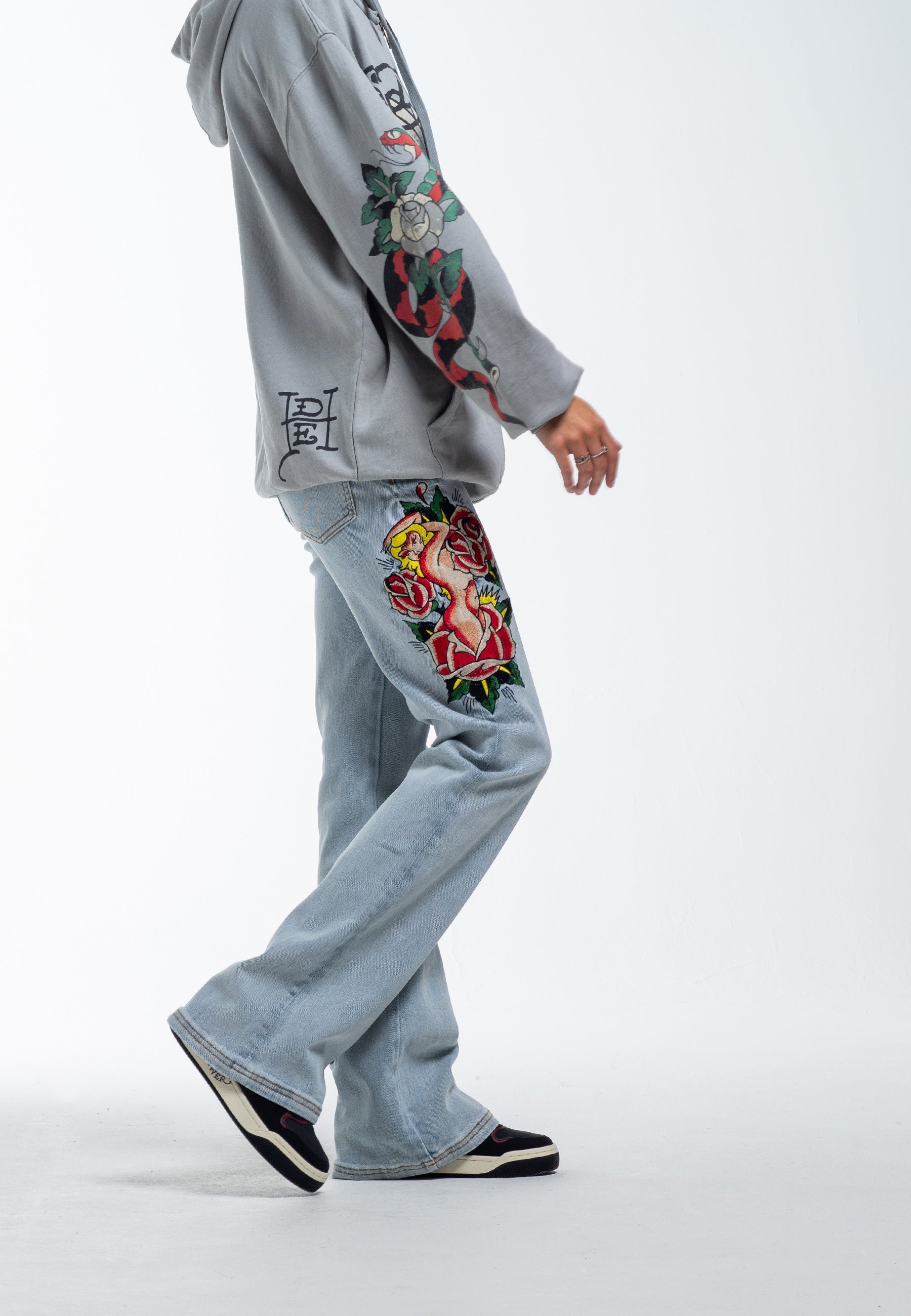 Debuterer som en frisk silhuet i 2023 er disse jeans sat til at blive en fast favorit, der sætter standarden for en ny æra af Ed Hardy-stil.
