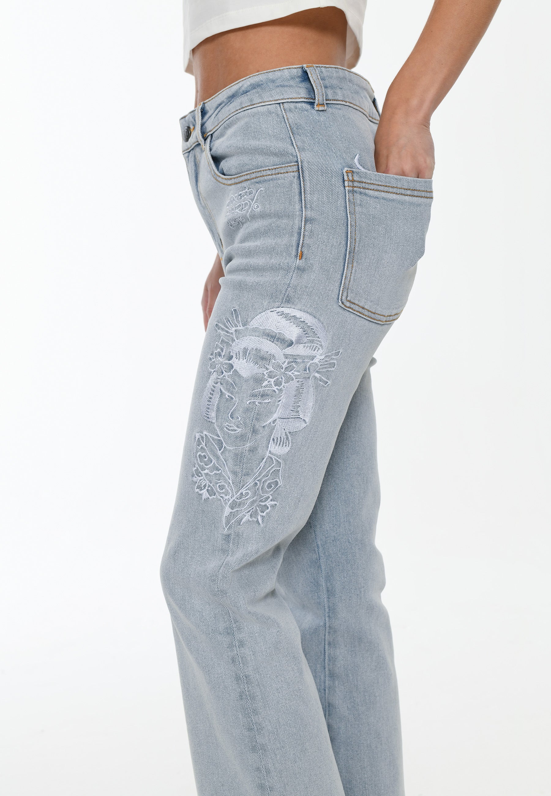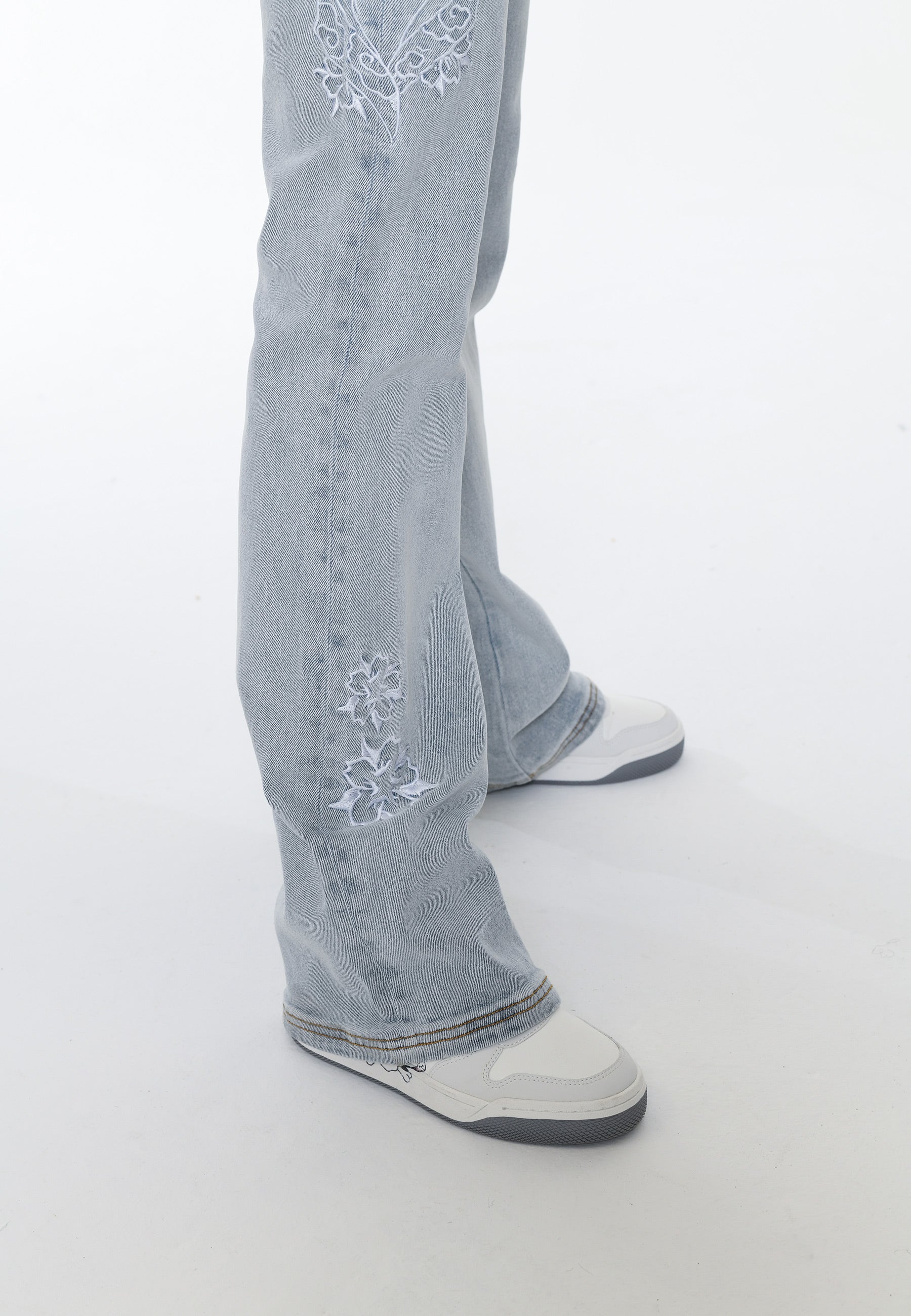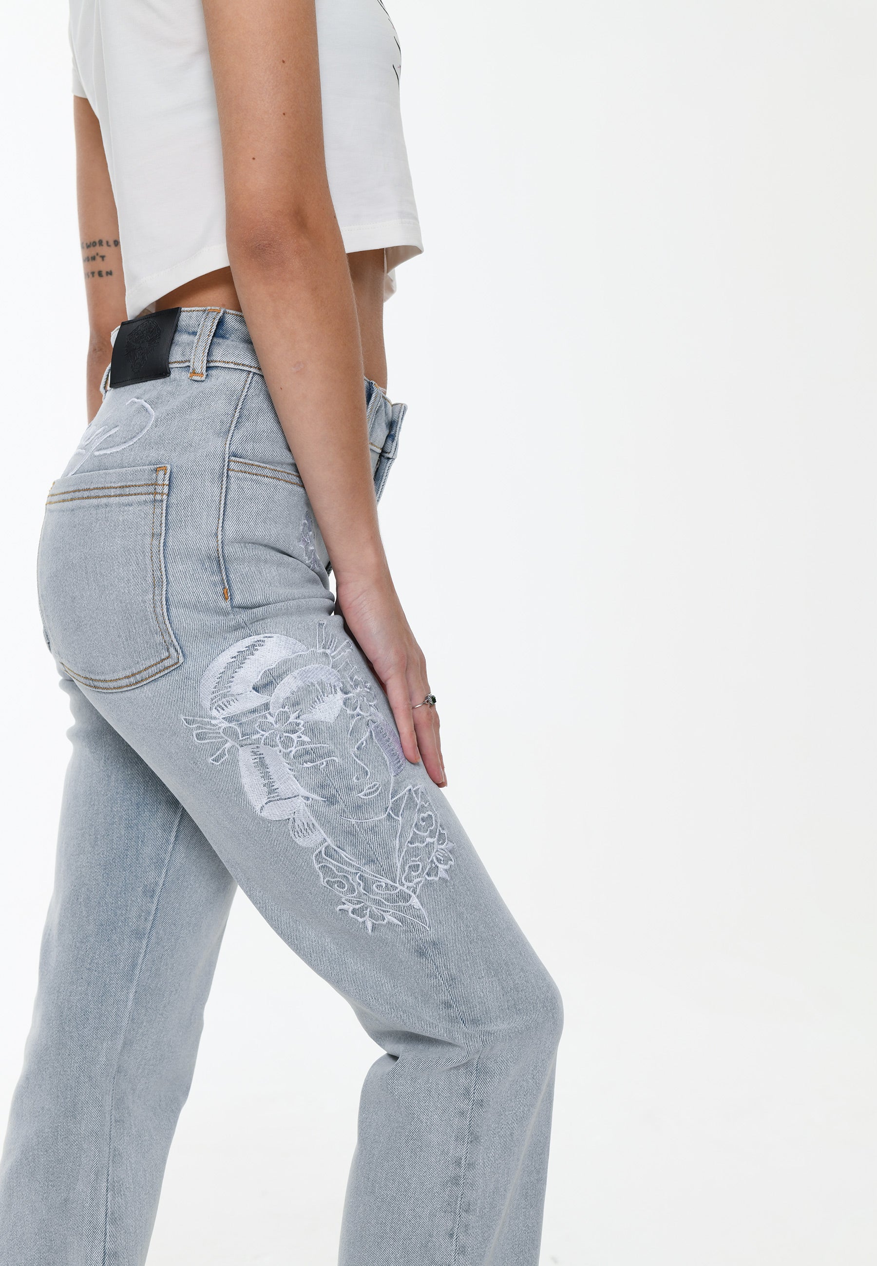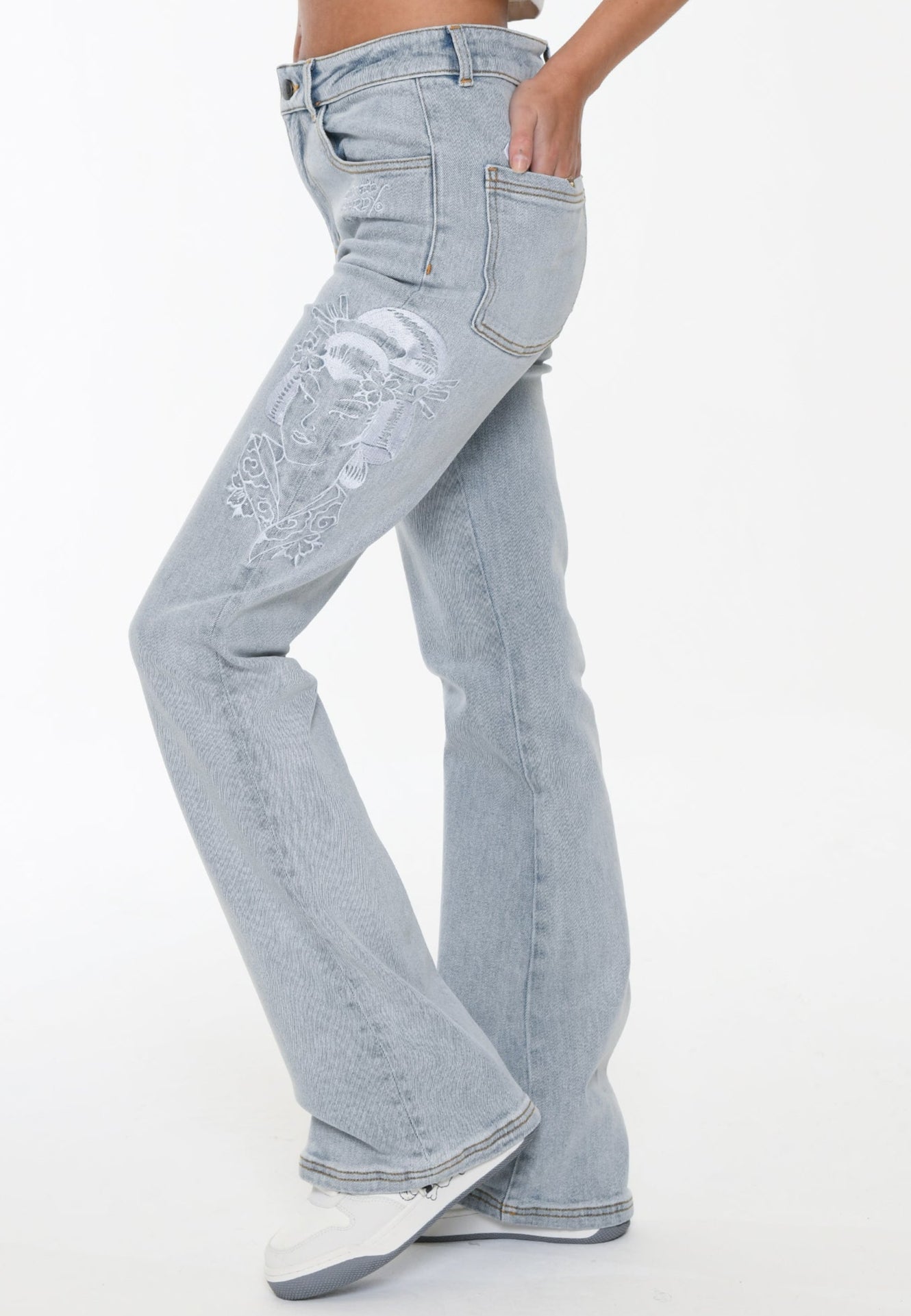 Dame Geisha Mirror Flared Denim Bukser Jeans - Blå