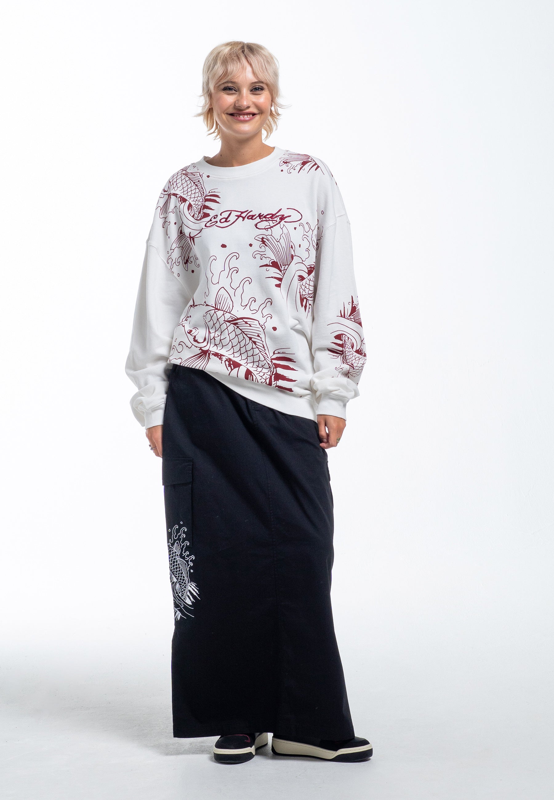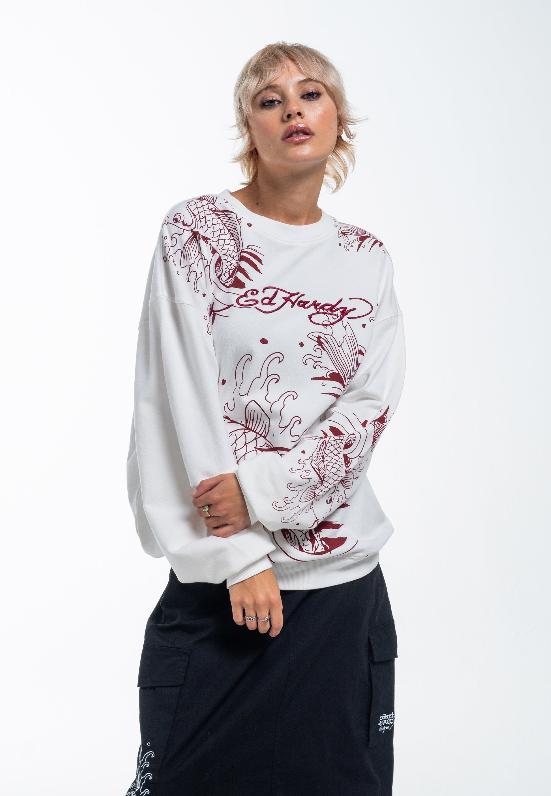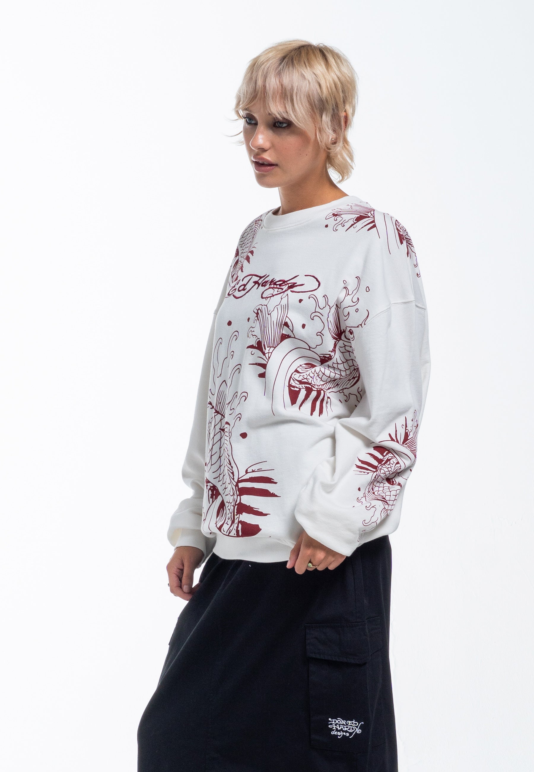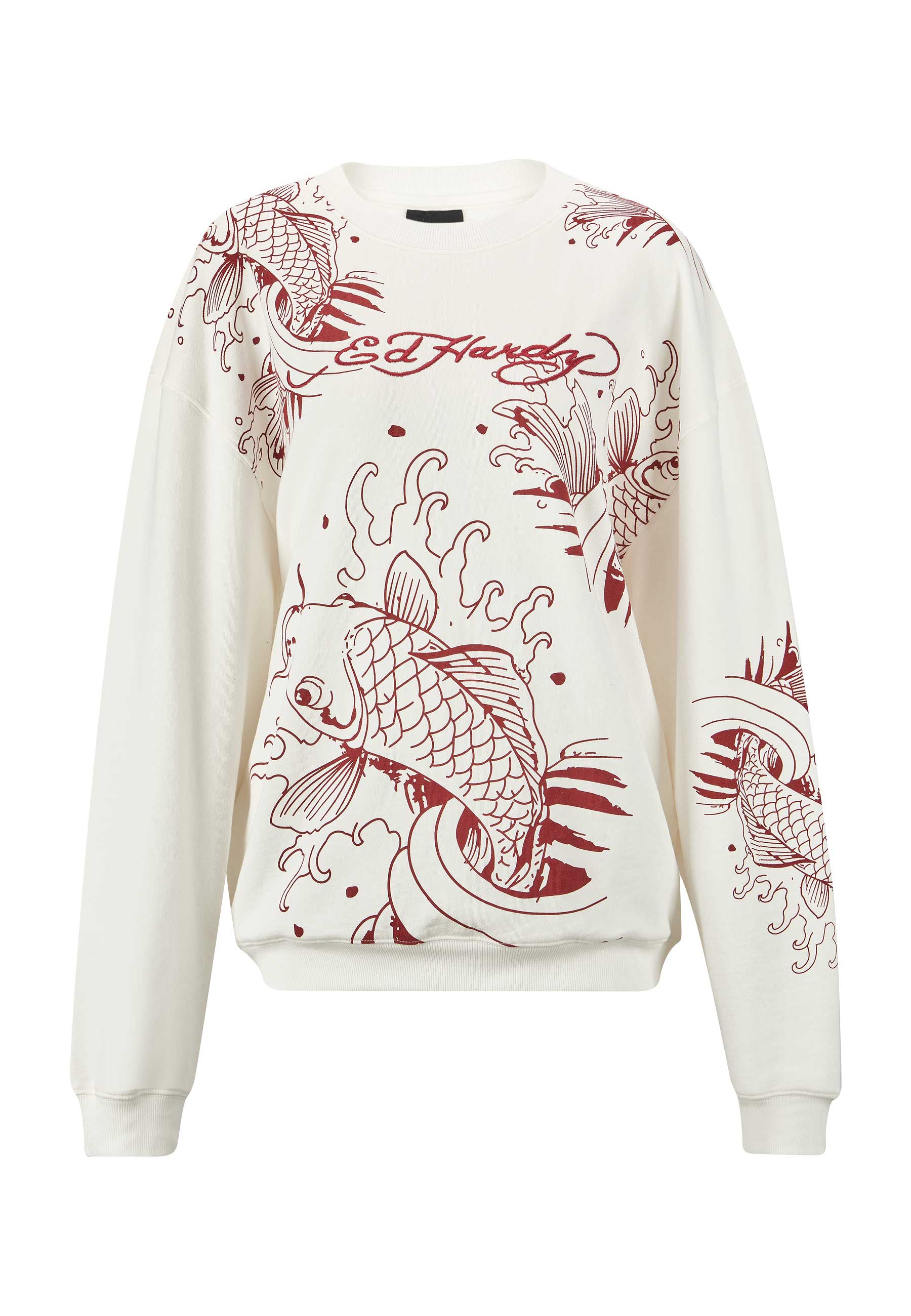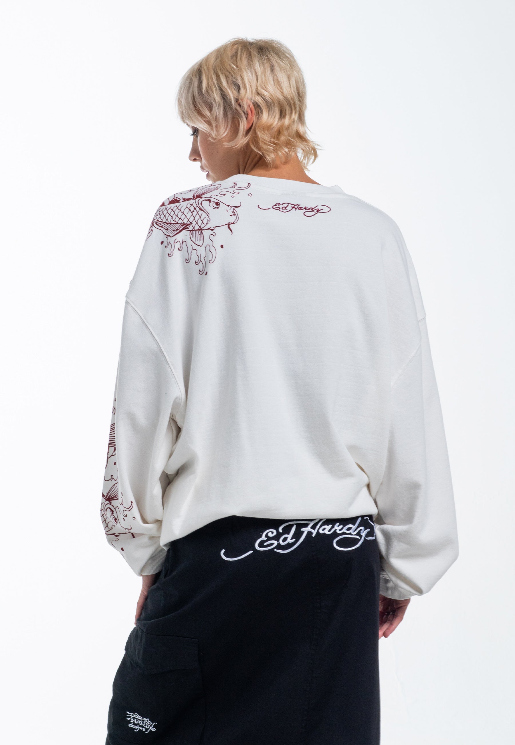 Dame Koi River afslappet sweatshirt med rund hals - hvid