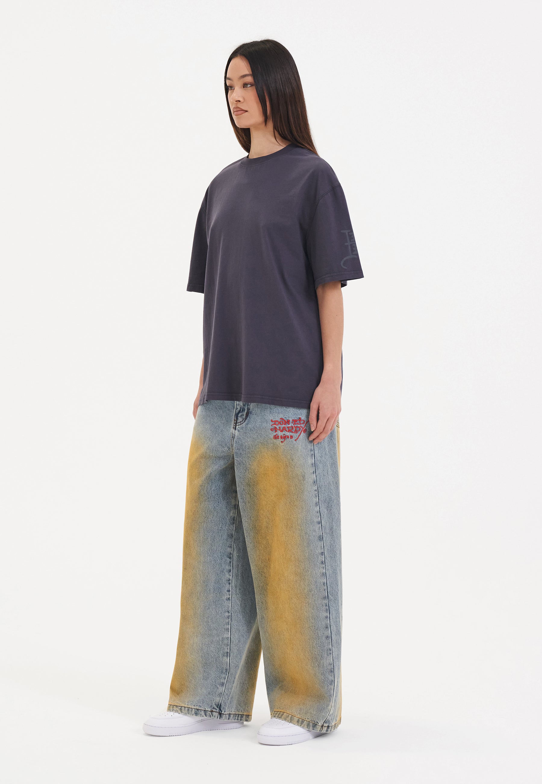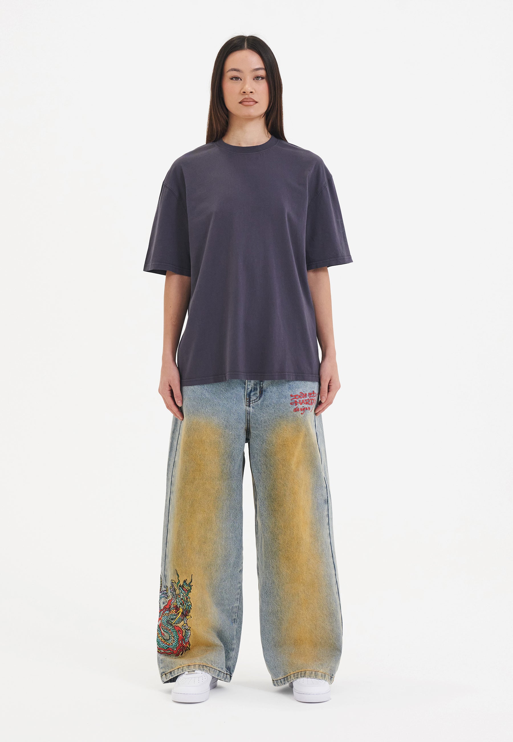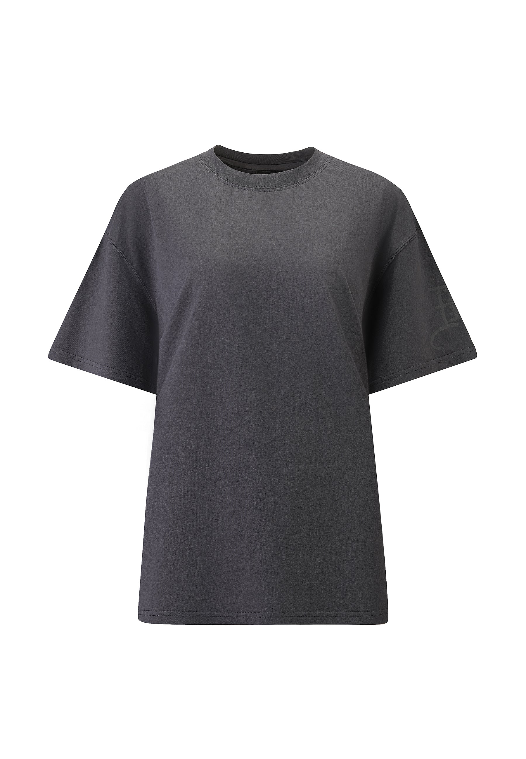 Dame Mono Fireball Dragon Tshirt Top - Mørkegrå