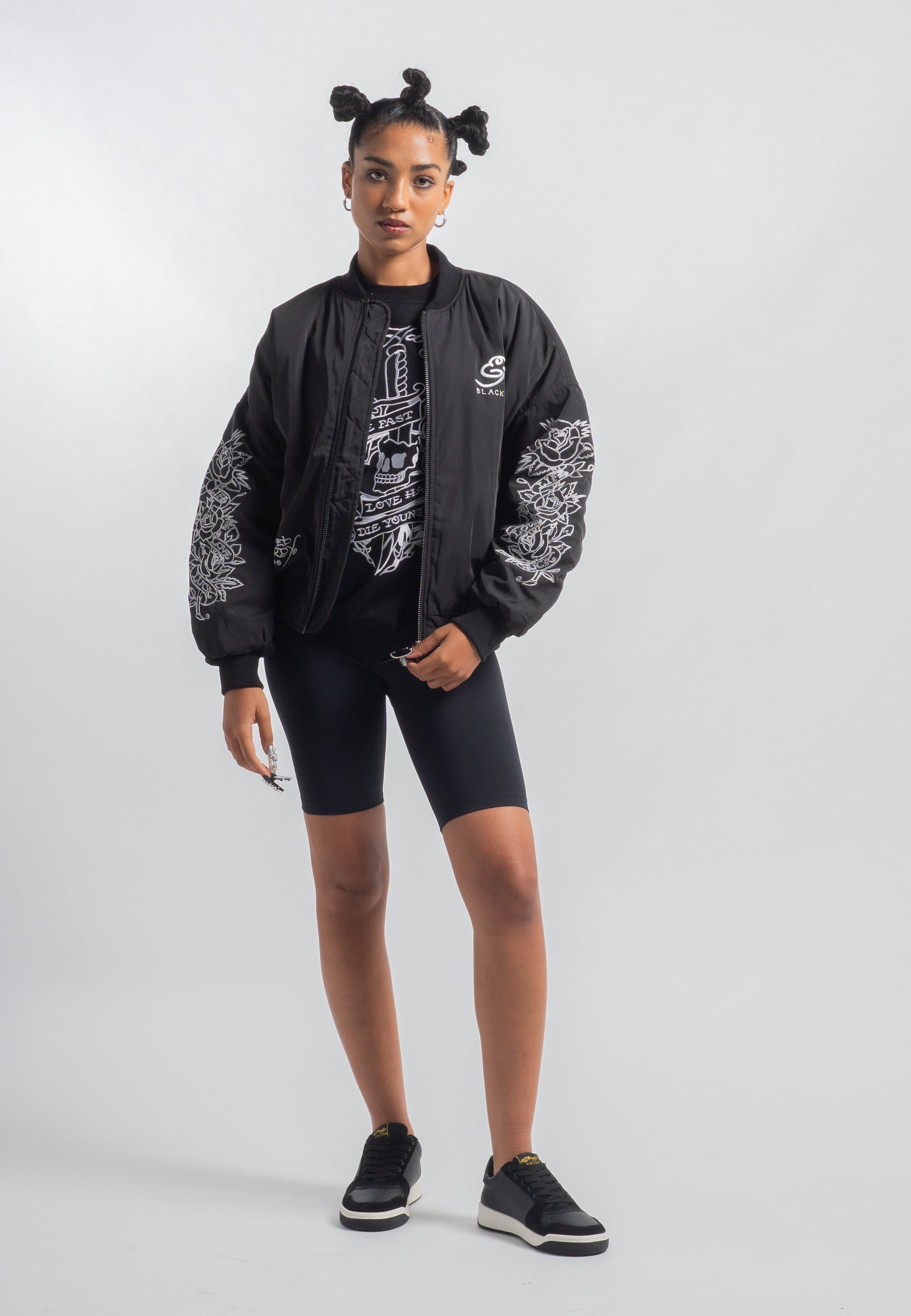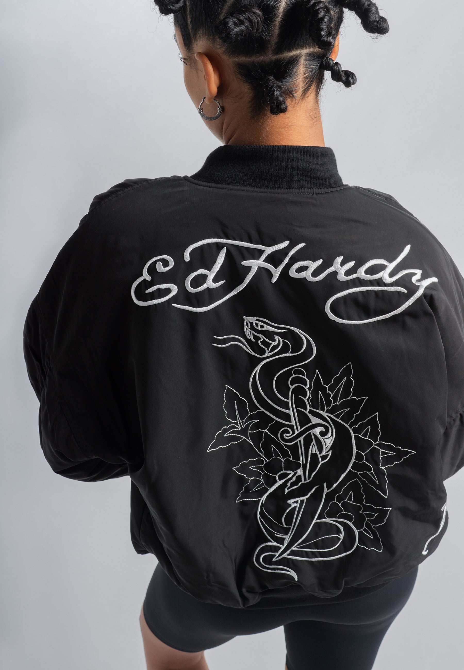 Omfavn essensen af tidløs sofistikering med Women's Snake & Dagger Tonal Bomber Jacket fra vores A/ W Drop One kollektion.