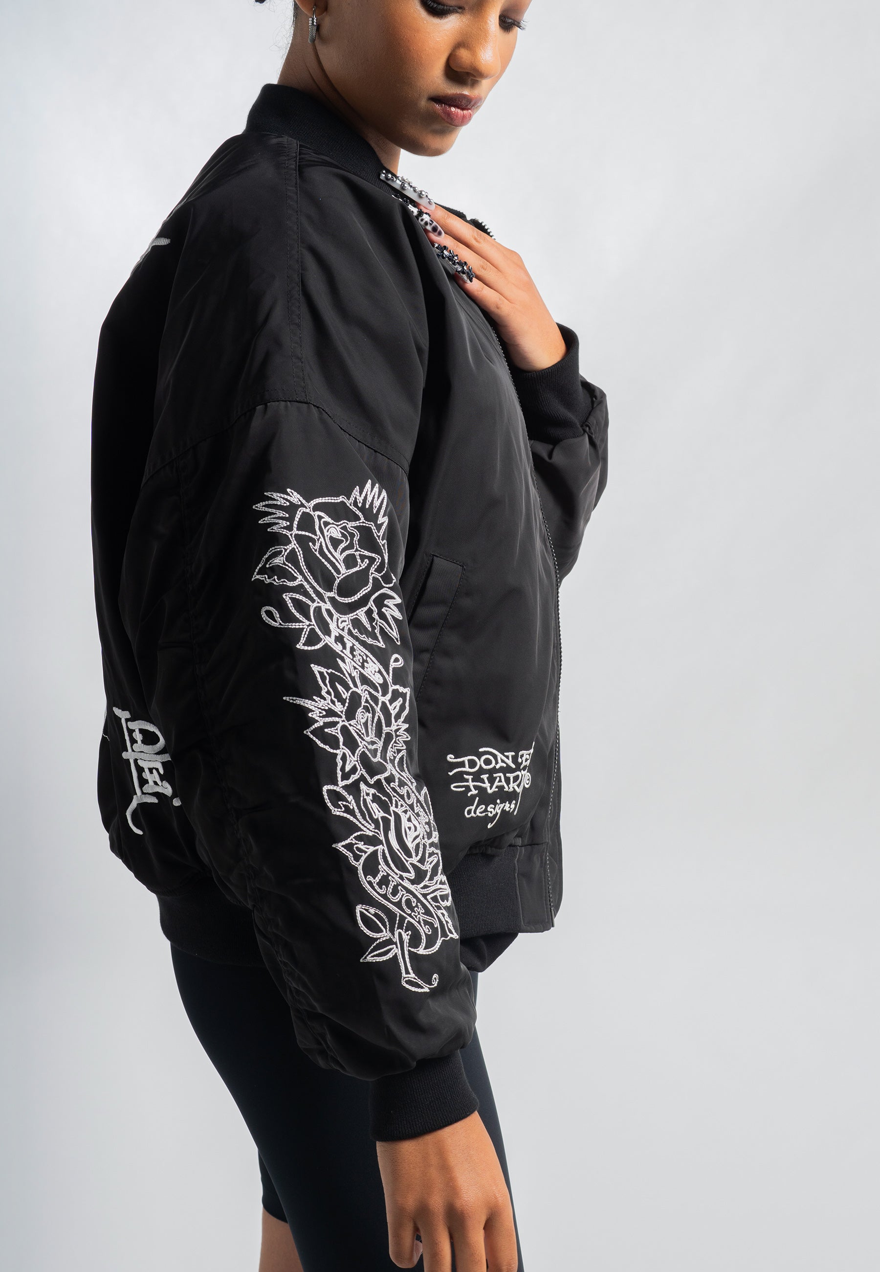 Dame Snake & Dagger Tonal Bomber Jacket - Sort