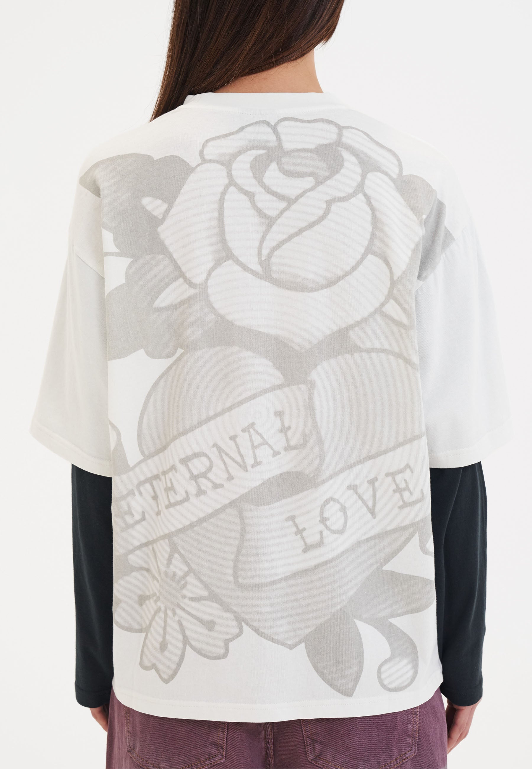 Kvinder Vintage Eternal Double Sleeve Relaxed Tshirt Top - Hvid