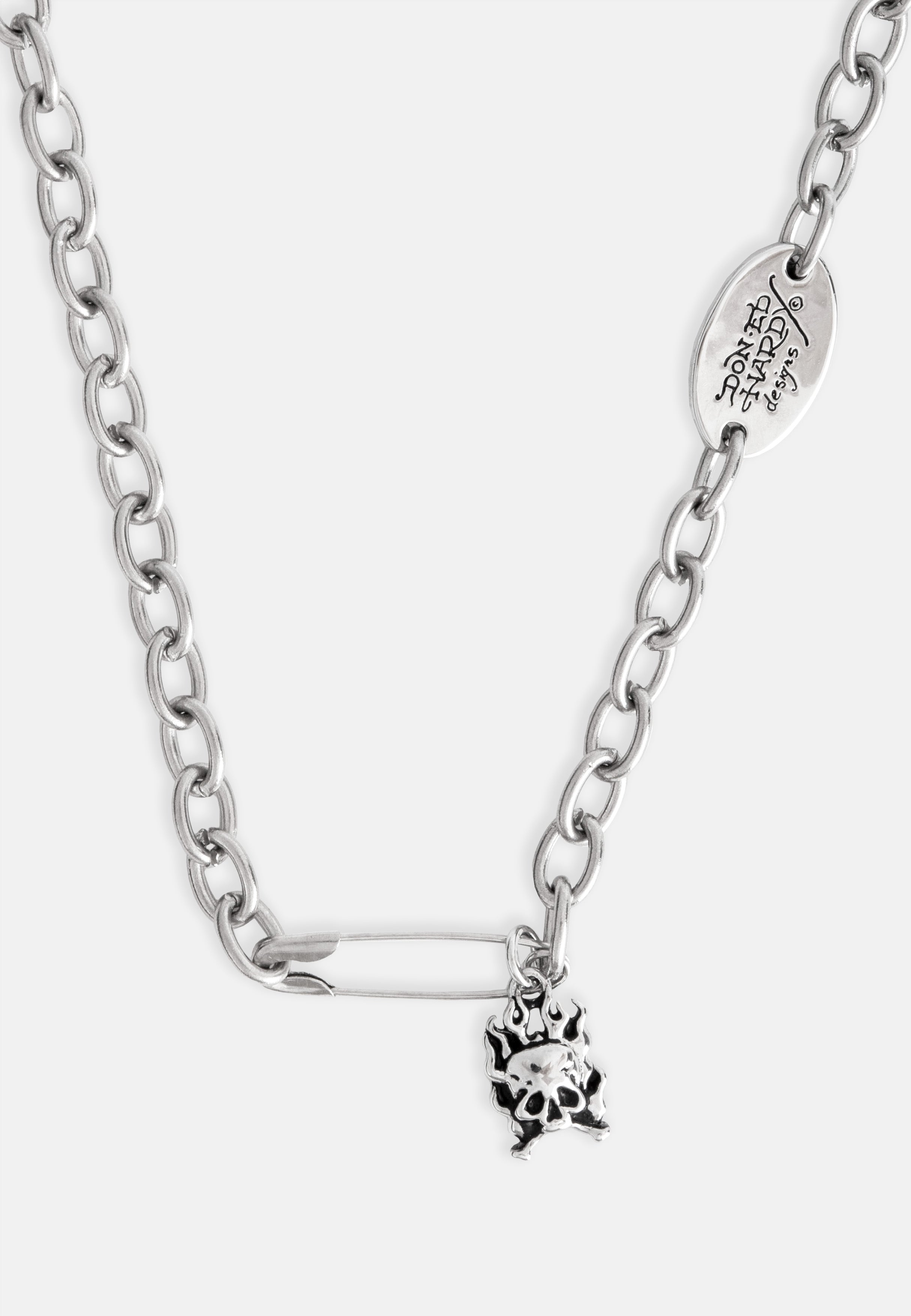 Ed Hardy Flaming Skull Multilink Necklace - Silver