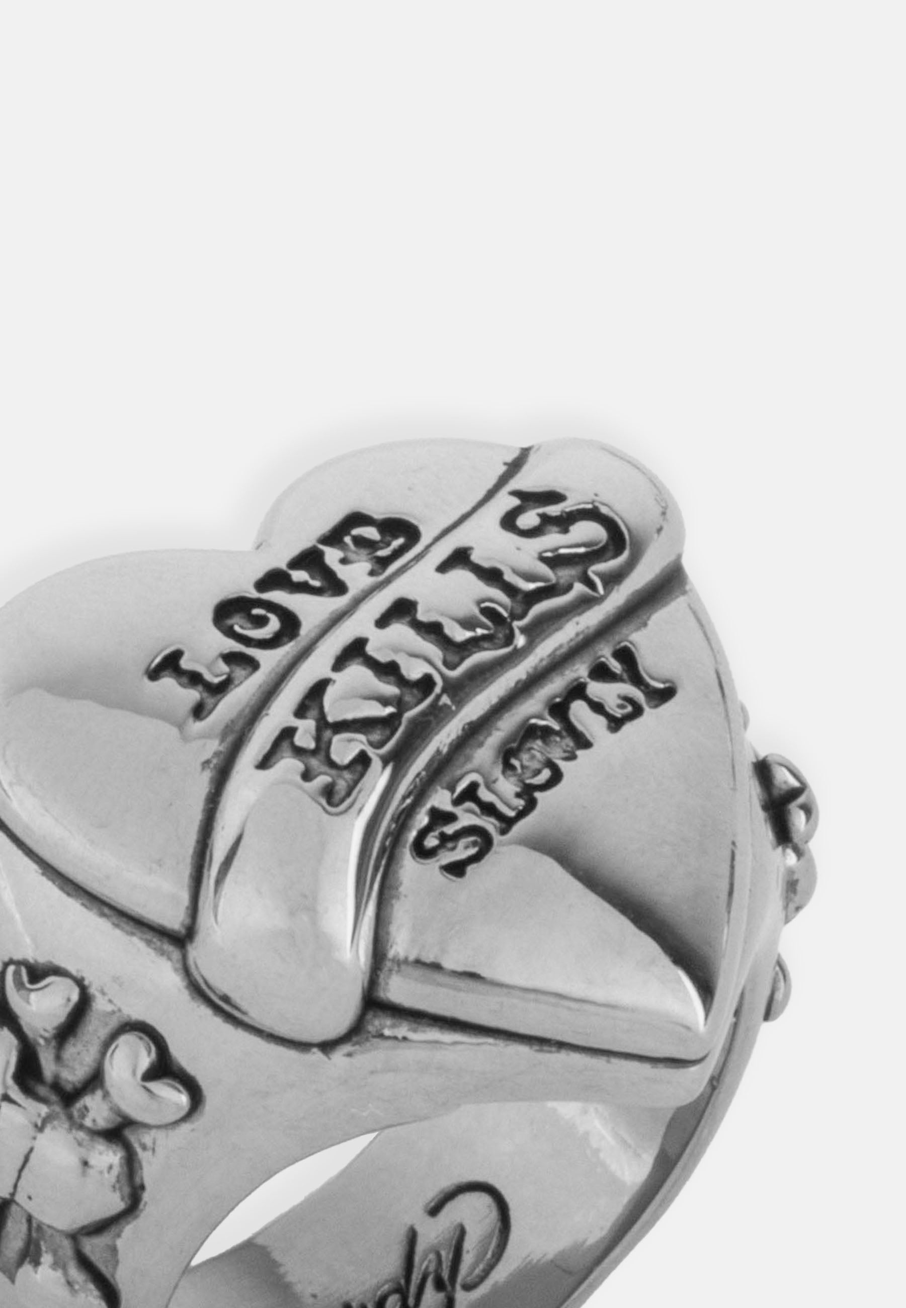Ed Hardy Love Kills Slowly Heart Signet Ring - Silver