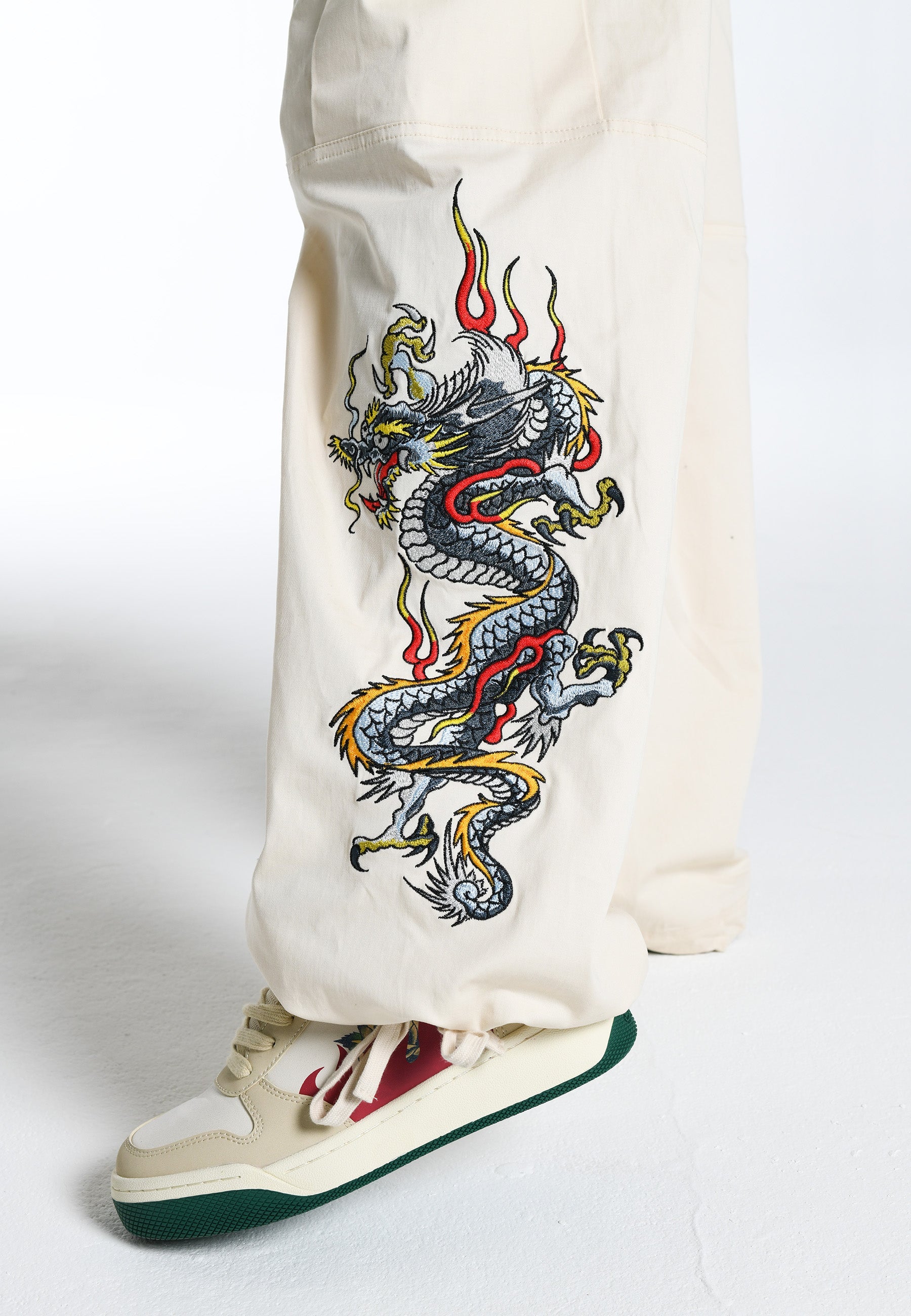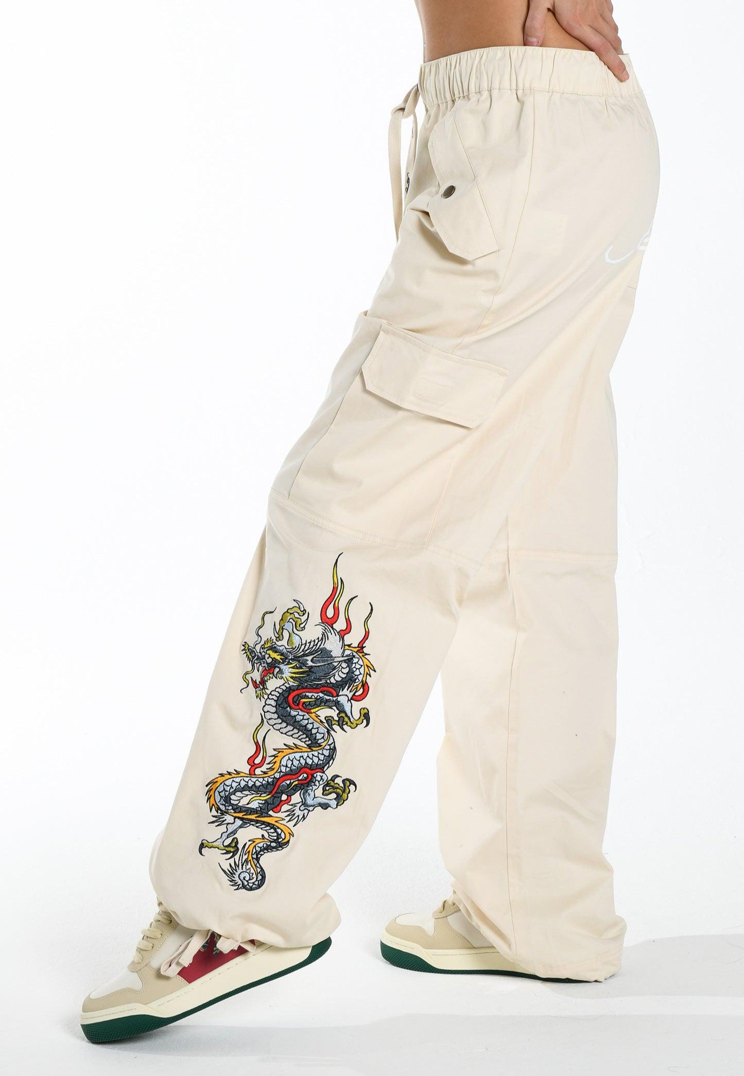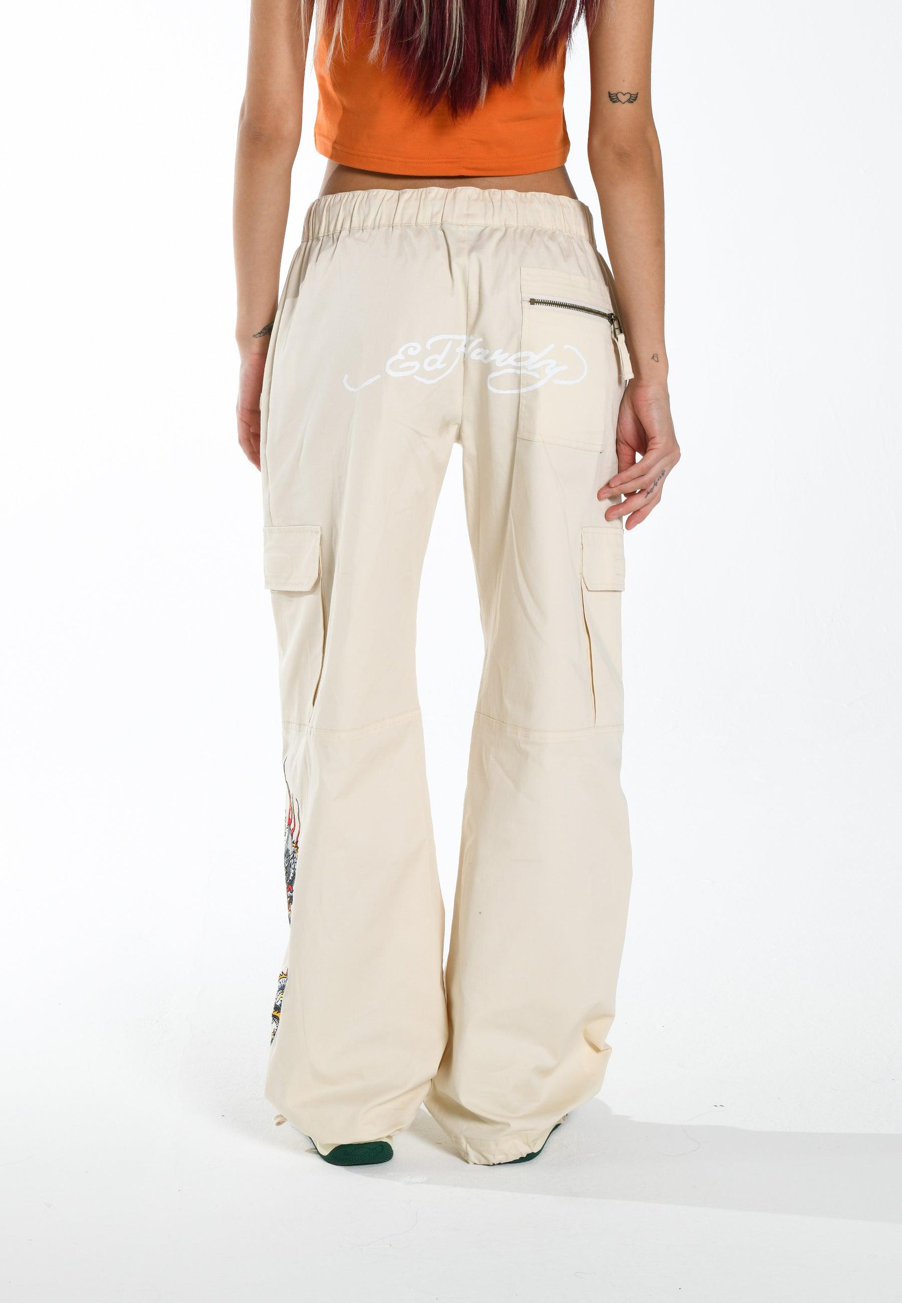 Dame Flaming Dragon Cargo Pants Bukser - Ecru