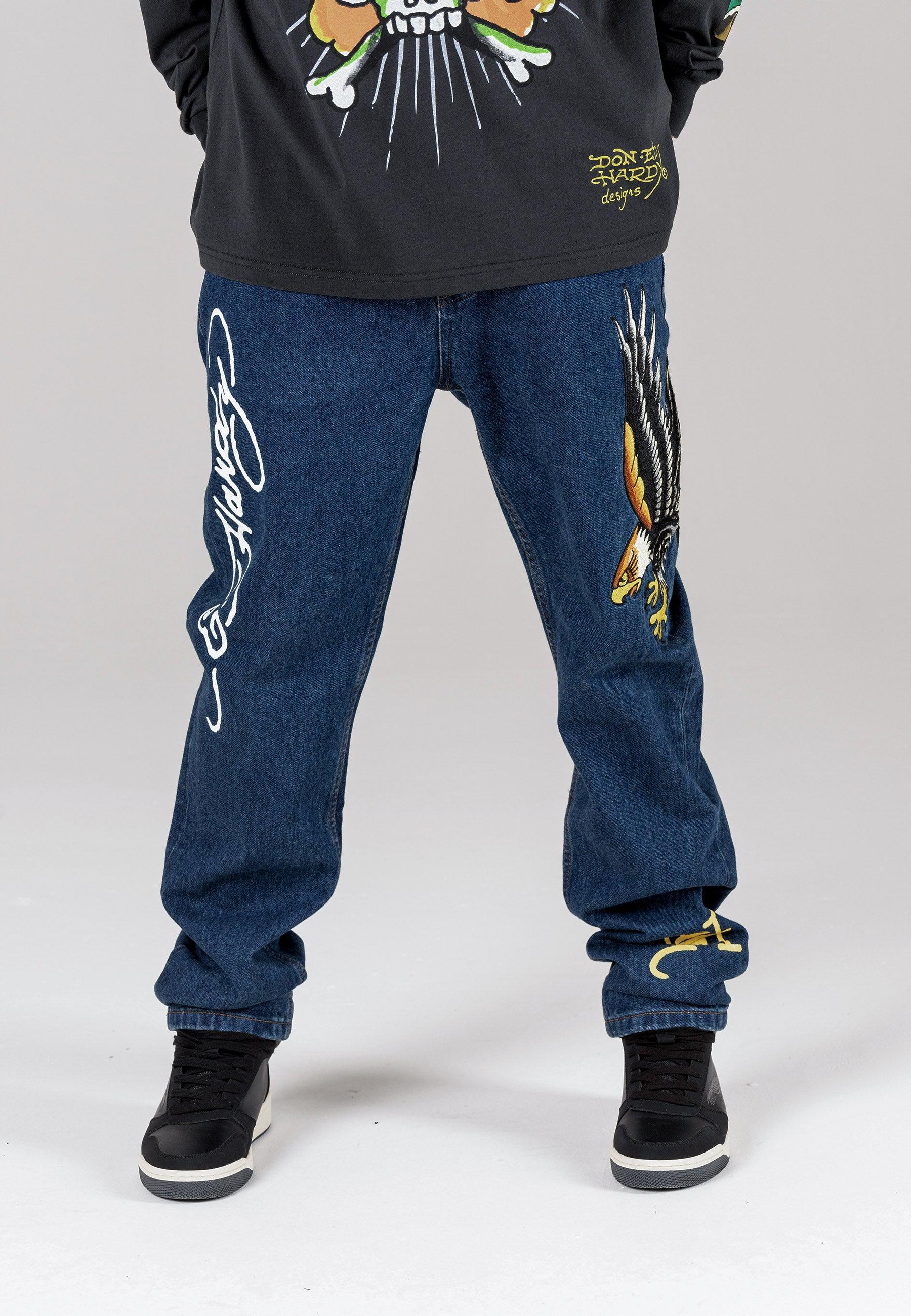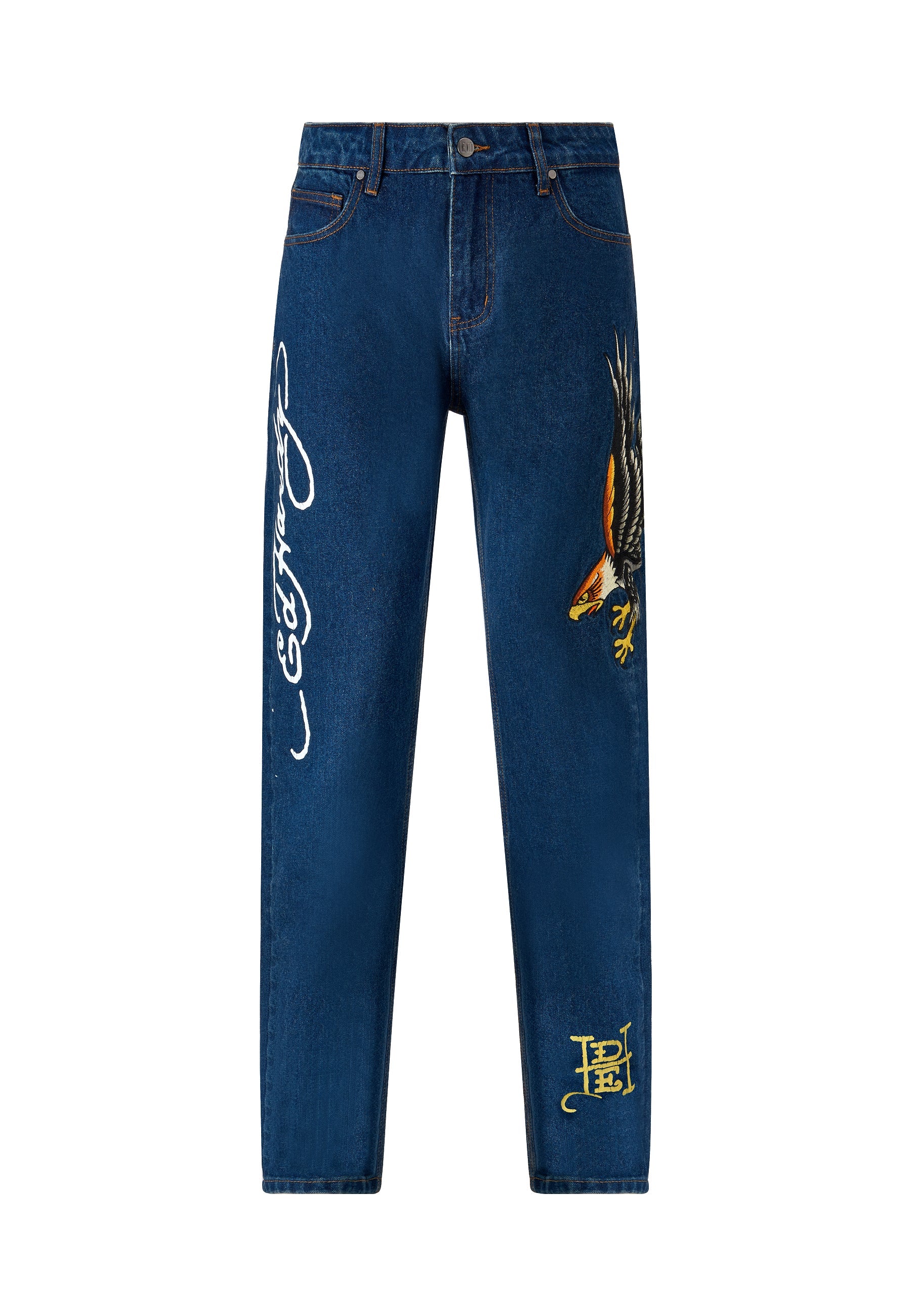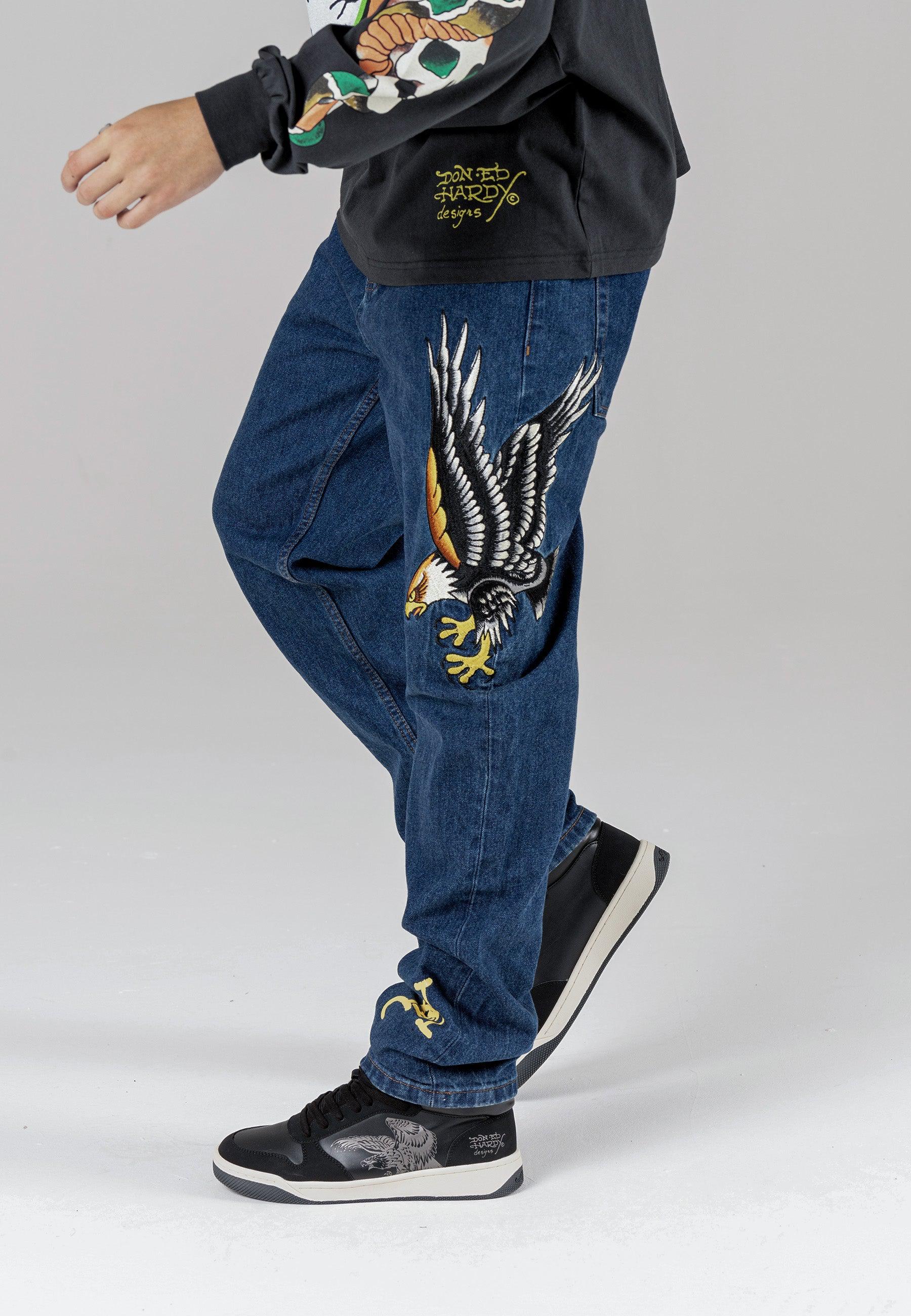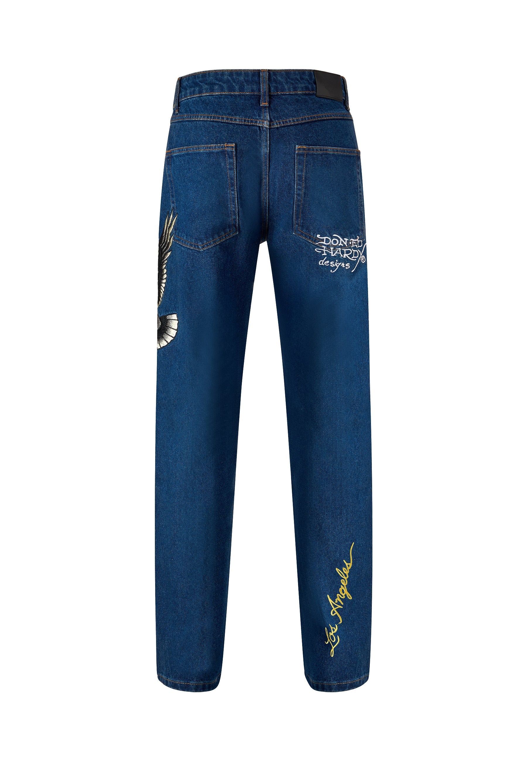 Herre Golden-Eagle Tattoo Grafiske Denim Bukser Jeans - Indigo