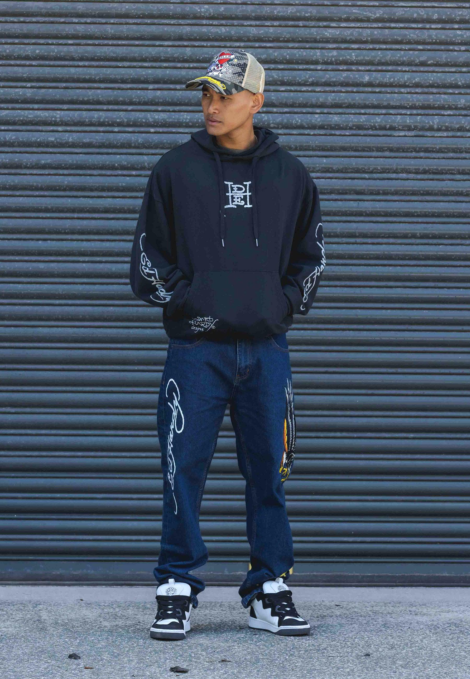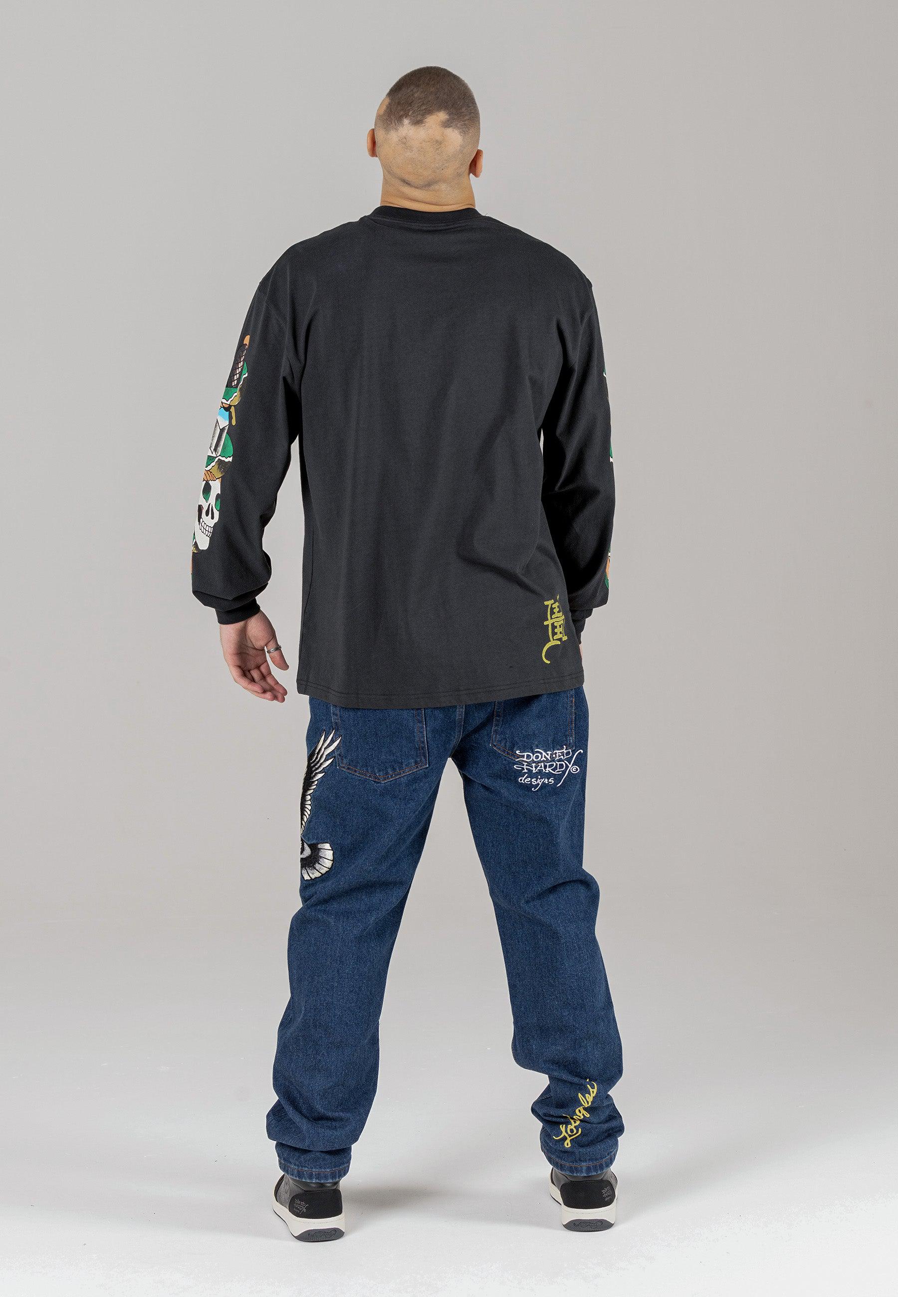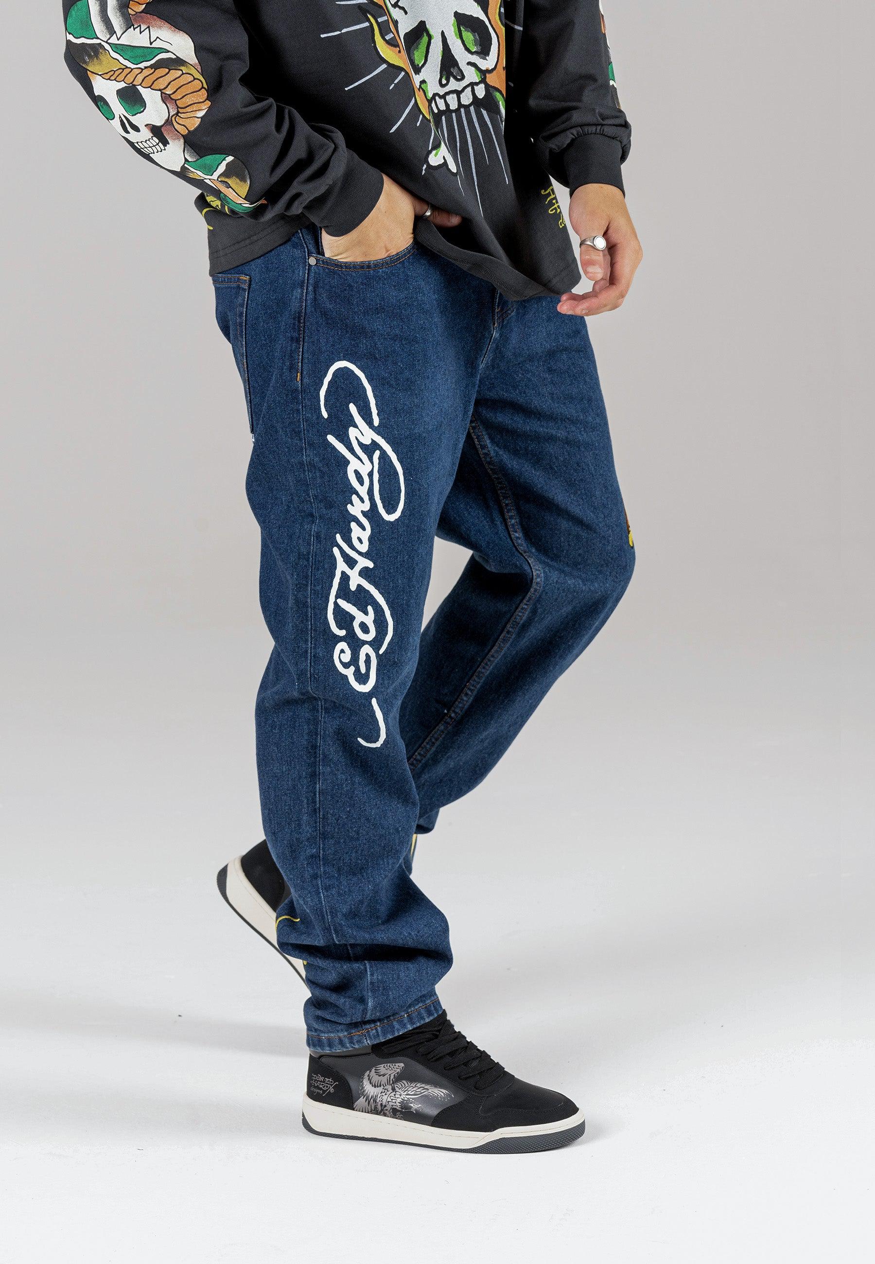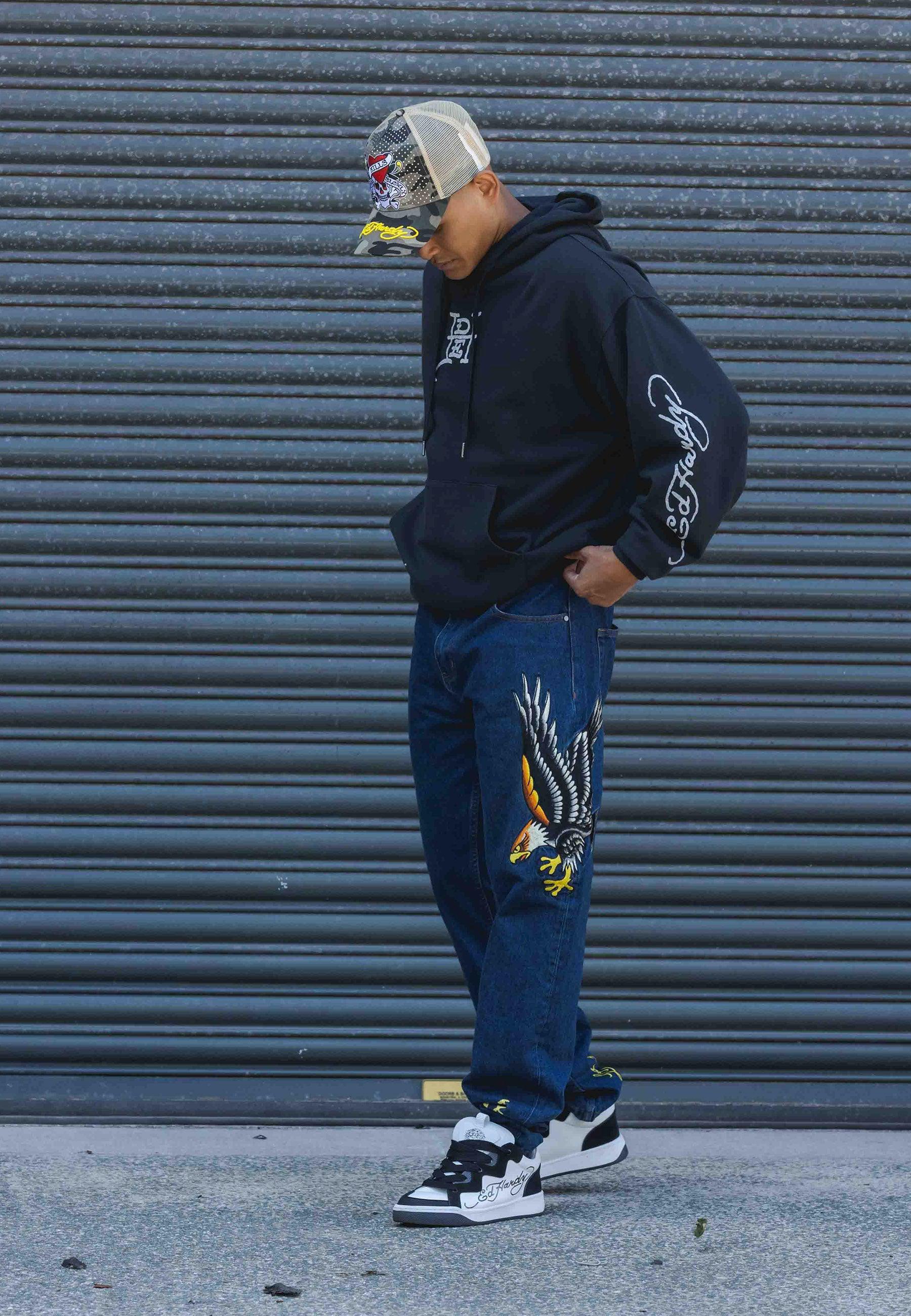 Herre Golden-Eagle Tattoo Grafiske Denim Bukser Jeans - Indigo