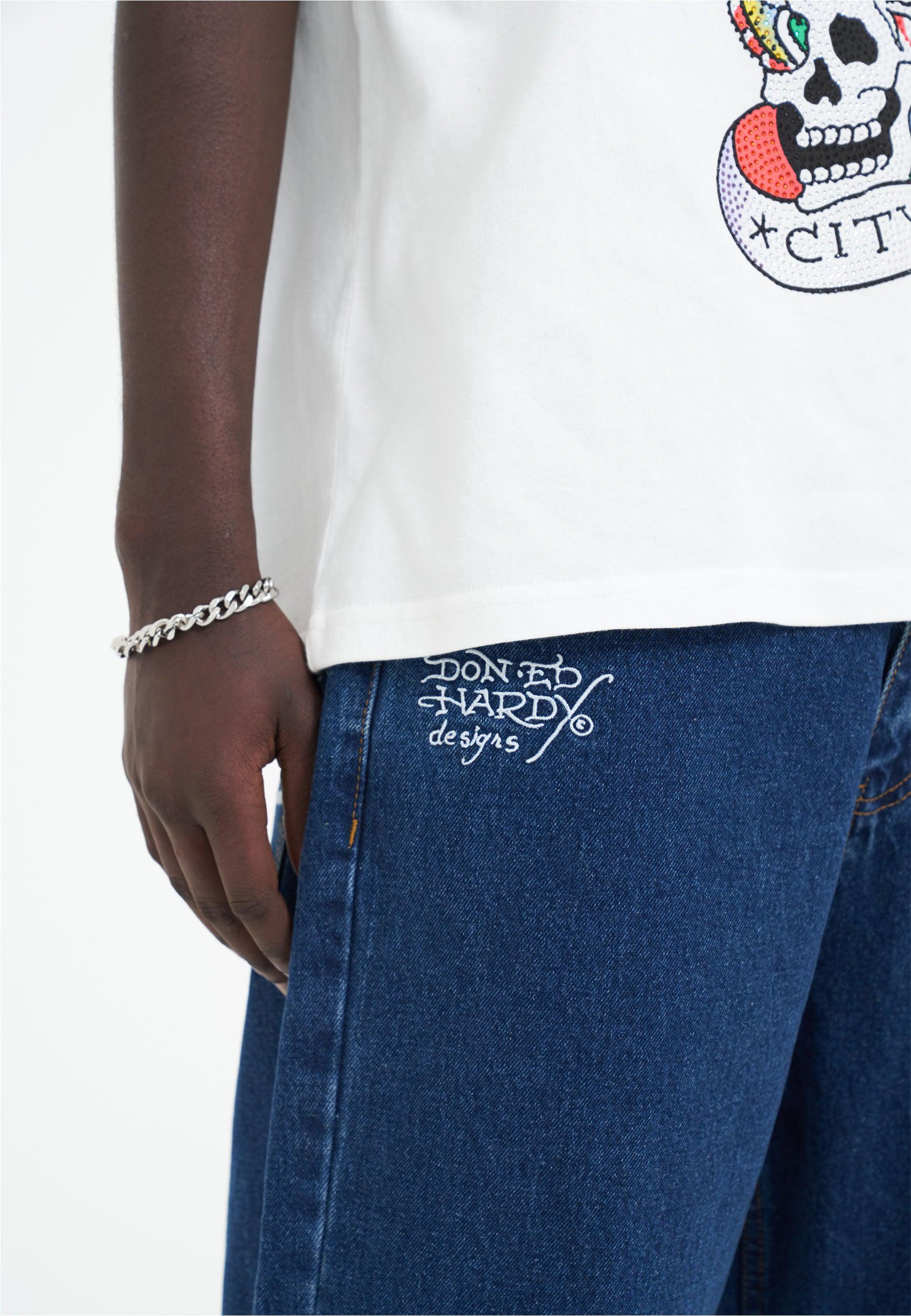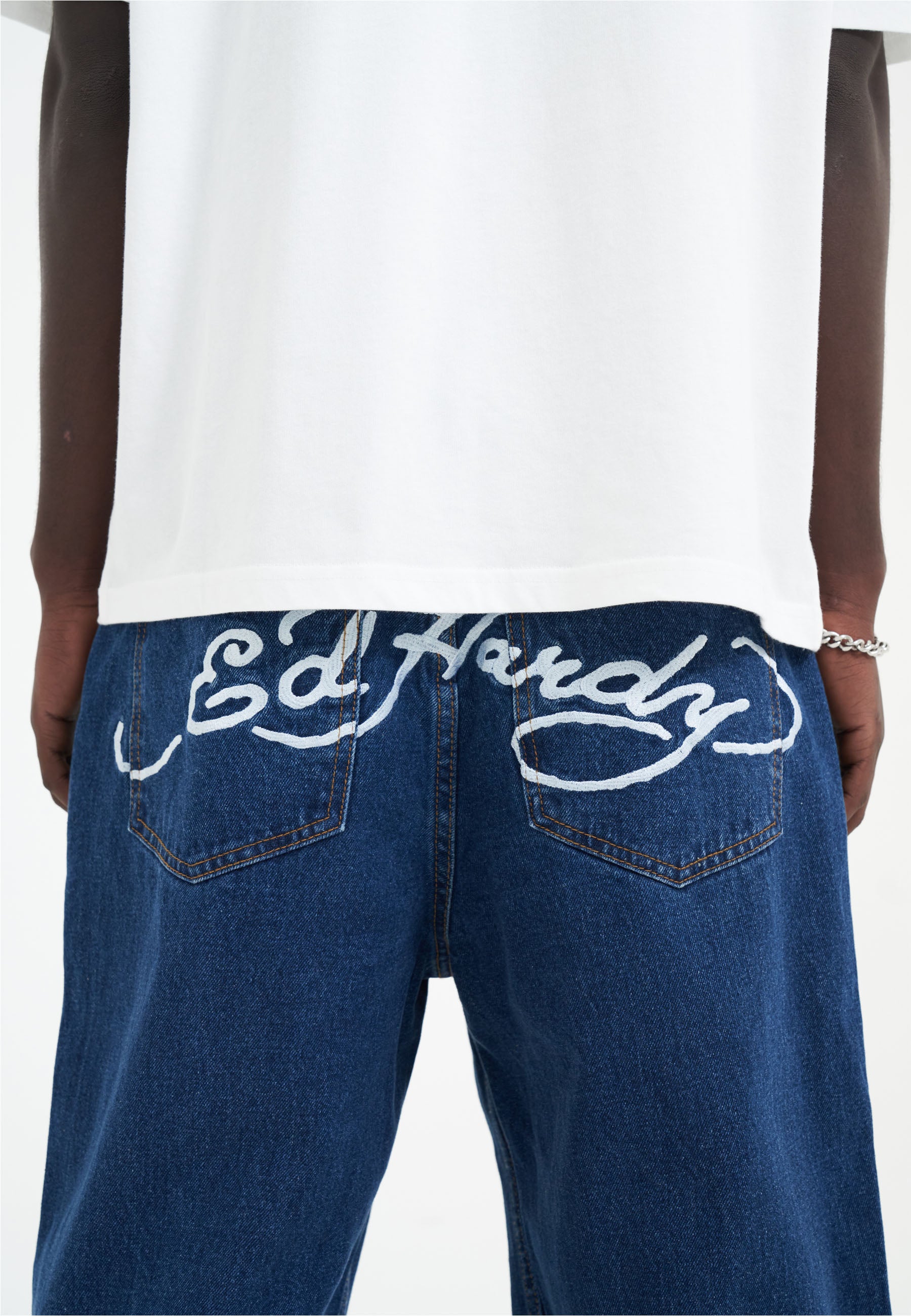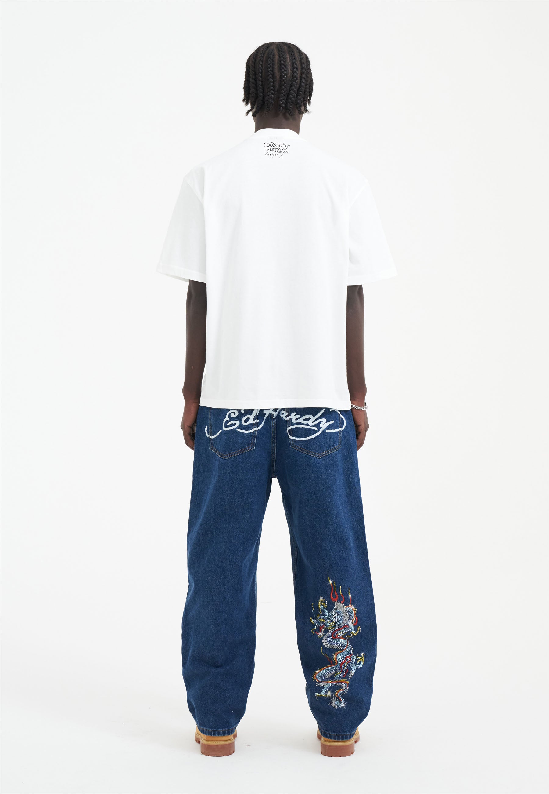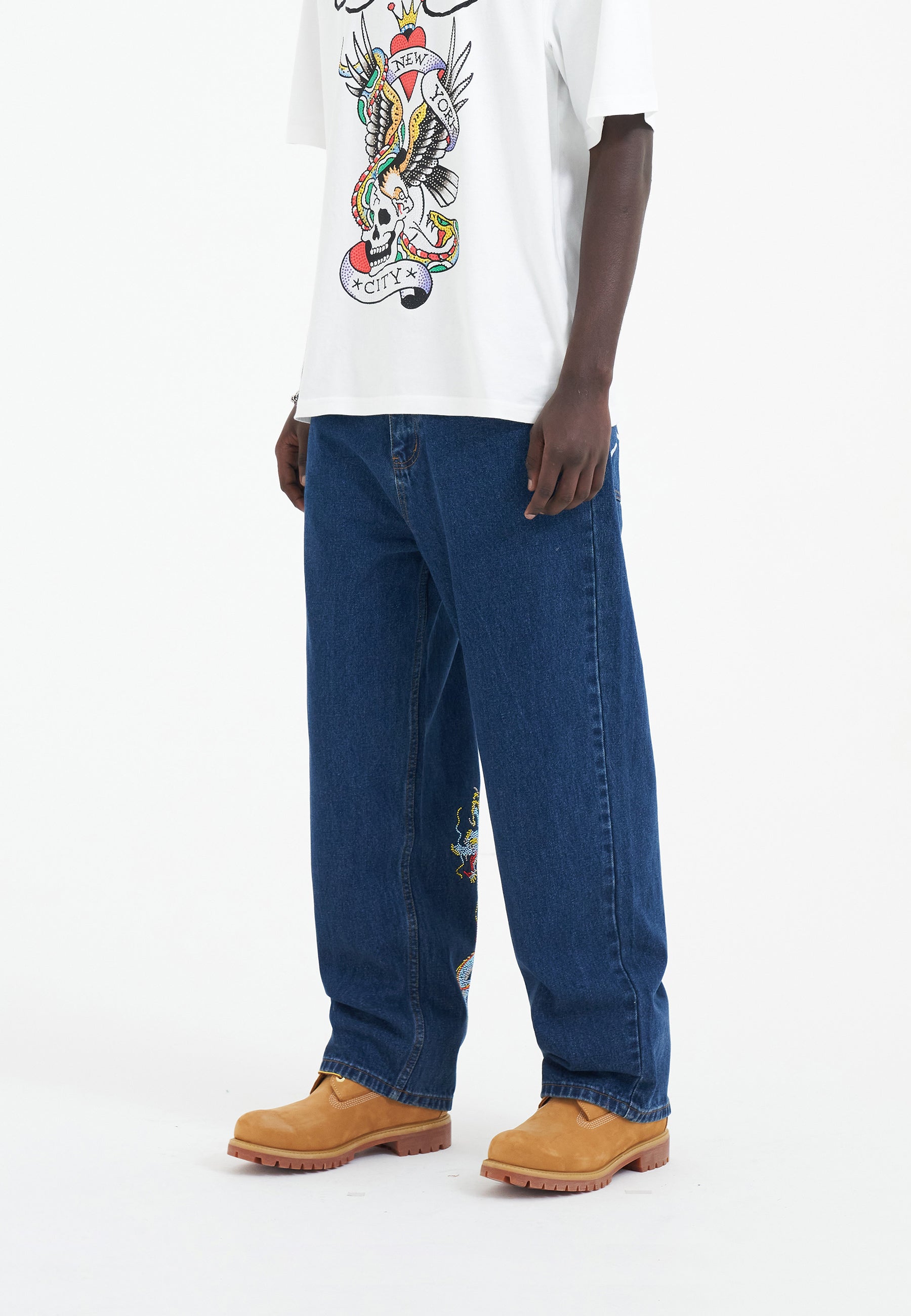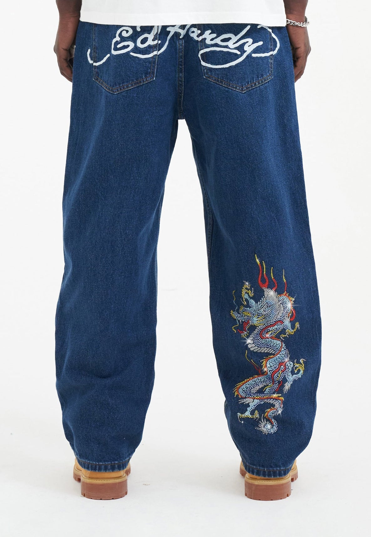 Herre Battle-Dragon Diamante Denim Bukser Jeans - Indigo