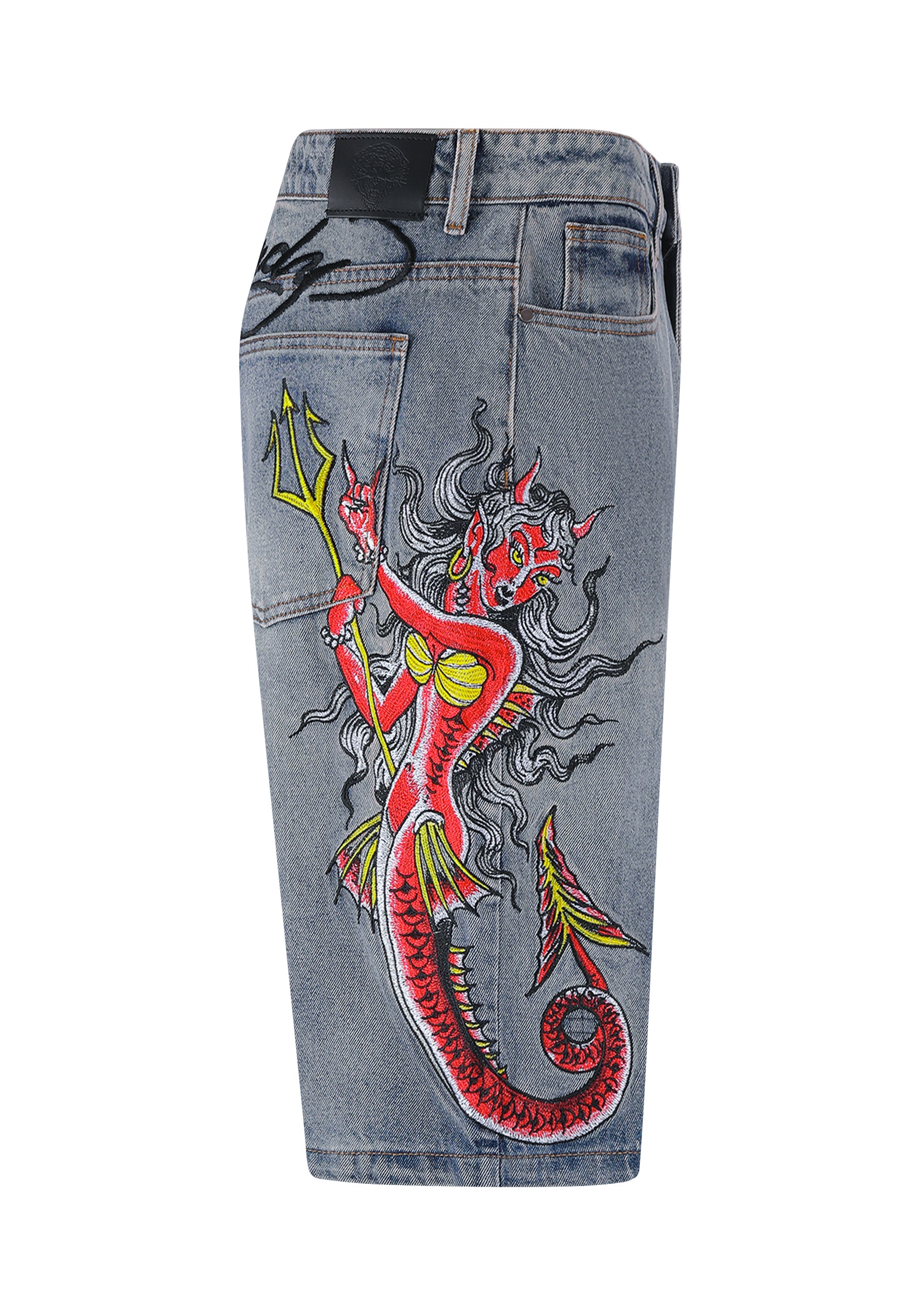 Herre Devil Mermaid Denim Jorts Shorts - Blå