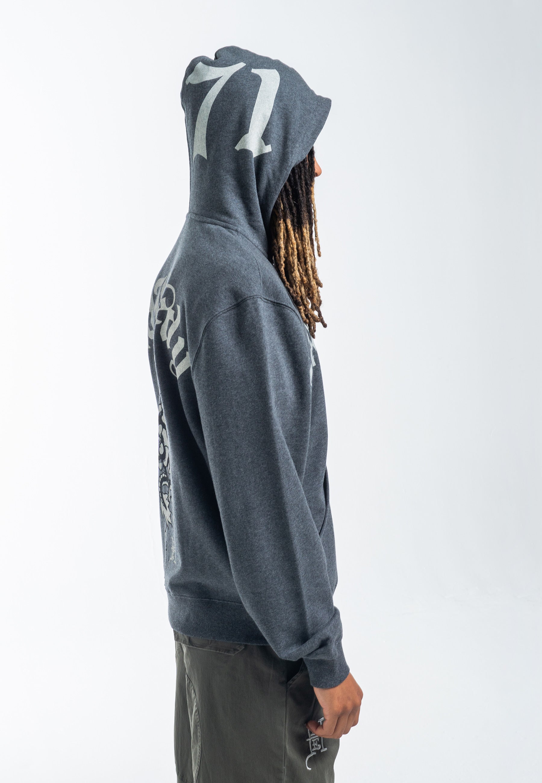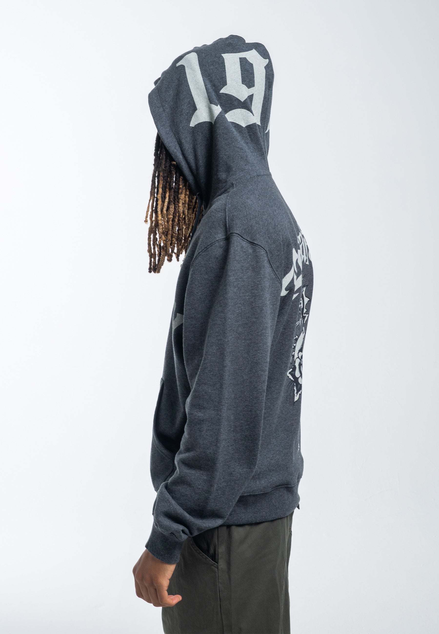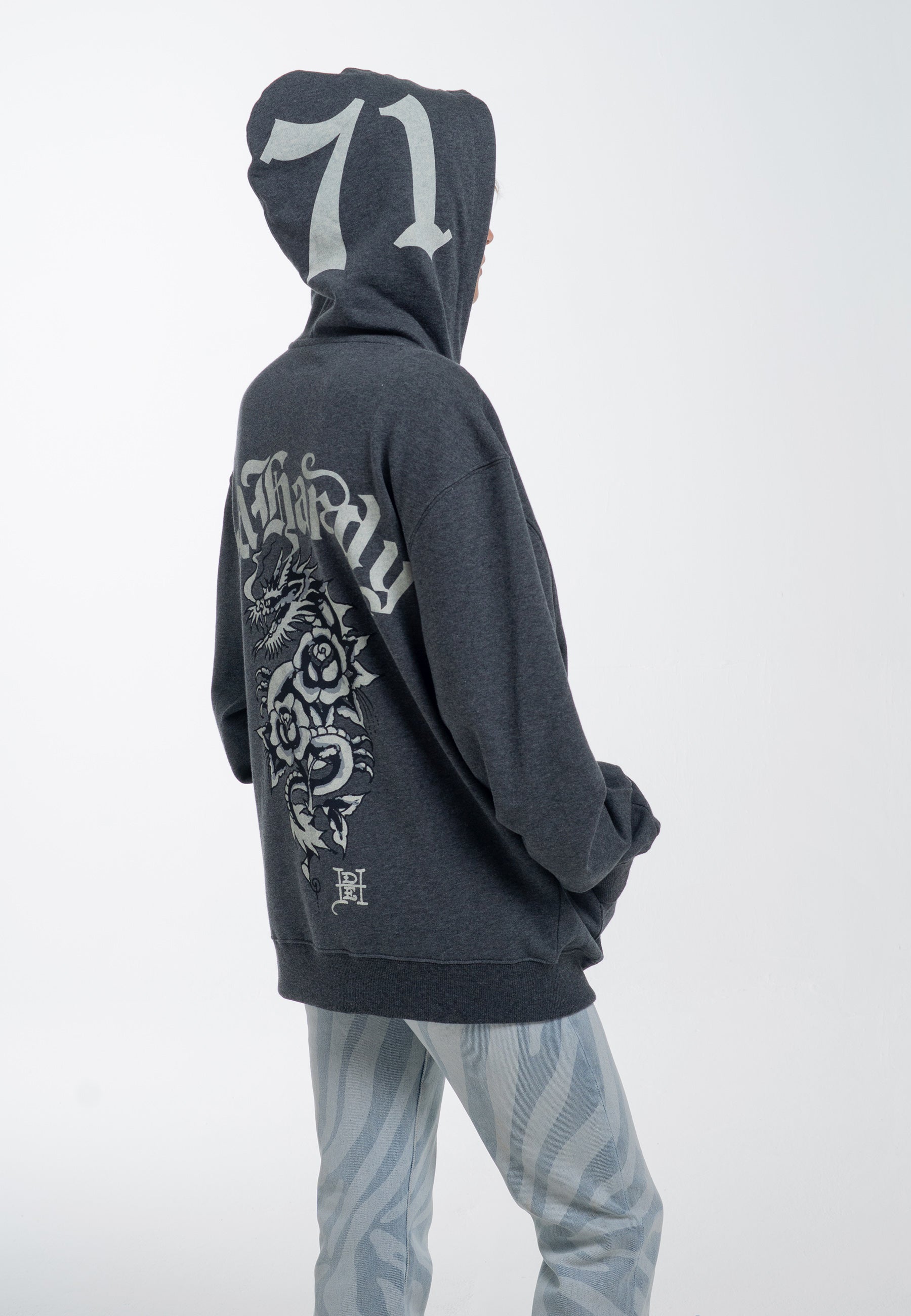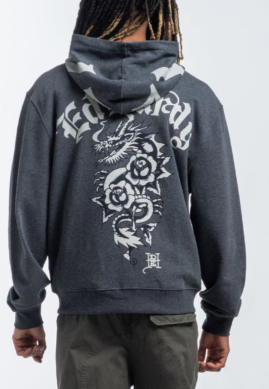 Herre Dragon Rose Zip Through Hoodie - Charcoal Merl