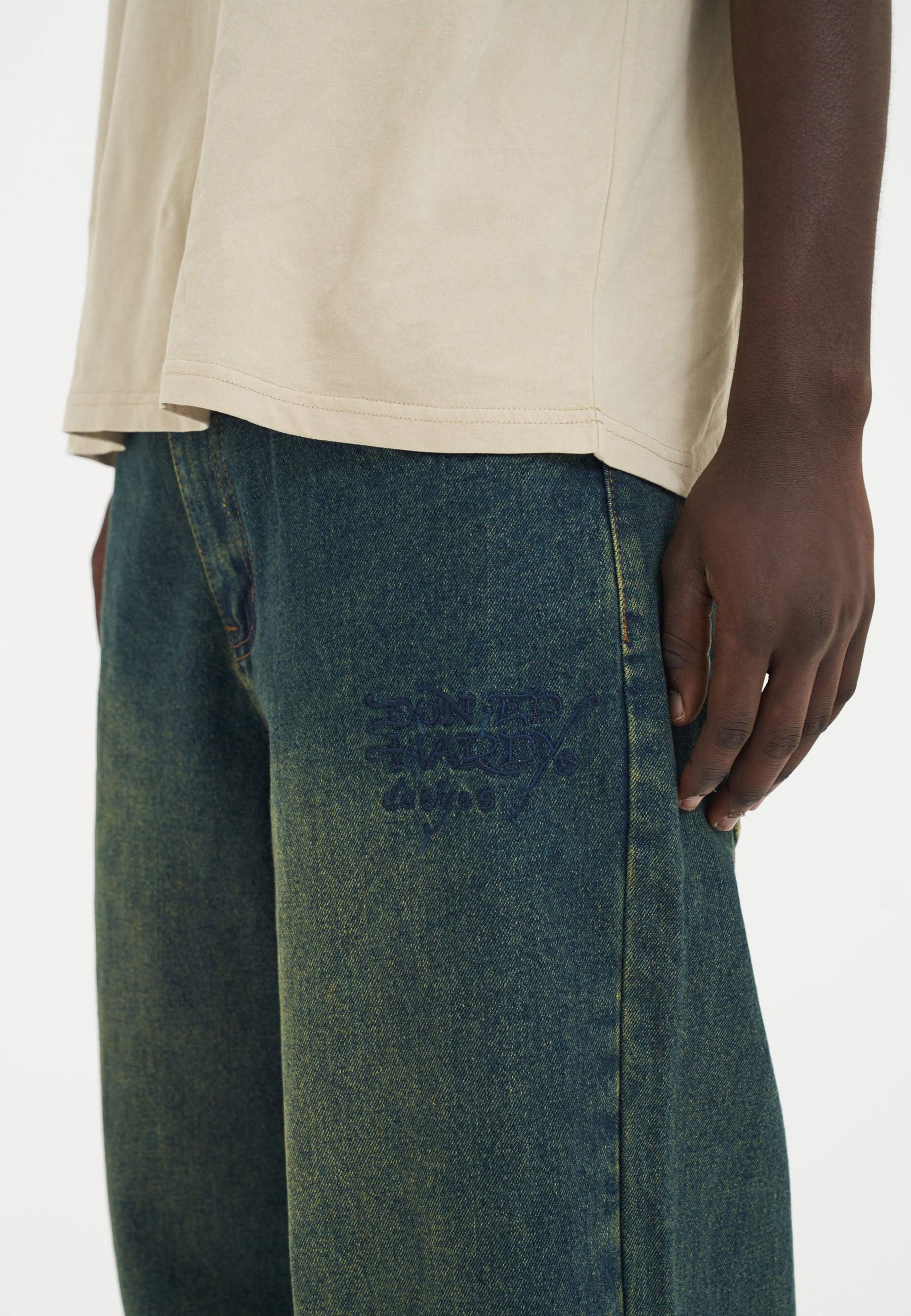 Herre Fireball Dragon Dirty Wash Denim Bukser Jeans - Grøn