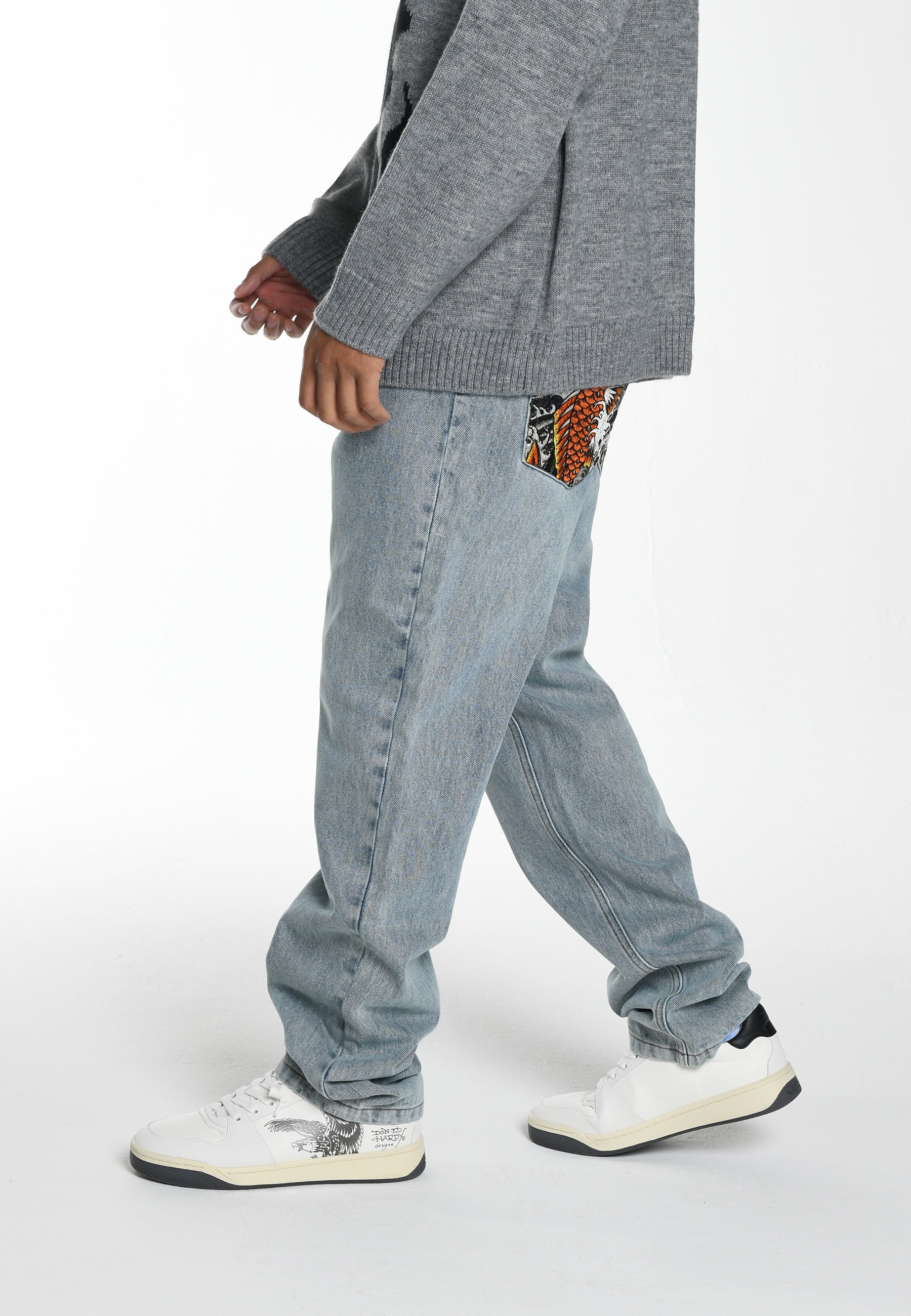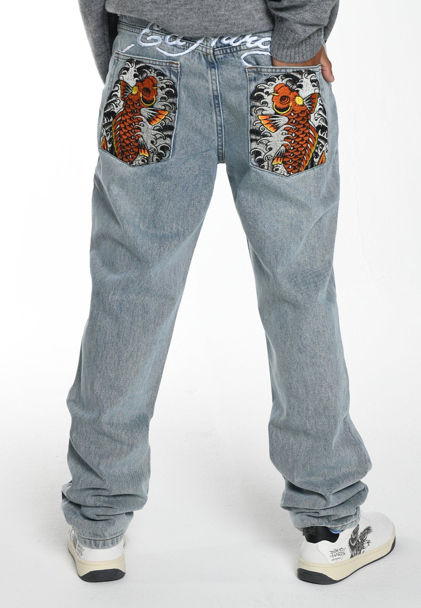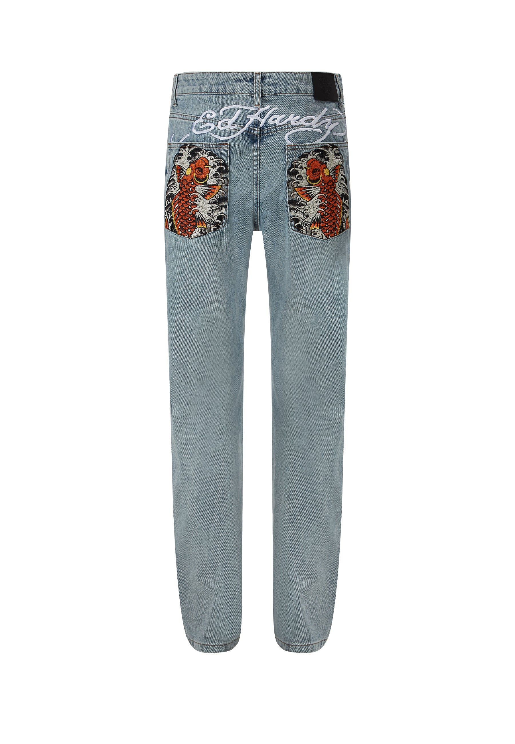 Inspireret af vores vintage-mærkearv hylder Koi Merge Tattoo Jeans Ed Hardys fortid, omtænkt med indviklet fuldfarvebroderi for at sætte en ny æra ind i Ed Hardy mode.