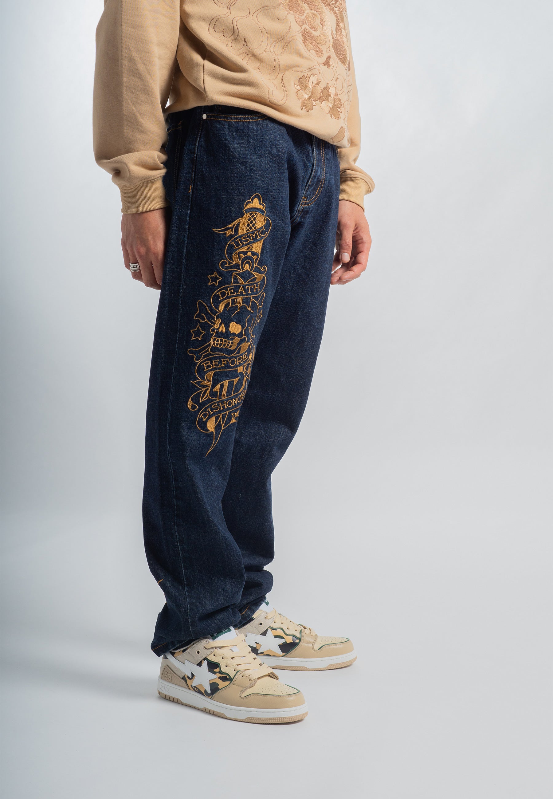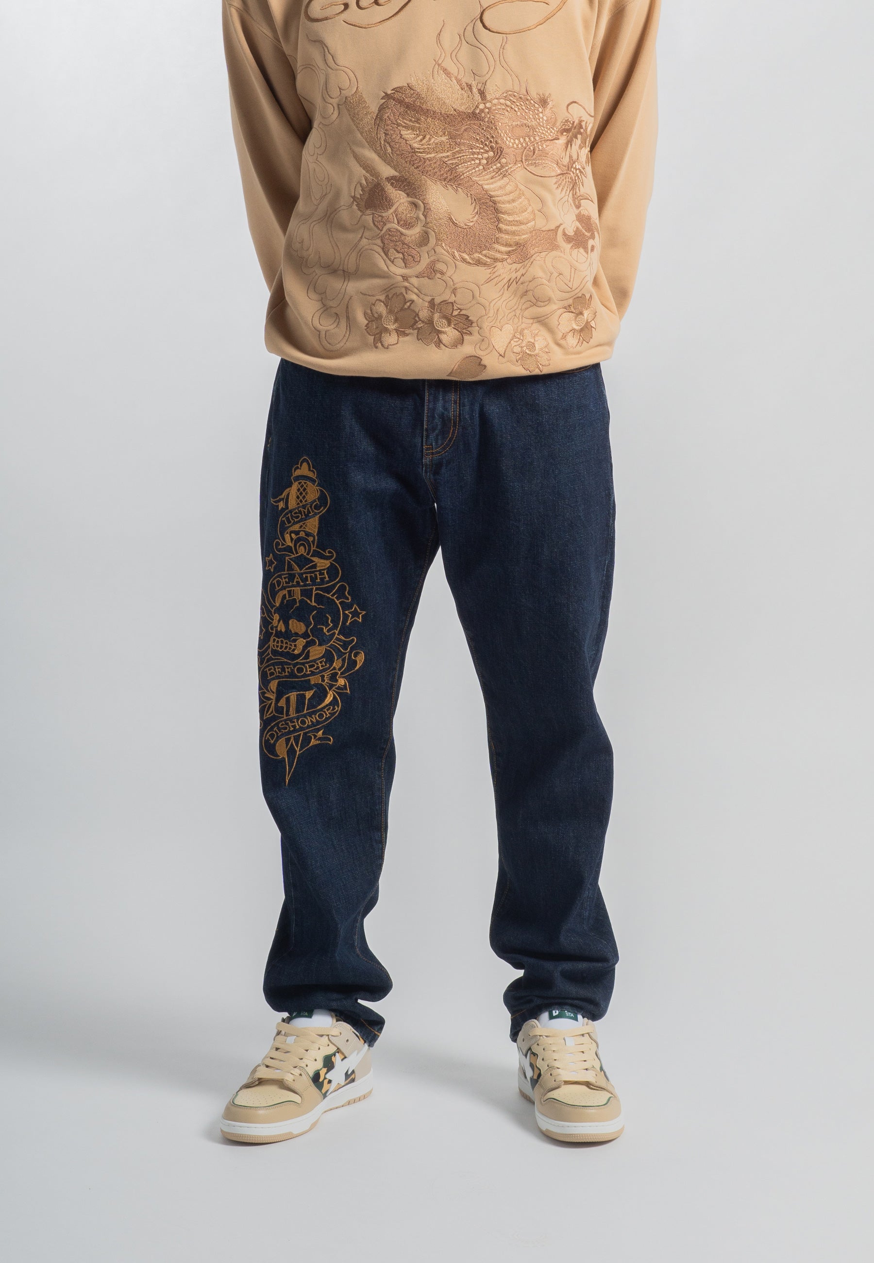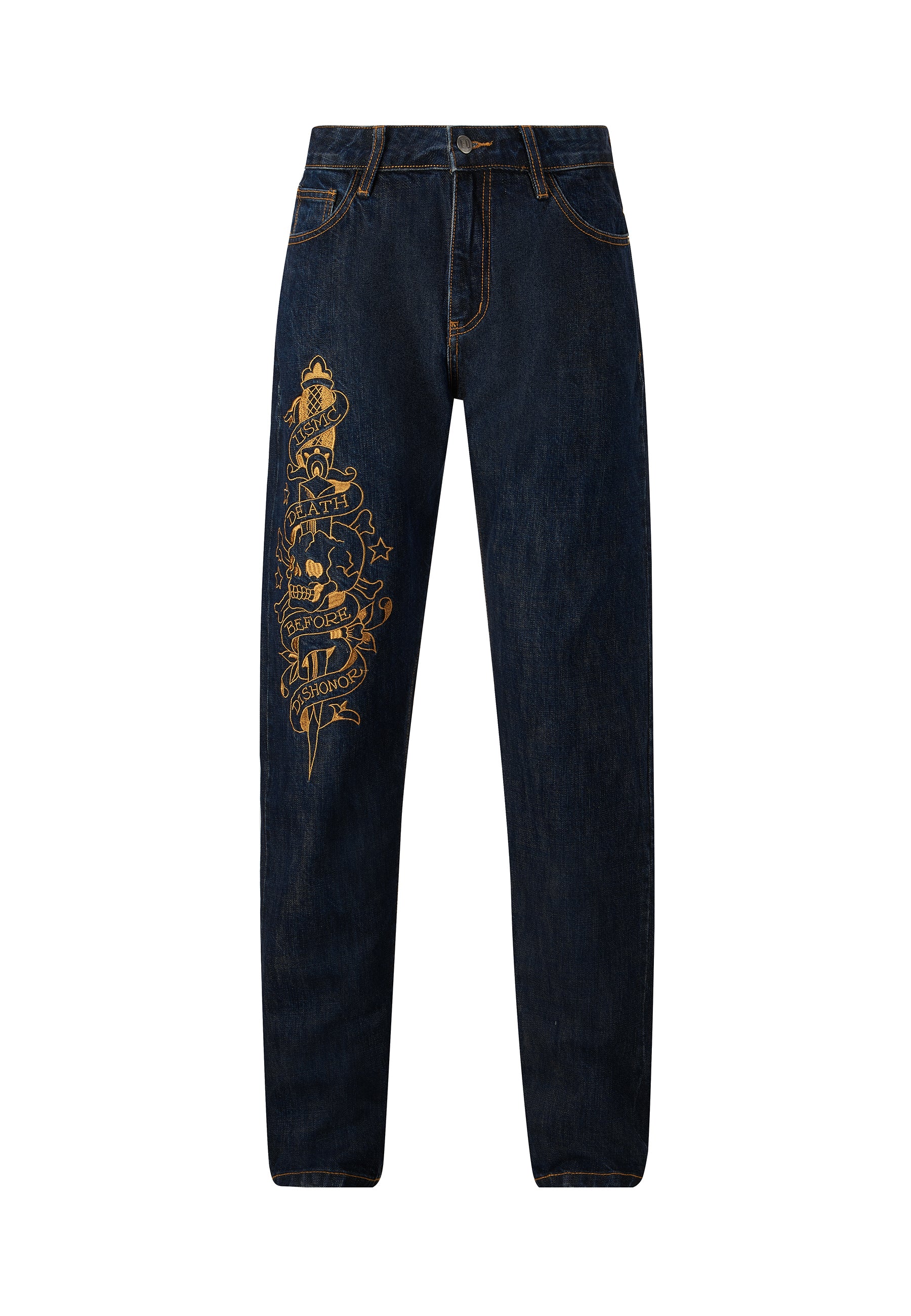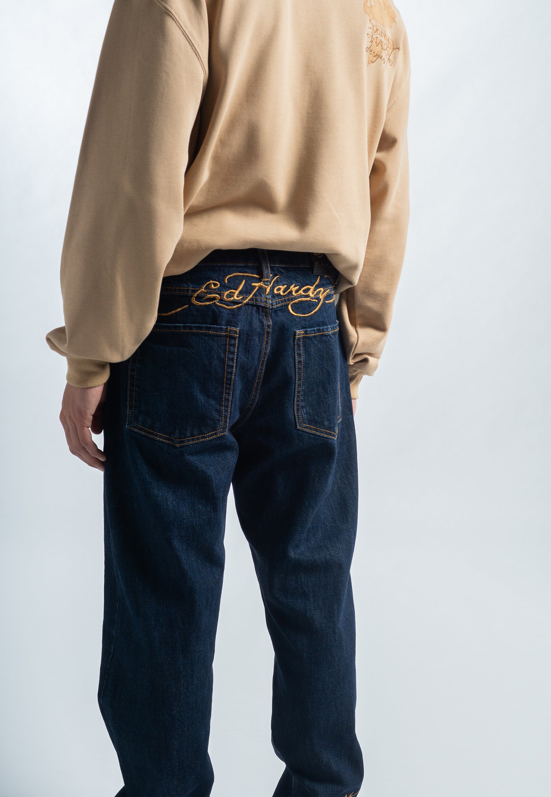 Revitaliser din denimkollektion med Men's NYC-Skull Tattoo Jeans fra vores A/W-kollektion. Udformet med vintage-inspireret tonalt broderi og førsteklasses selvedge denim, betragte disse som en hyldest til Ed Hardys varige kunstnerskab, når de bæres og styles af dig.