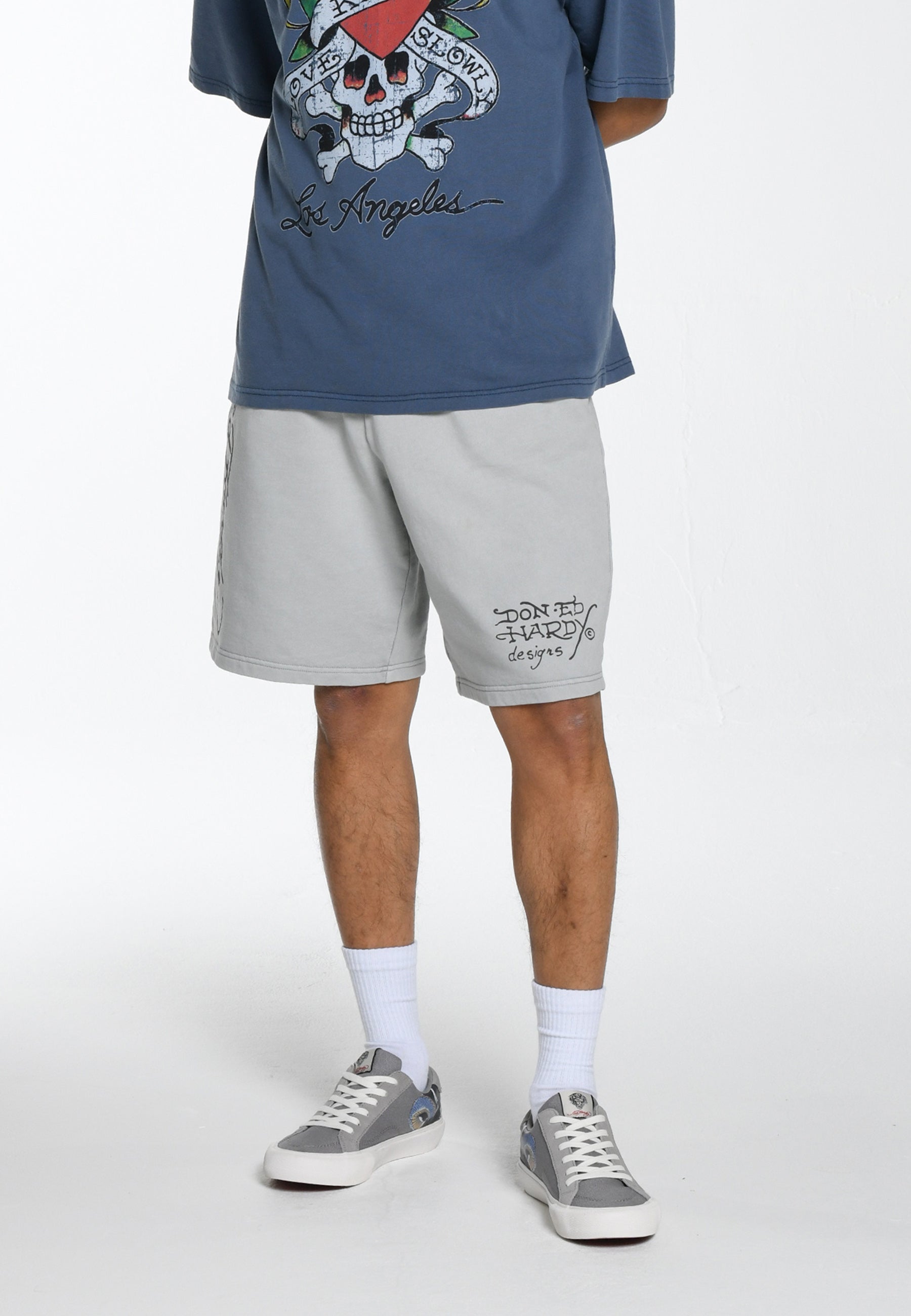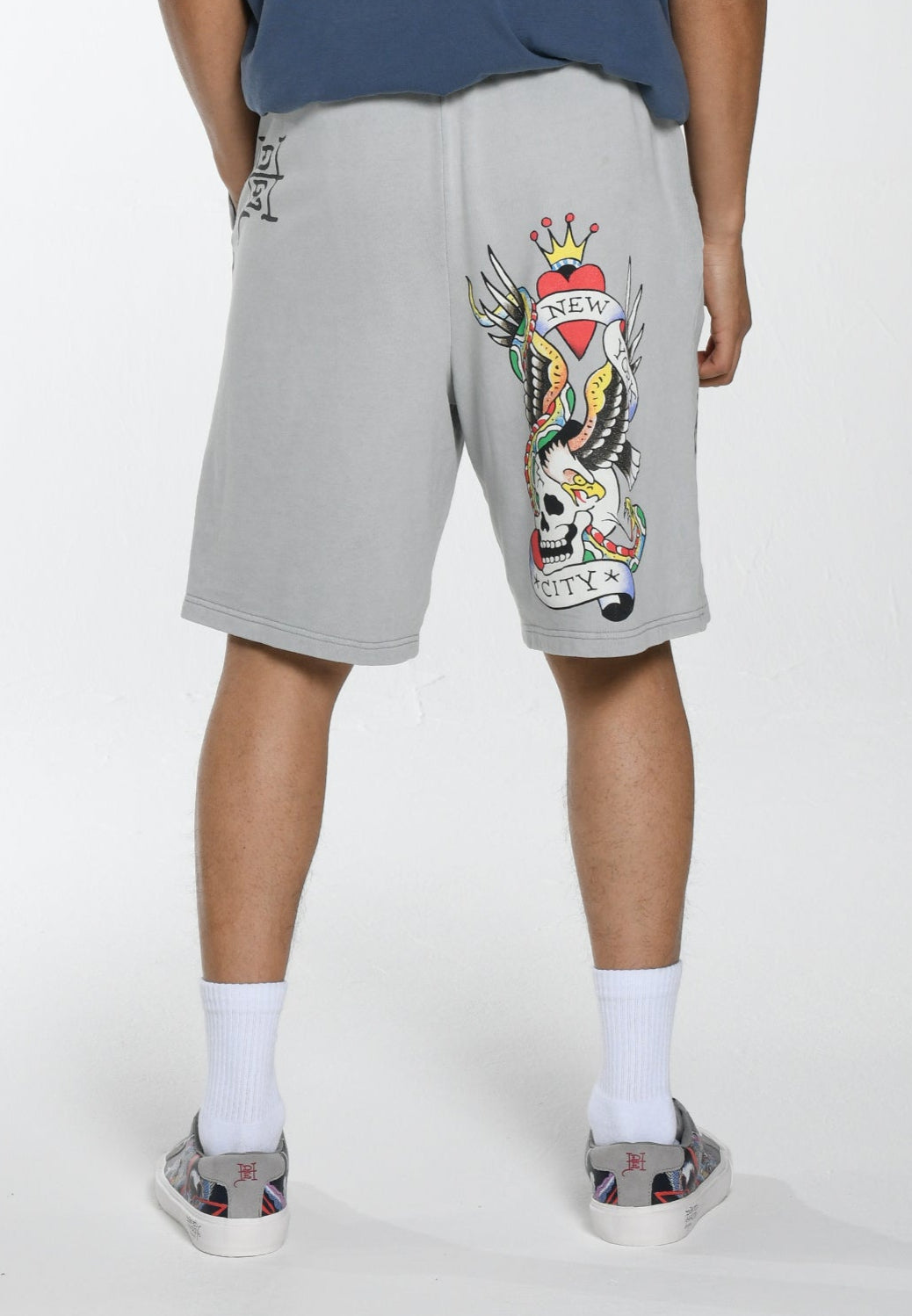 Herre Nyc Skull Sweat Shorts - Washed Grey