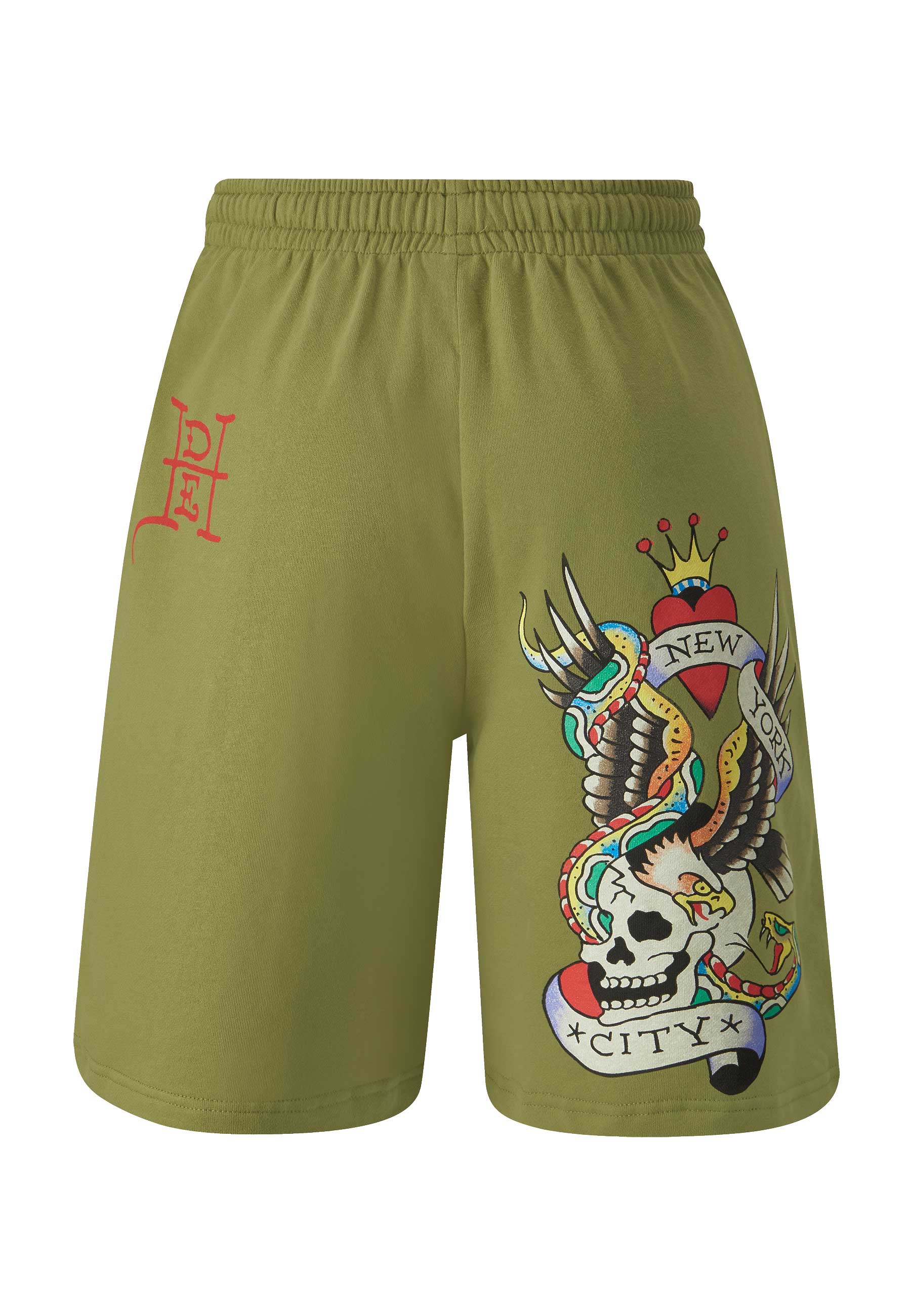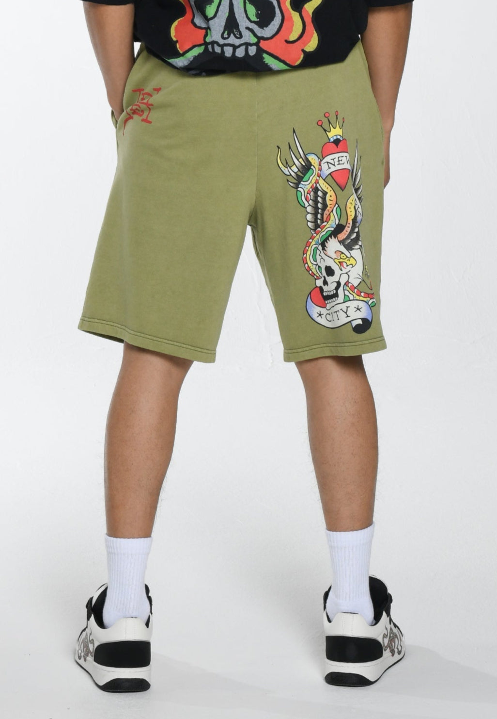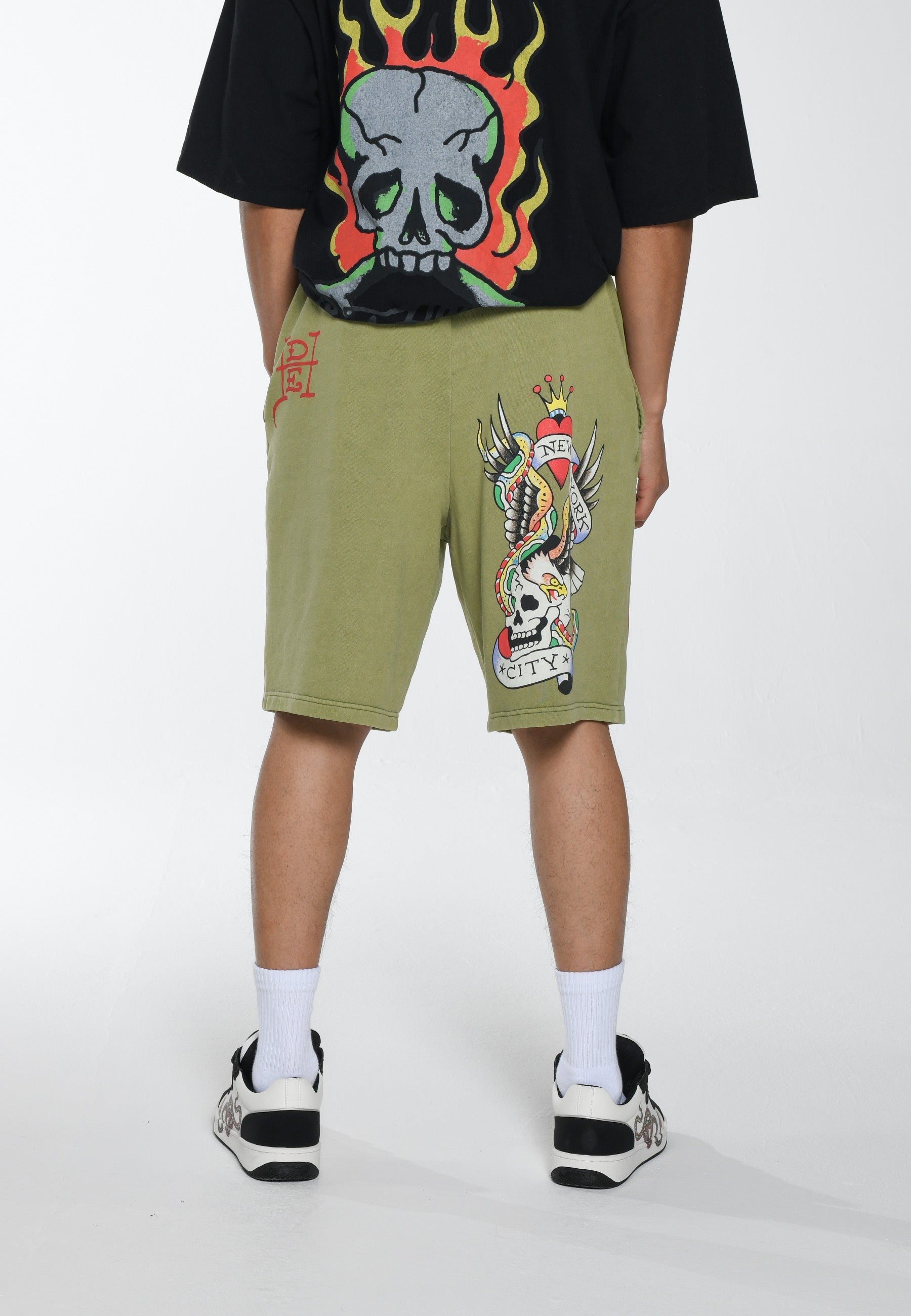 Herre Nyc Skull Sweat Shorts - Washed Green
