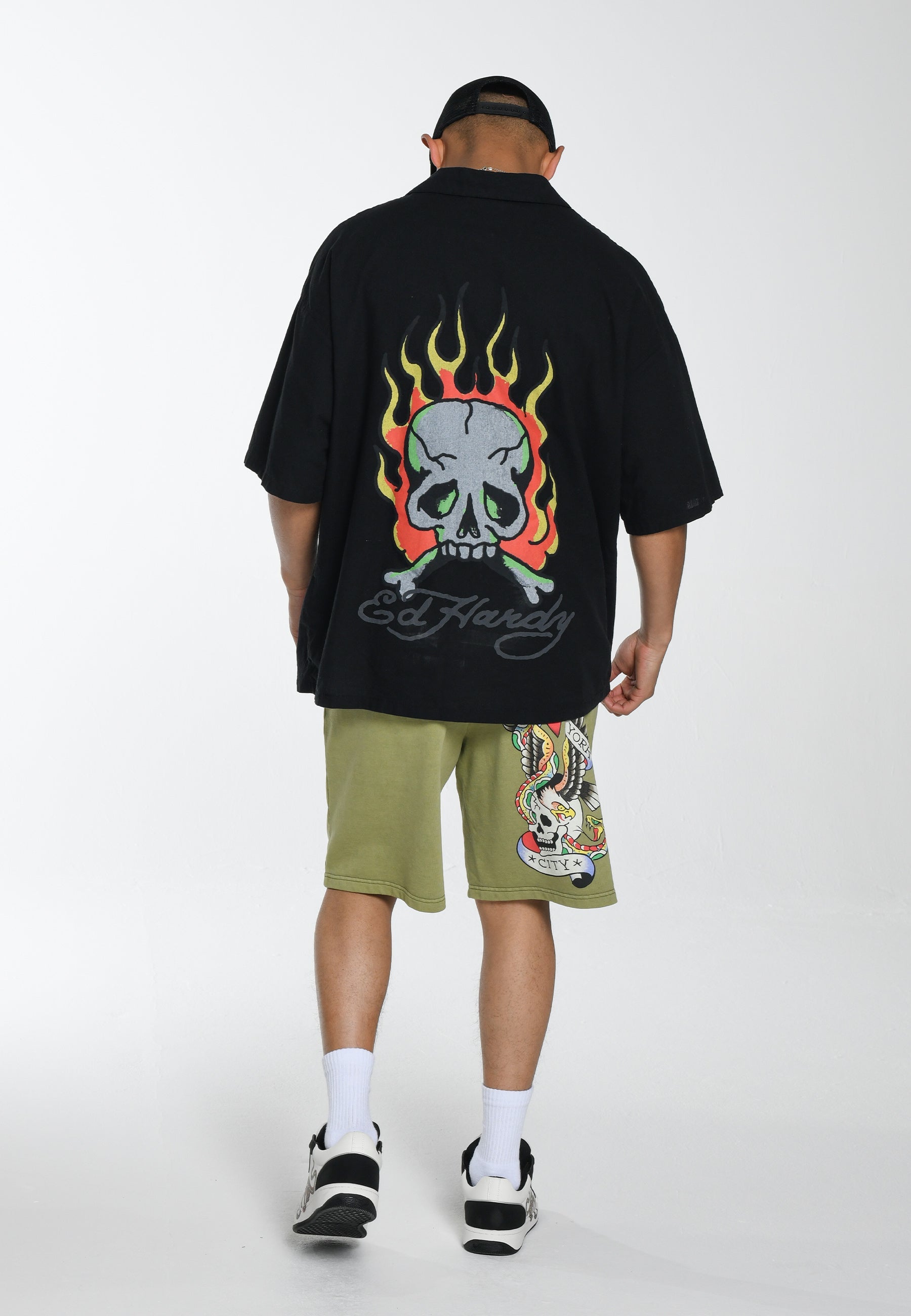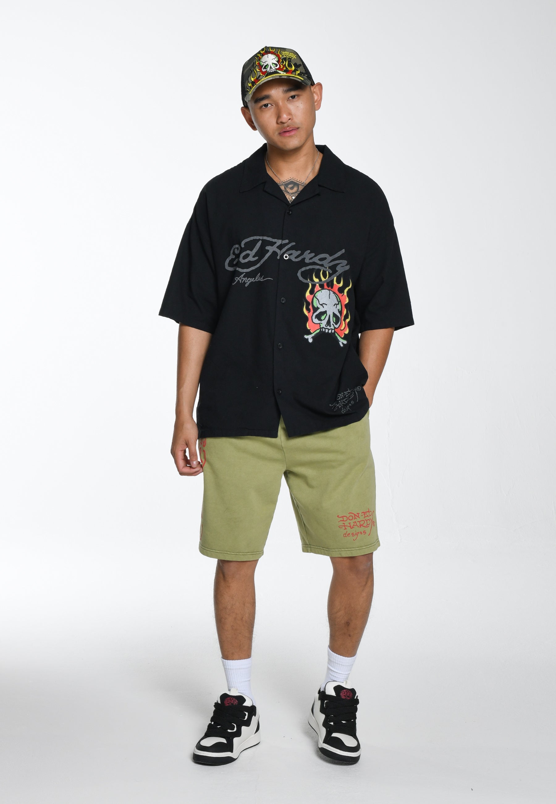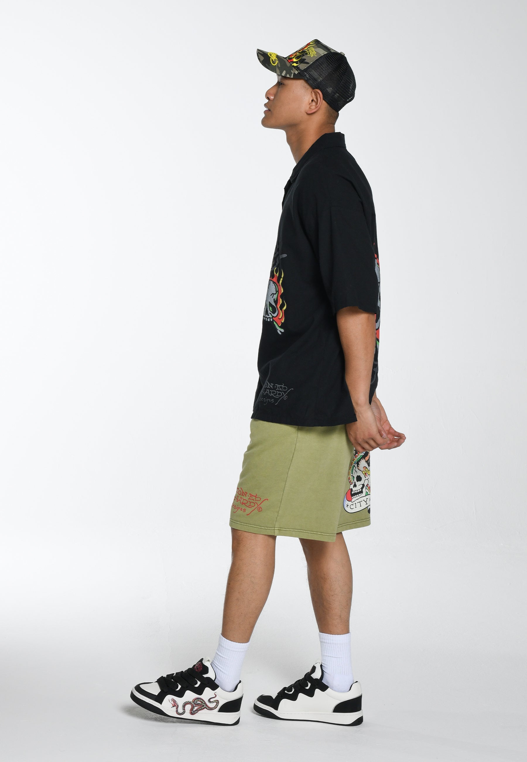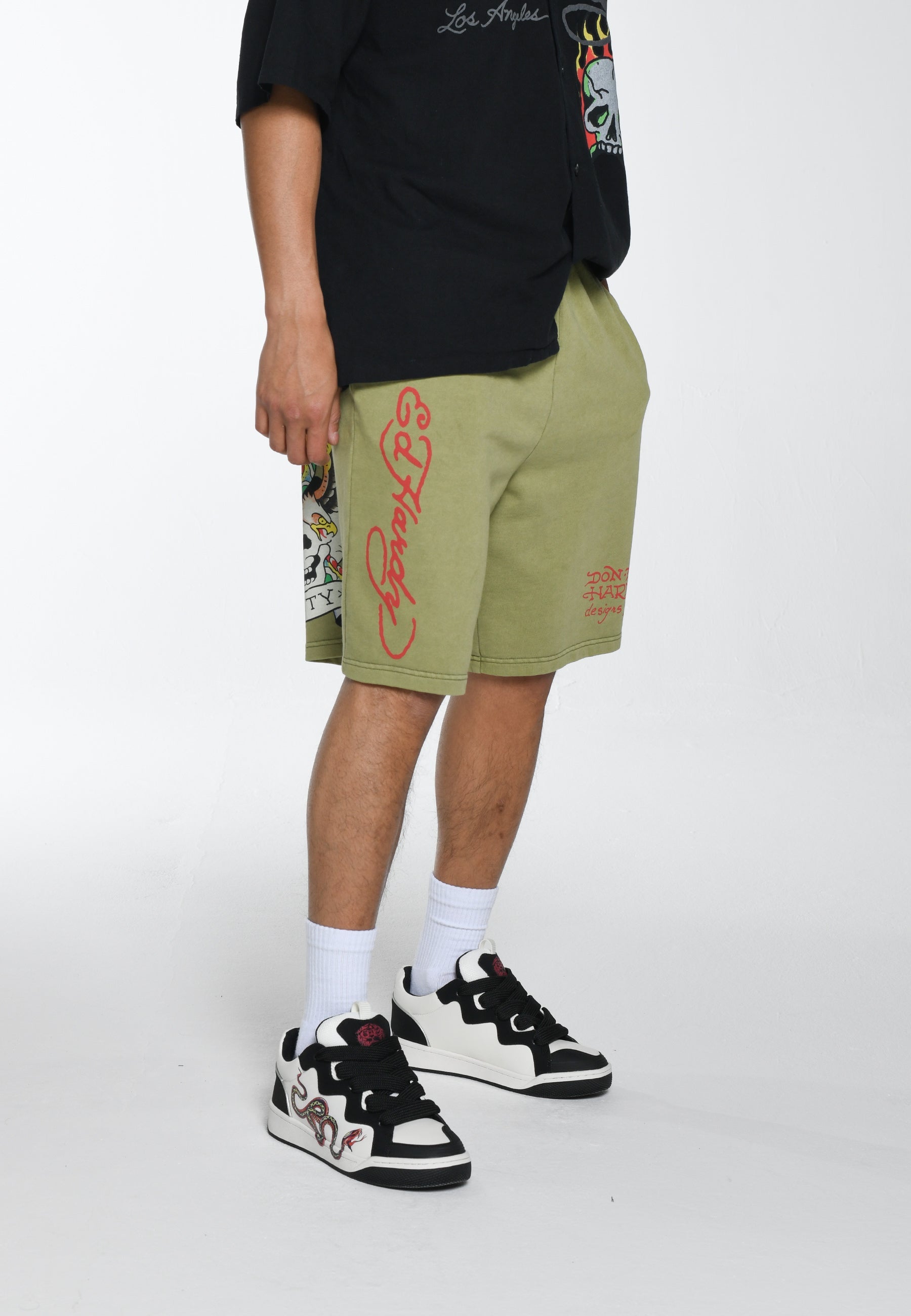 Herre Nyc Skull Sweat Shorts - Washed Green